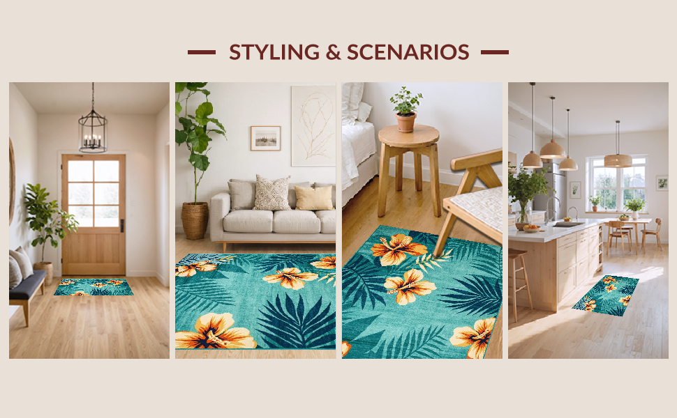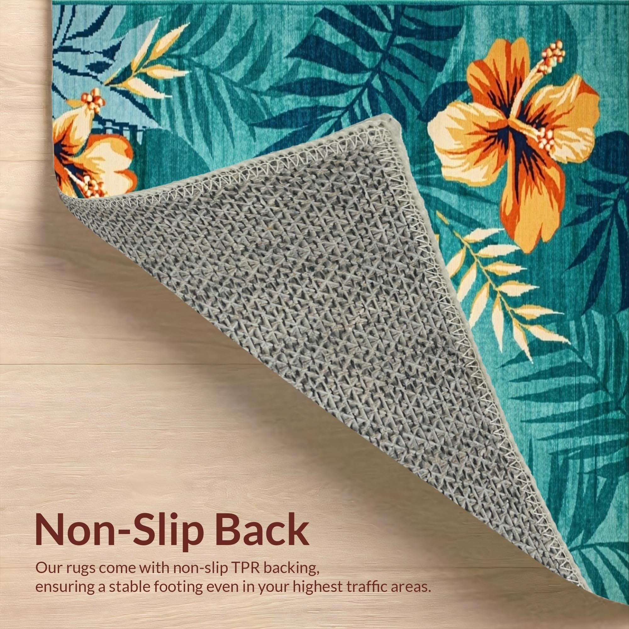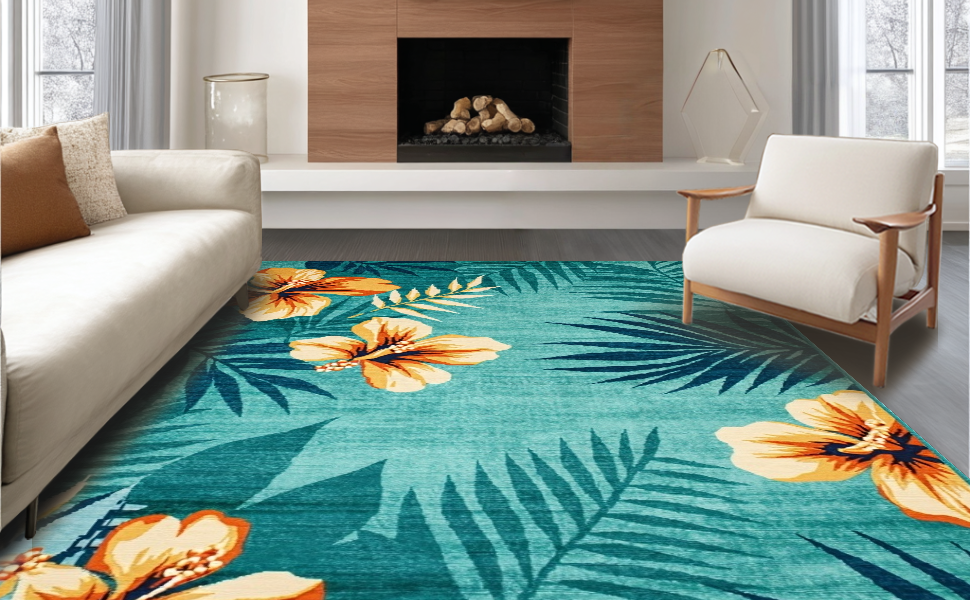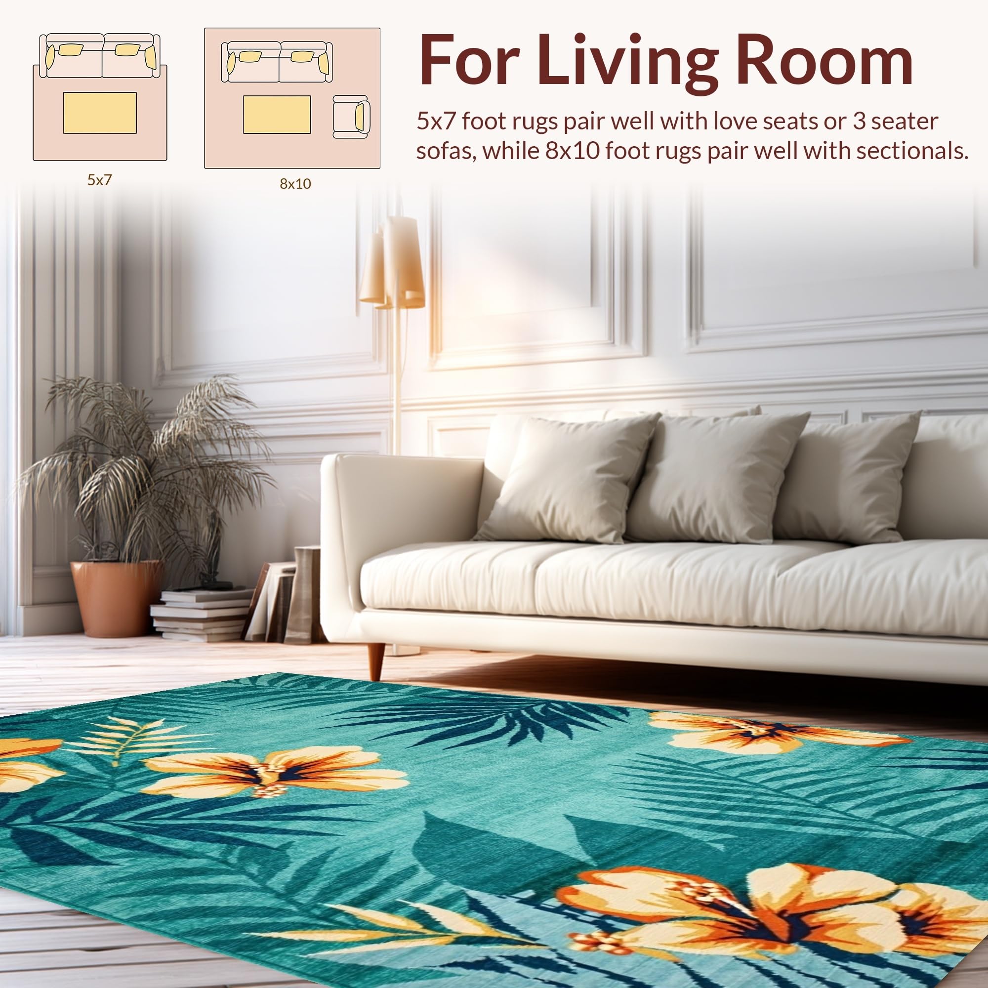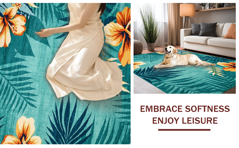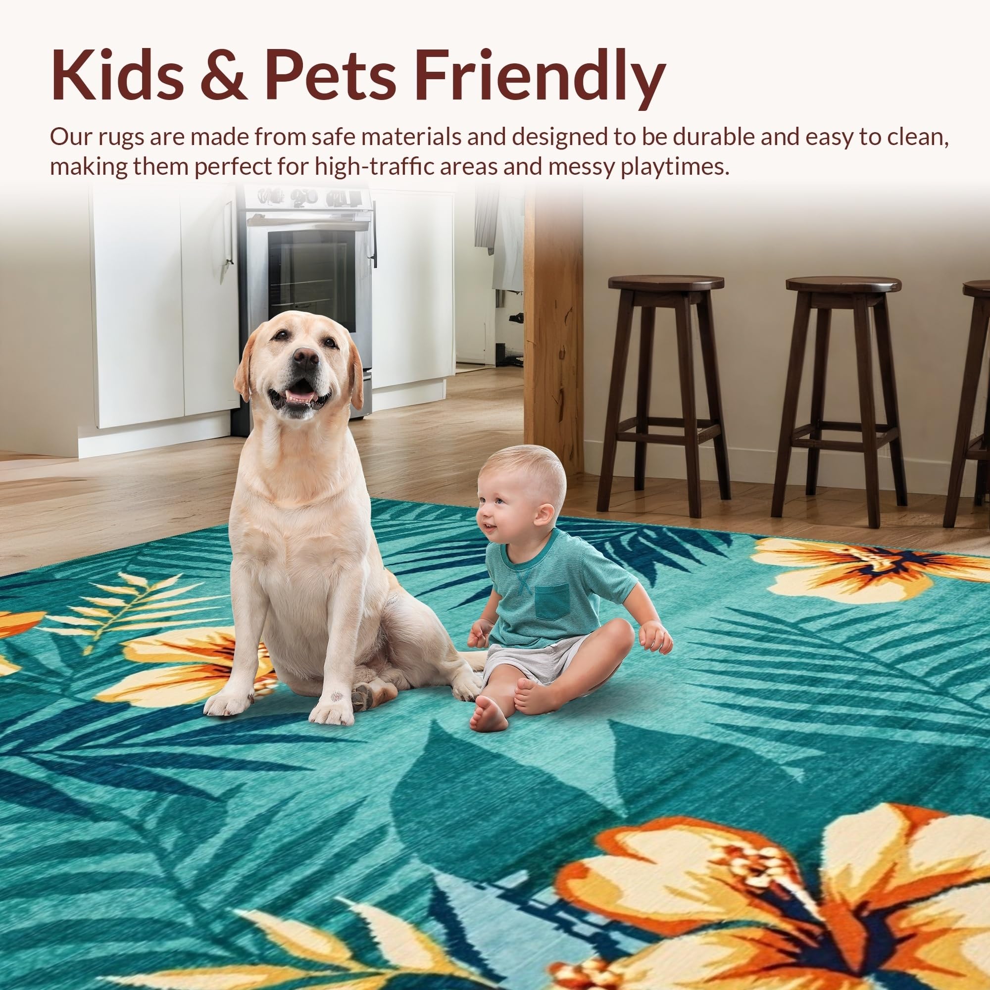 Ultra Soft Area Rug, Non Slip, Stain Resistant, Washable Area Rugs for Living Room, Bedroom, Chic Abstract Floral Aesthetic(Green) Overview: