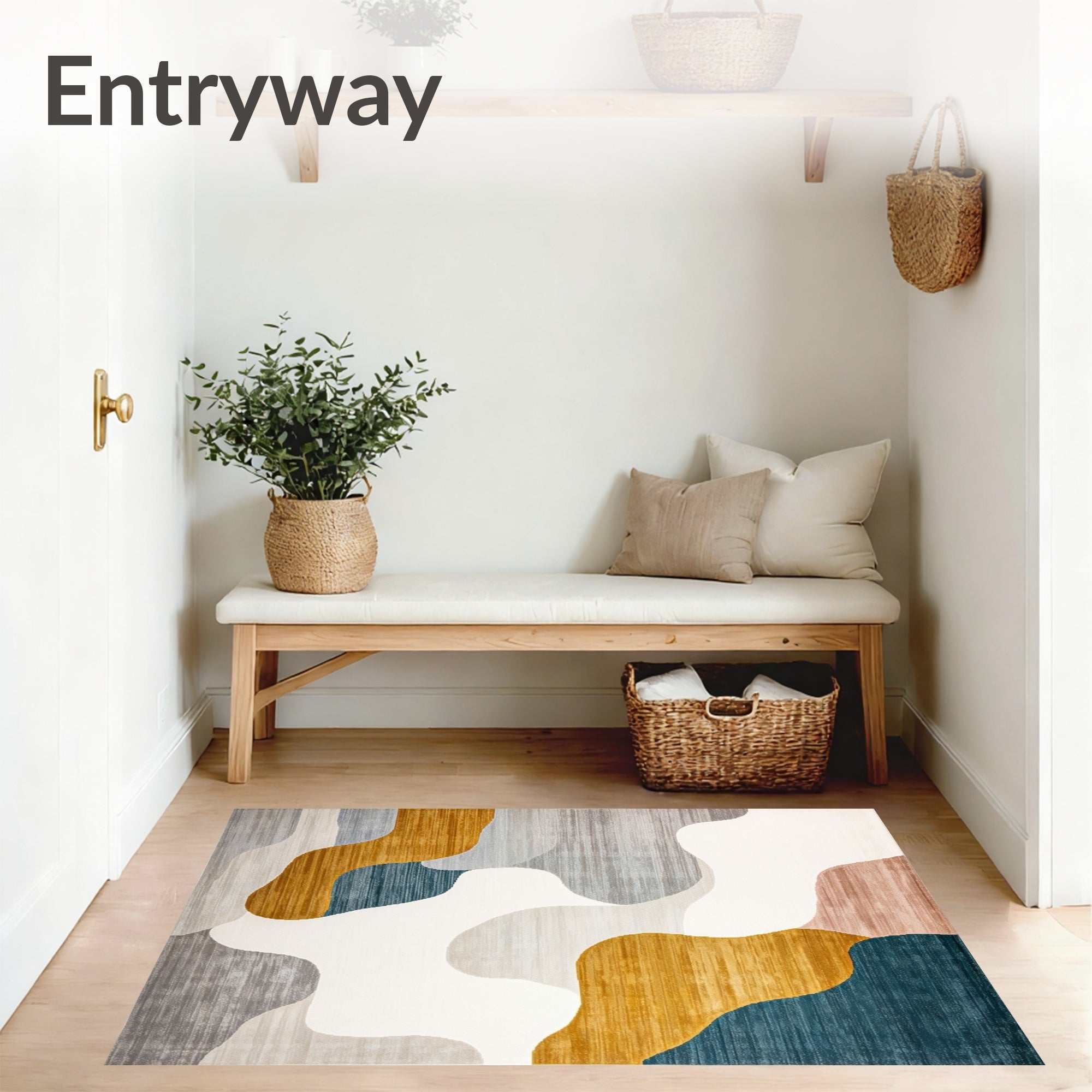 Ultra Soft Area Rug, Non Slip, Stain Resistant, Washable Area Rugs for Living Room, Bedroom, Chic Abstract Flow Area Modern Beige Grey Wavy Lines(Gray) Overview: