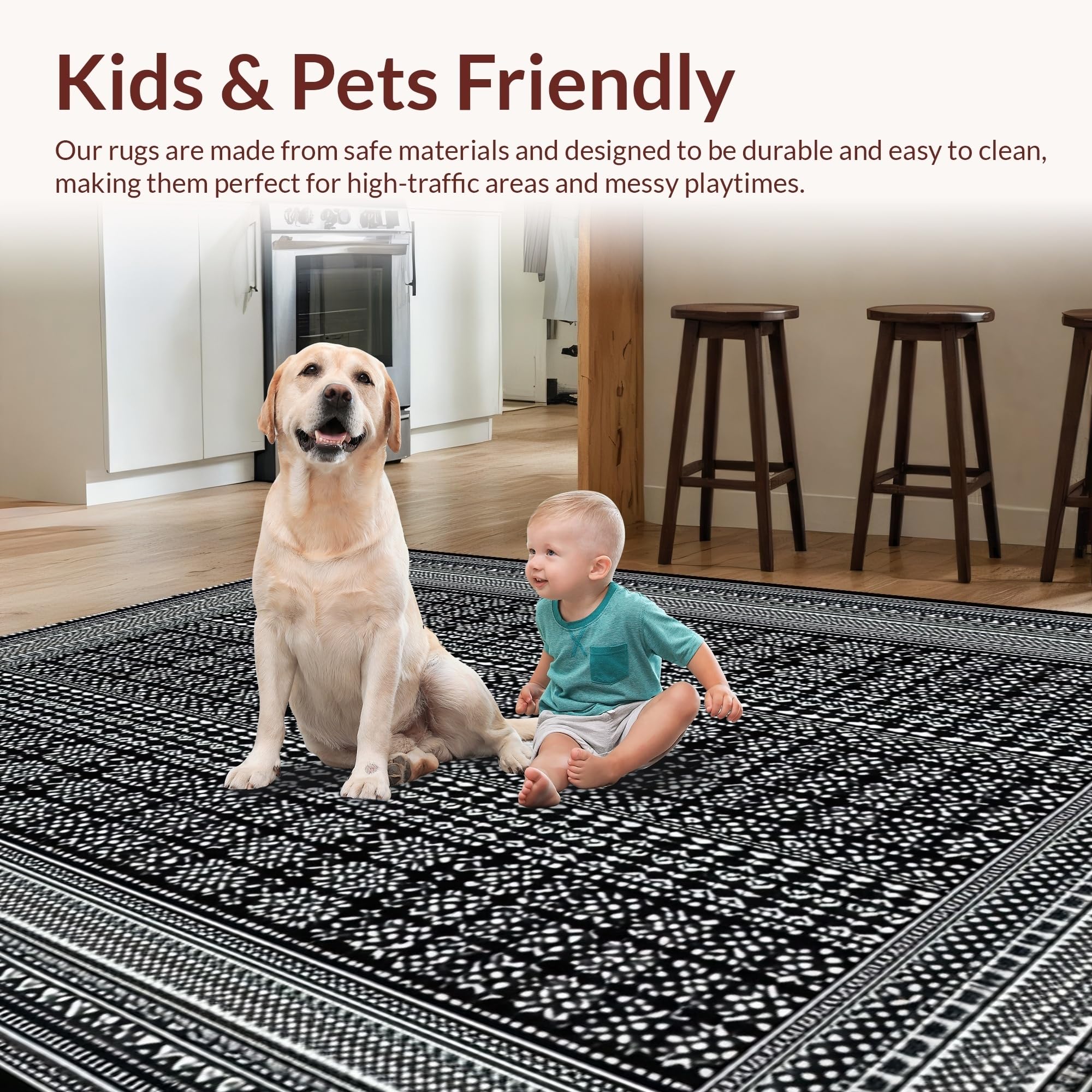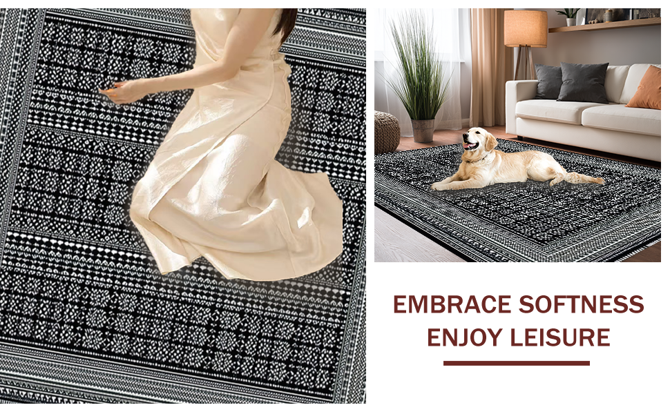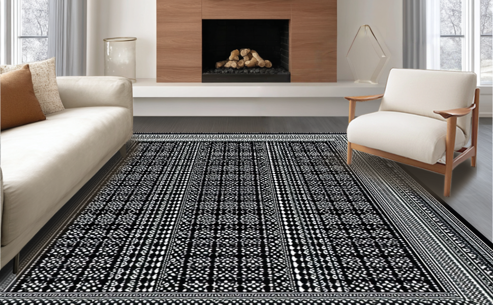 Ultra Soft Area Rug, Non Slip, Stain Resistant, Washable Area Rugs for Living Room, Bedroom, Chic Abstract Geometric Elegance(Black) Overview: