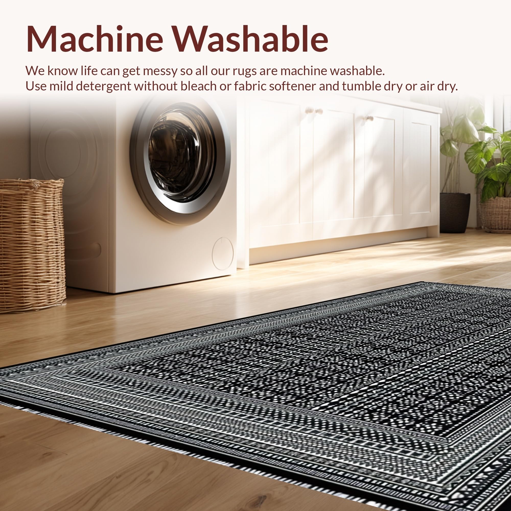 - Machine Washable: Our rugs can be easily thrown in the wash machine.