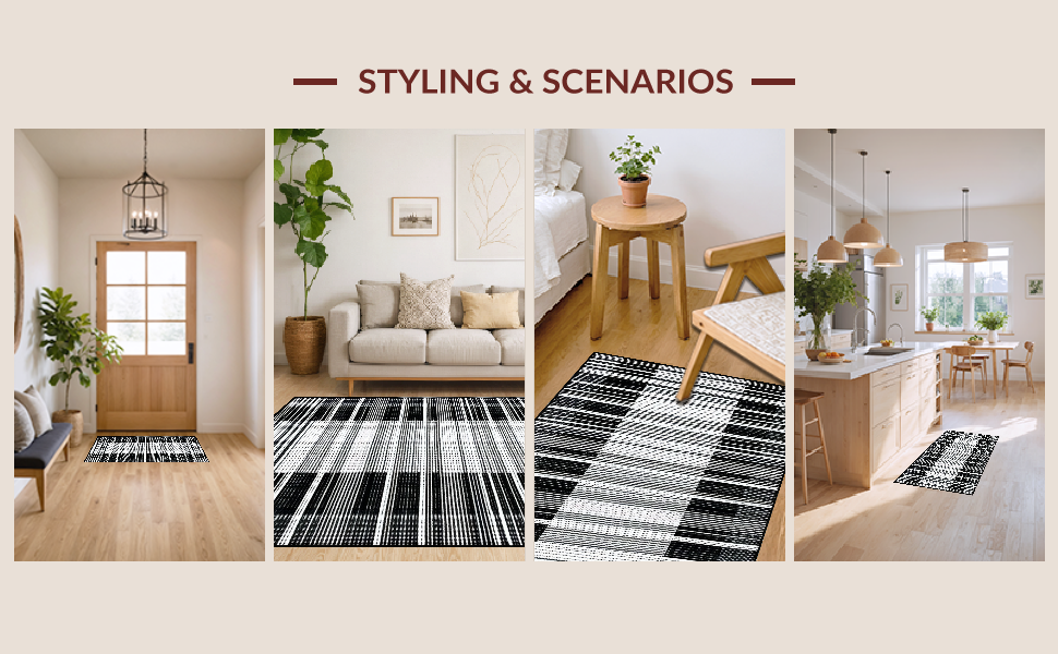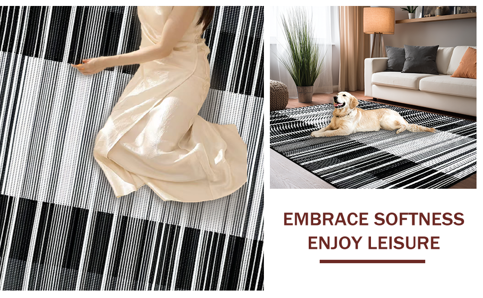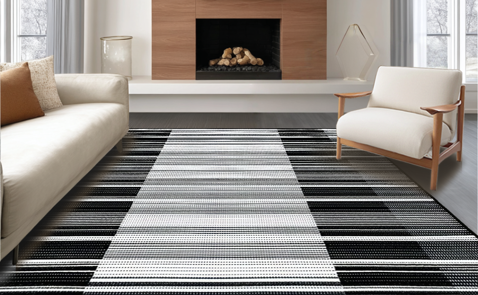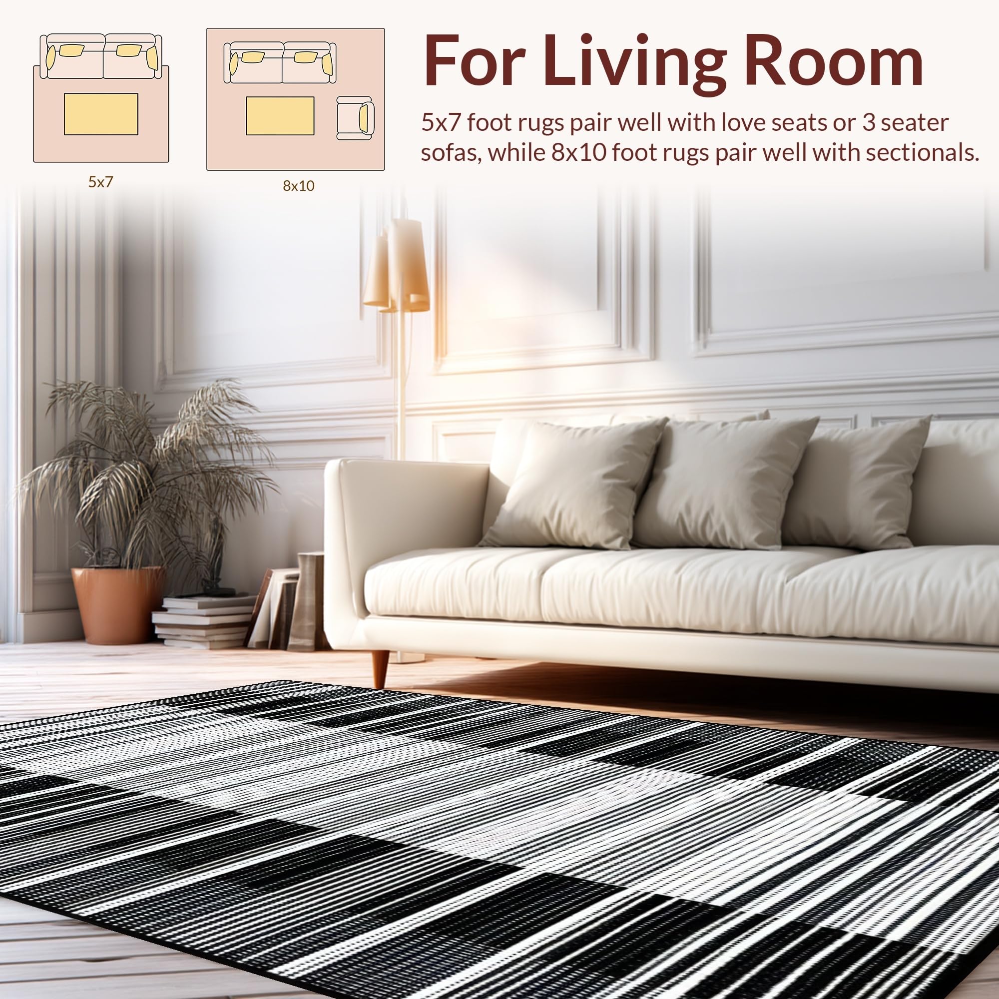 Ultra Soft Area Rug, Non Slip, Stain Resistant, Washable Area Rugs for Living Room, Bedroom, Chic Abstract Graphic Design(Black) Overview: