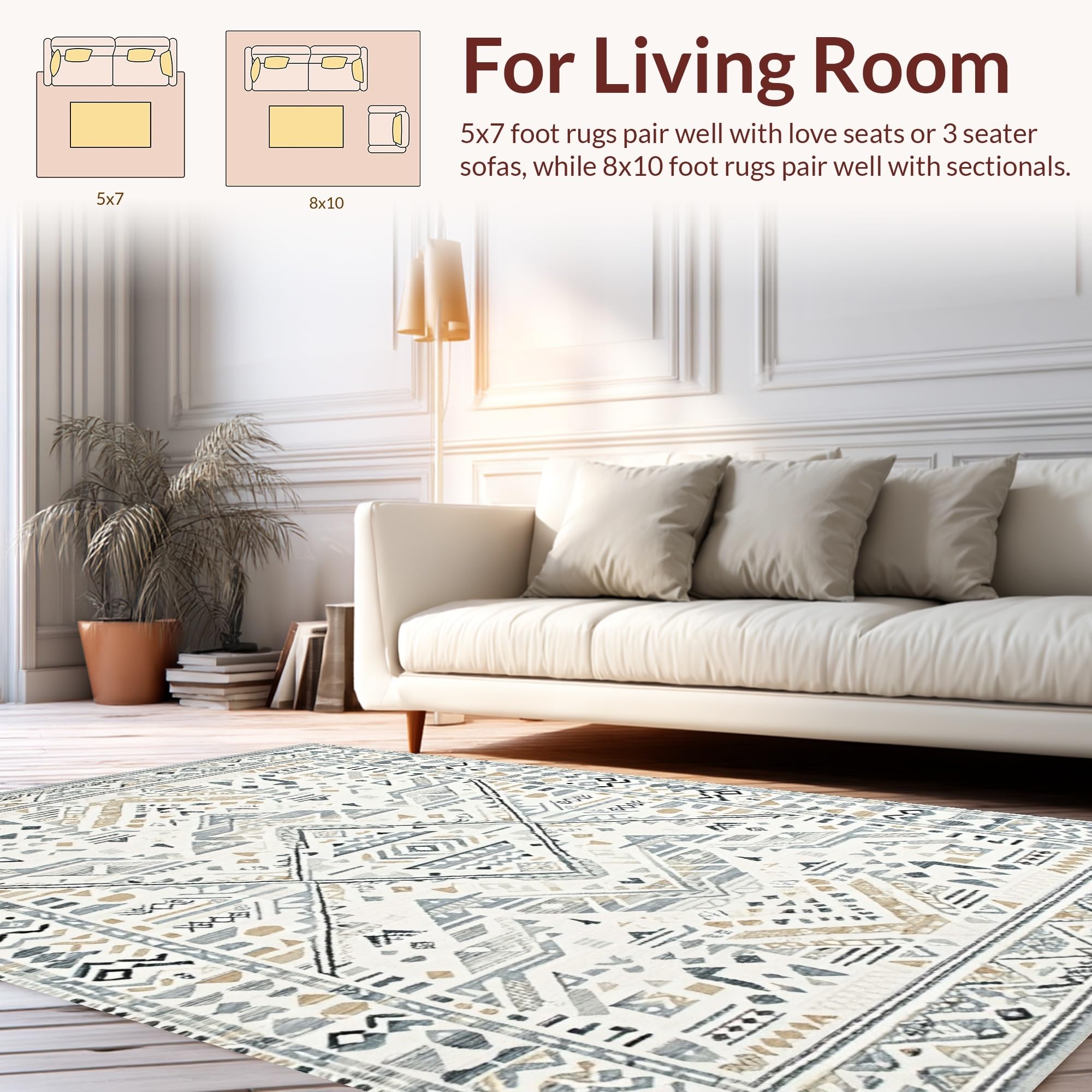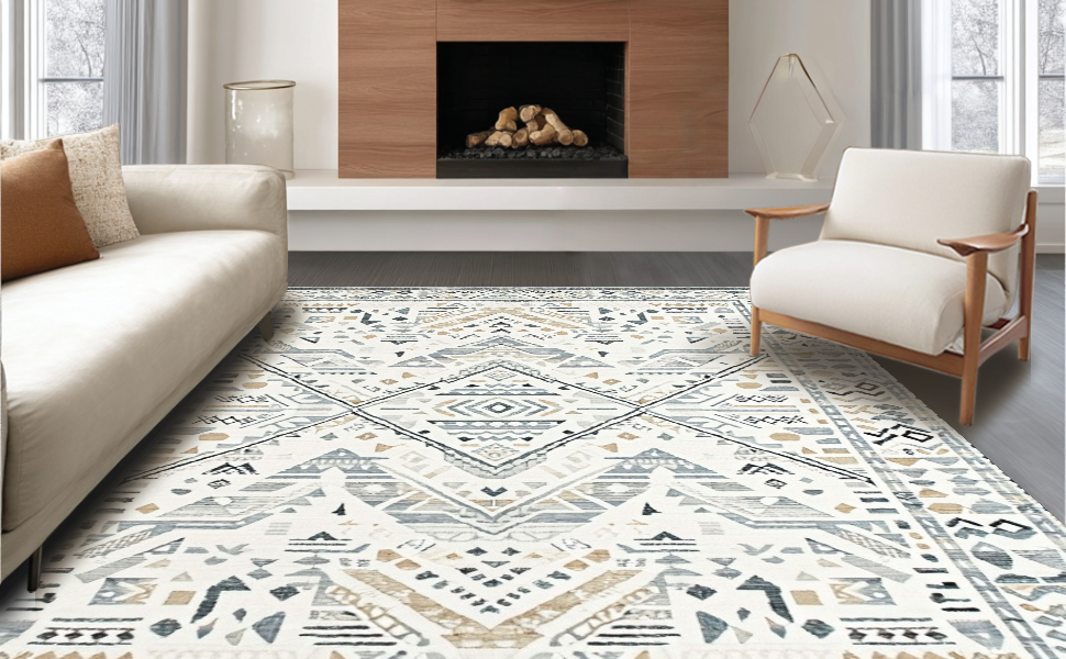 Ultra Soft Area Rug, Non Slip, Stain Resistant, Washable Area Rugs for Living Room, Bedroom, Chic Abstract Gray Tones(Beige) Overview: