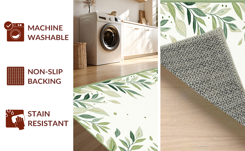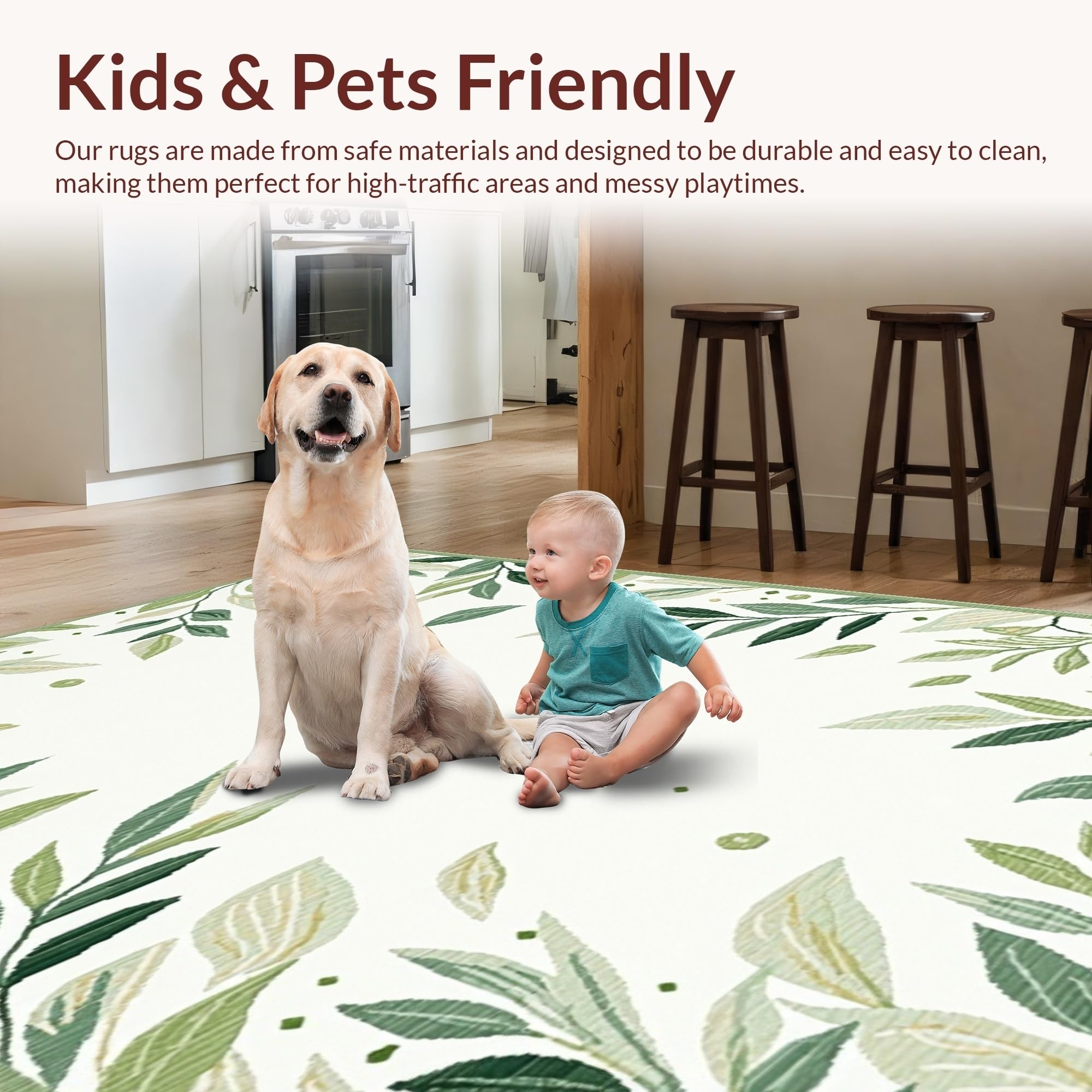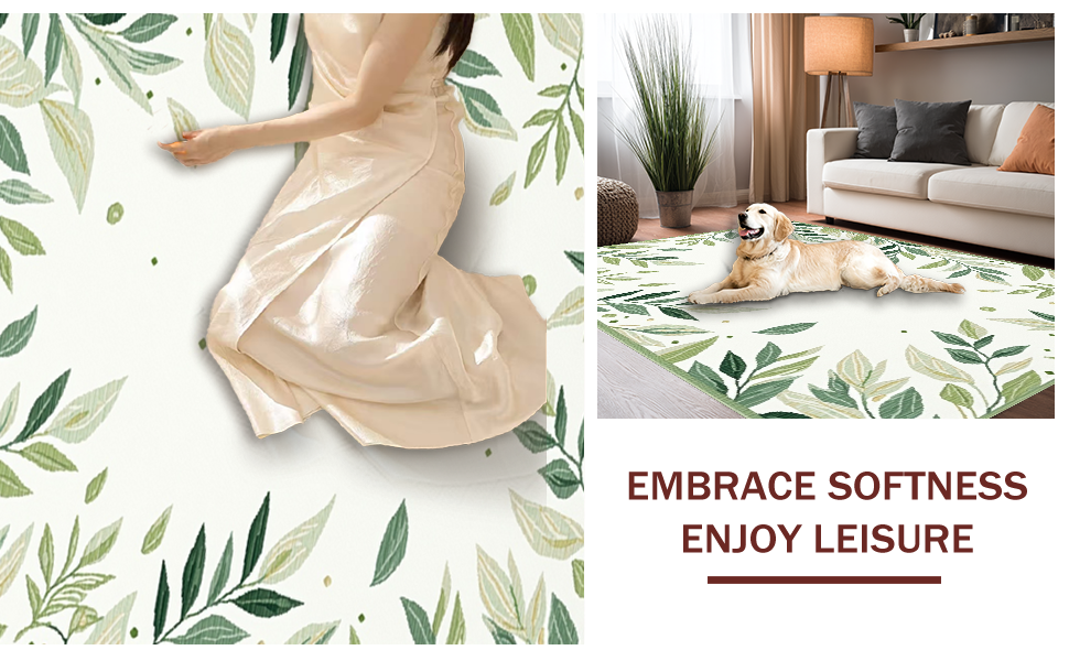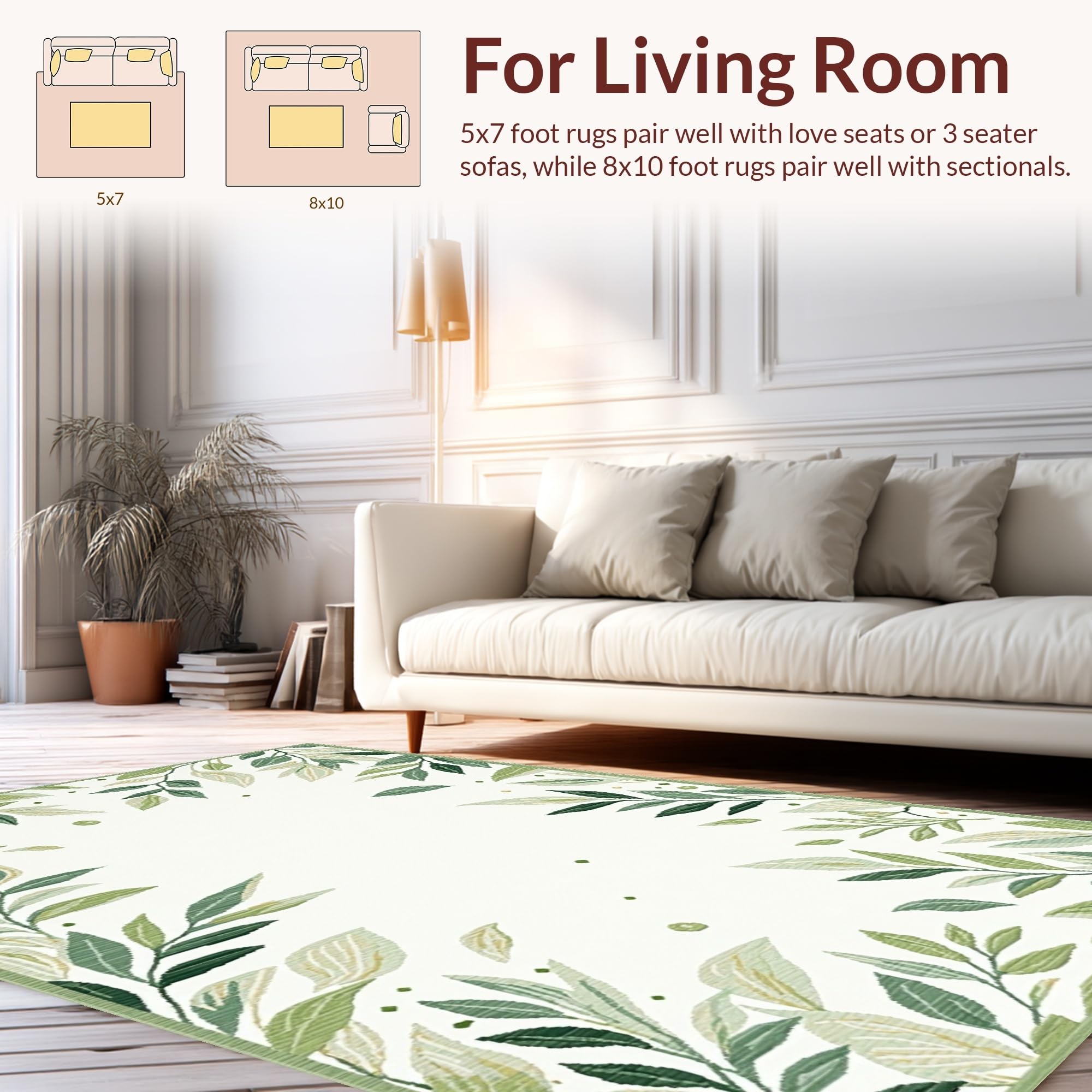 Ultra Soft Area Rug, Non Slip, Stain Resistant, Washable Area Rugs for Living Room, Bedroom, Chic Abstract Greenery Pattern(Ivory) Overview:
