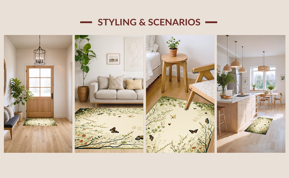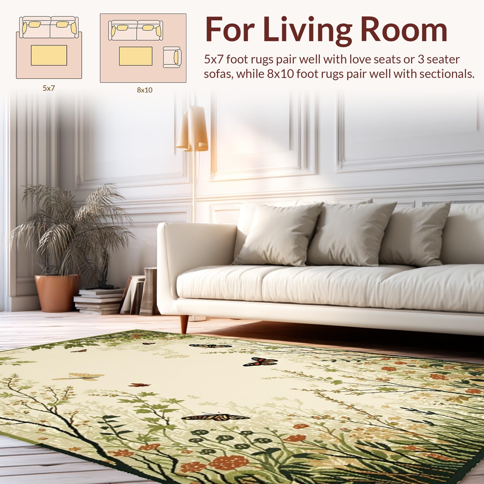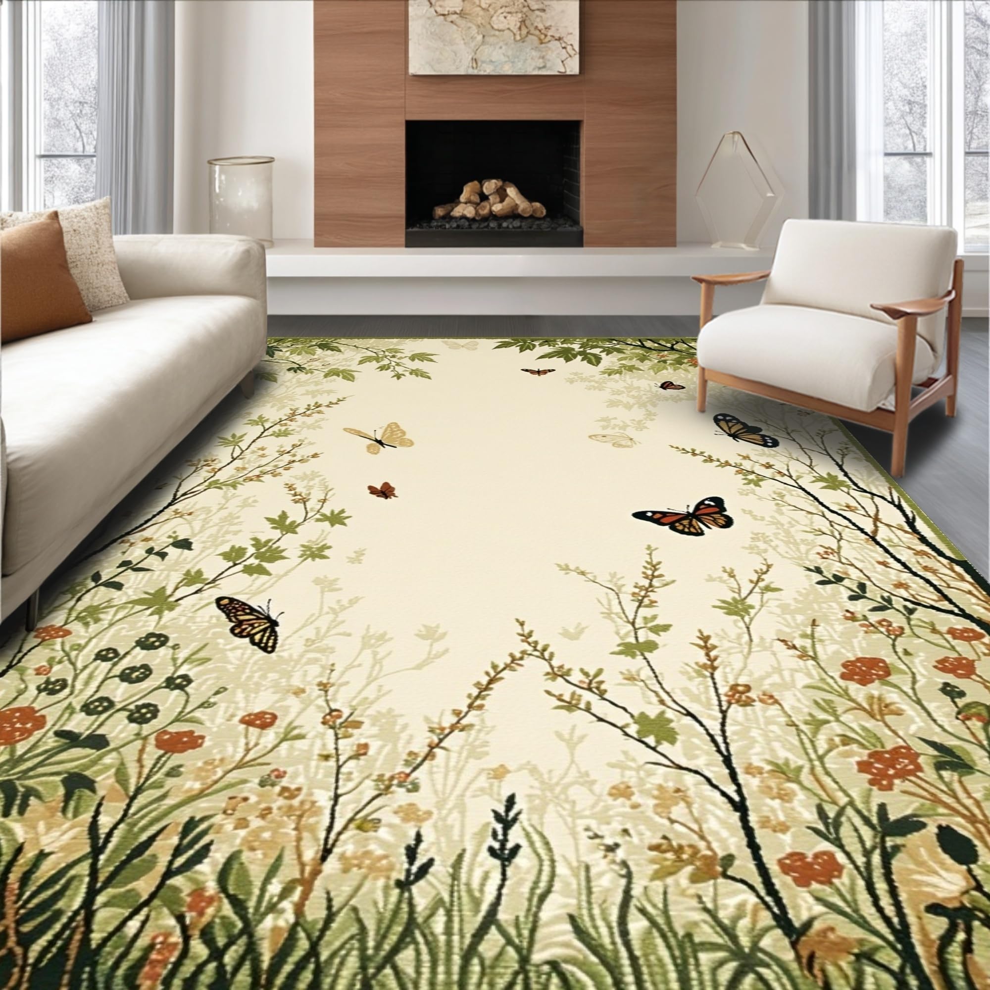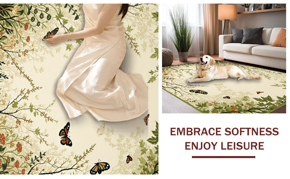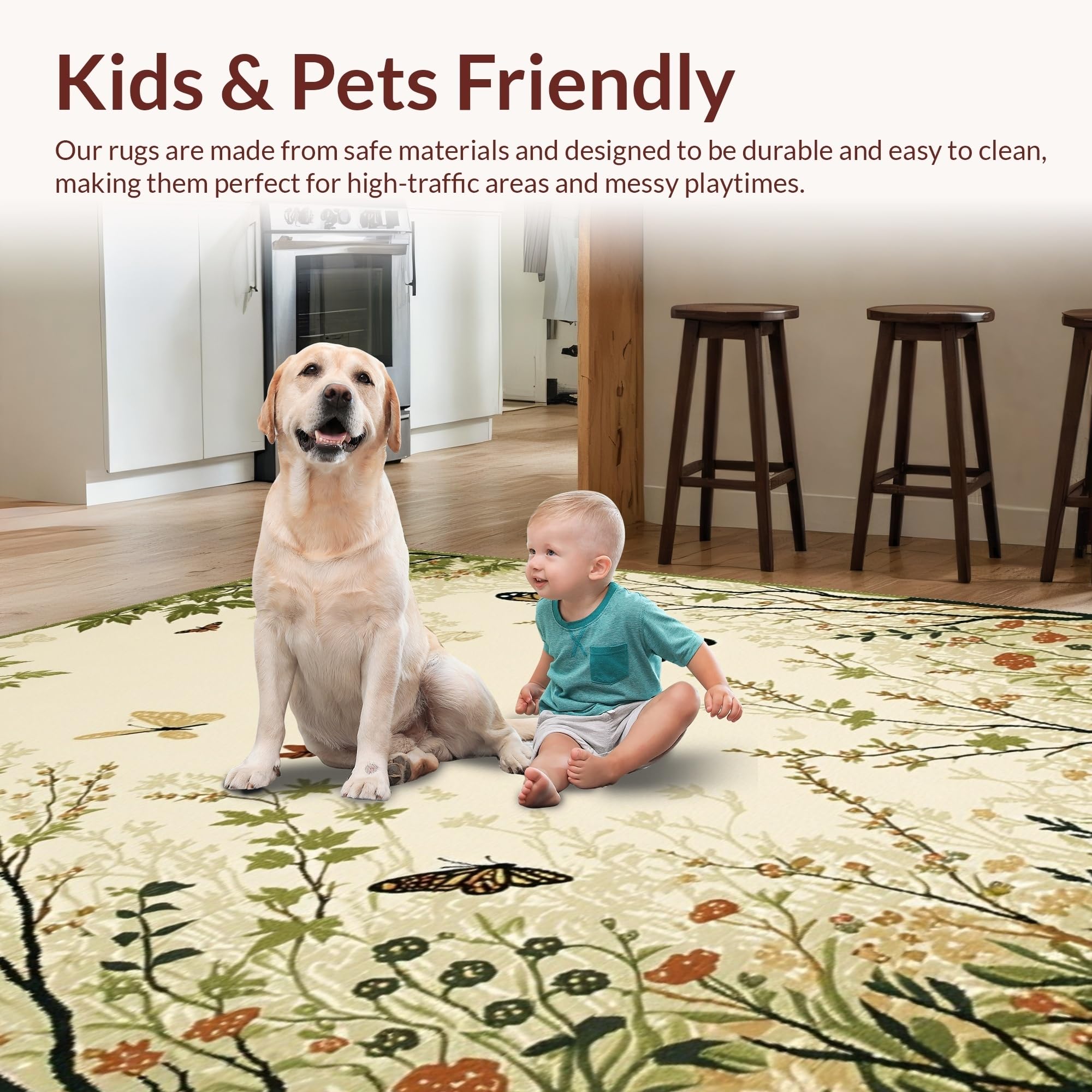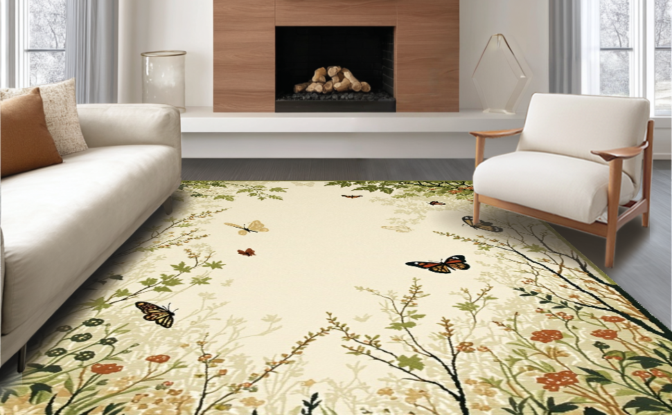 Ultra Soft Area Rug, Non Slip, Stain Resistant, Washable Area Rugs for Living Room, Bedroom, Chic Abstract Insect Imagery(Beige) Overview: