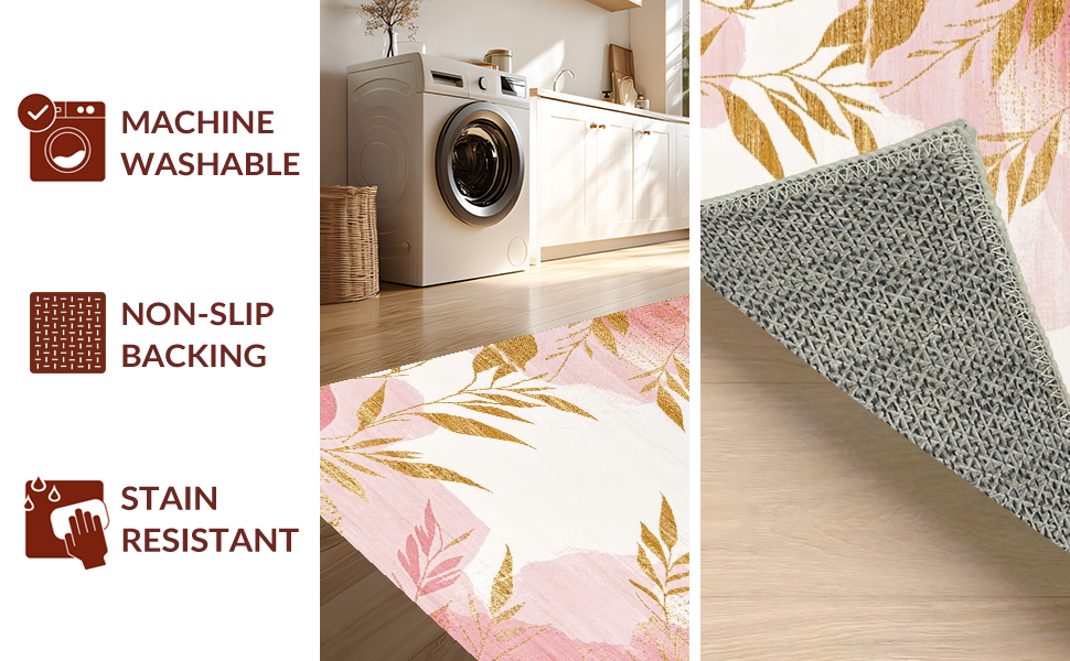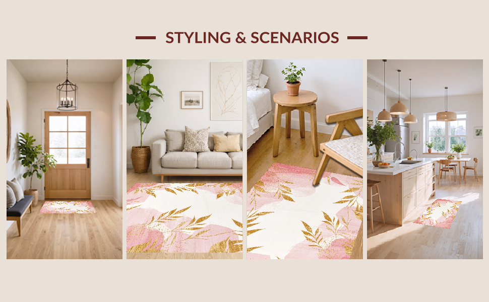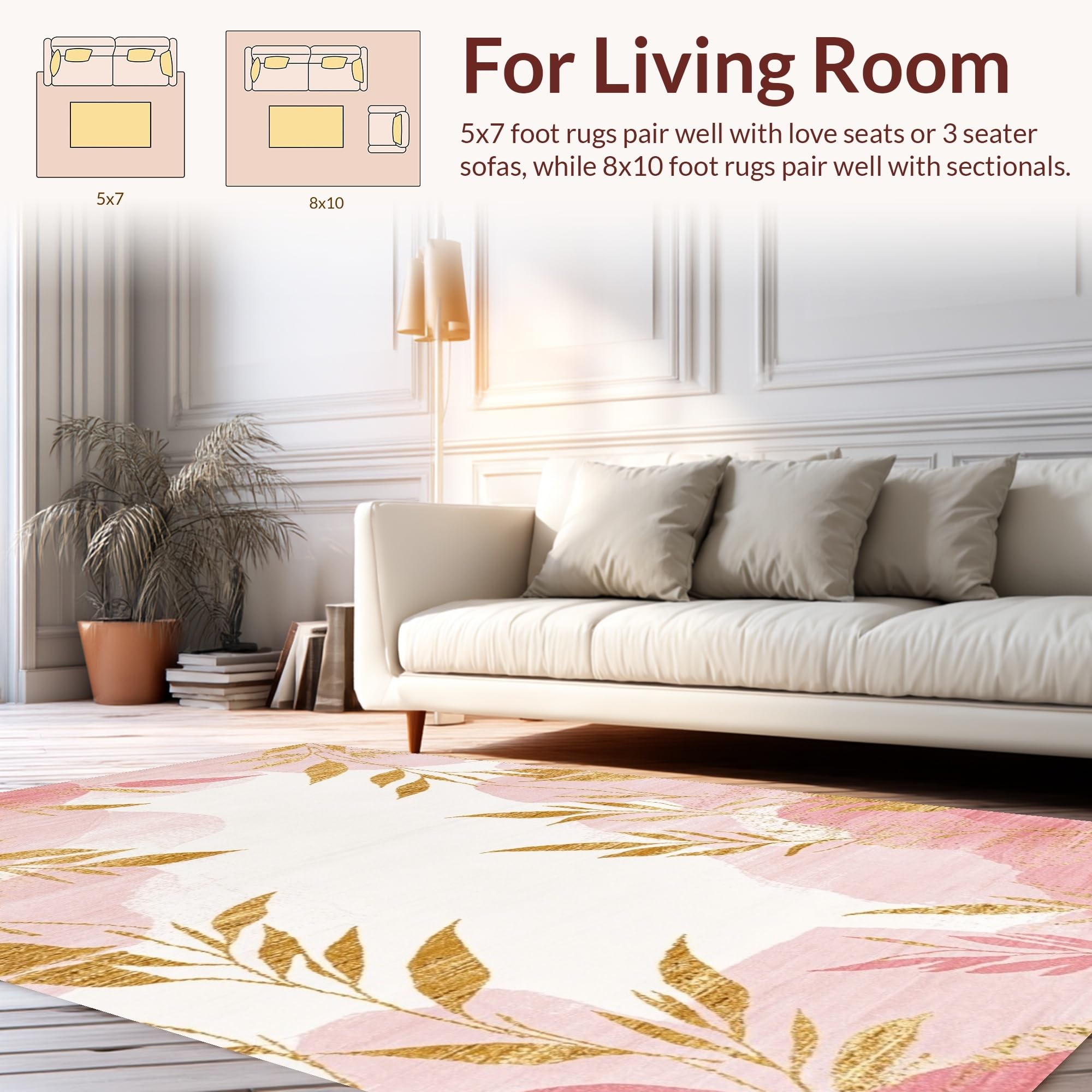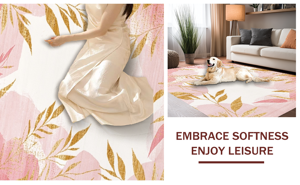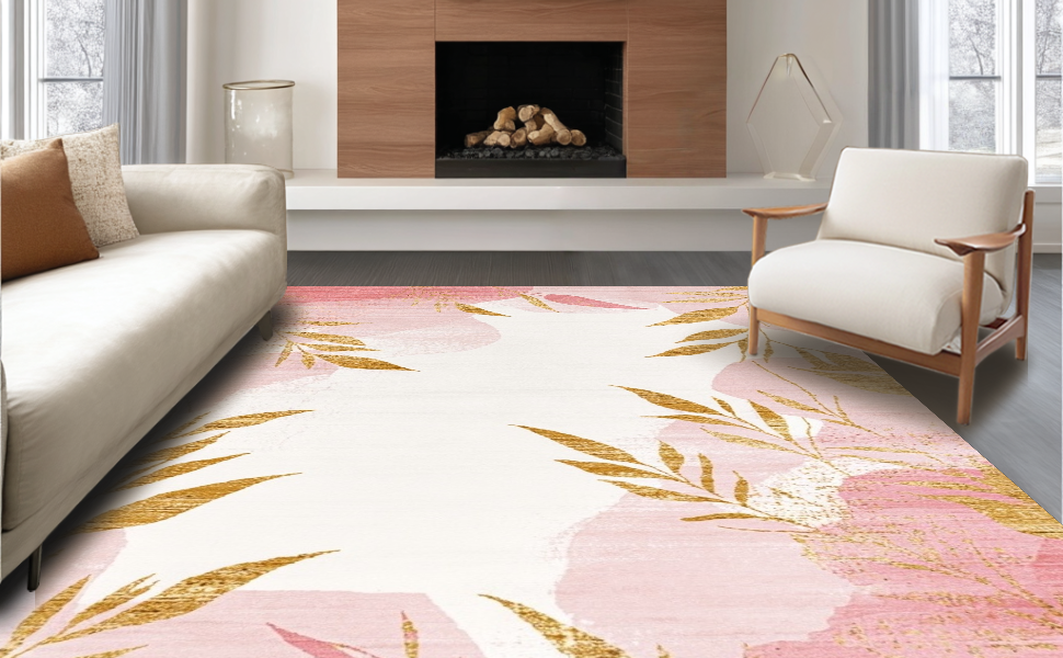 Ultra Soft Area Rug, Non Slip, Stain Resistant, Washable Area Rugs for Living Room, Bedroom, Chic Abstract Leaf Motif(Pink) Overview: