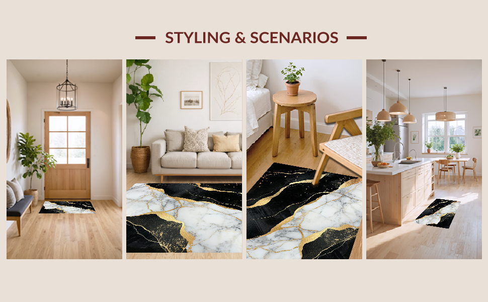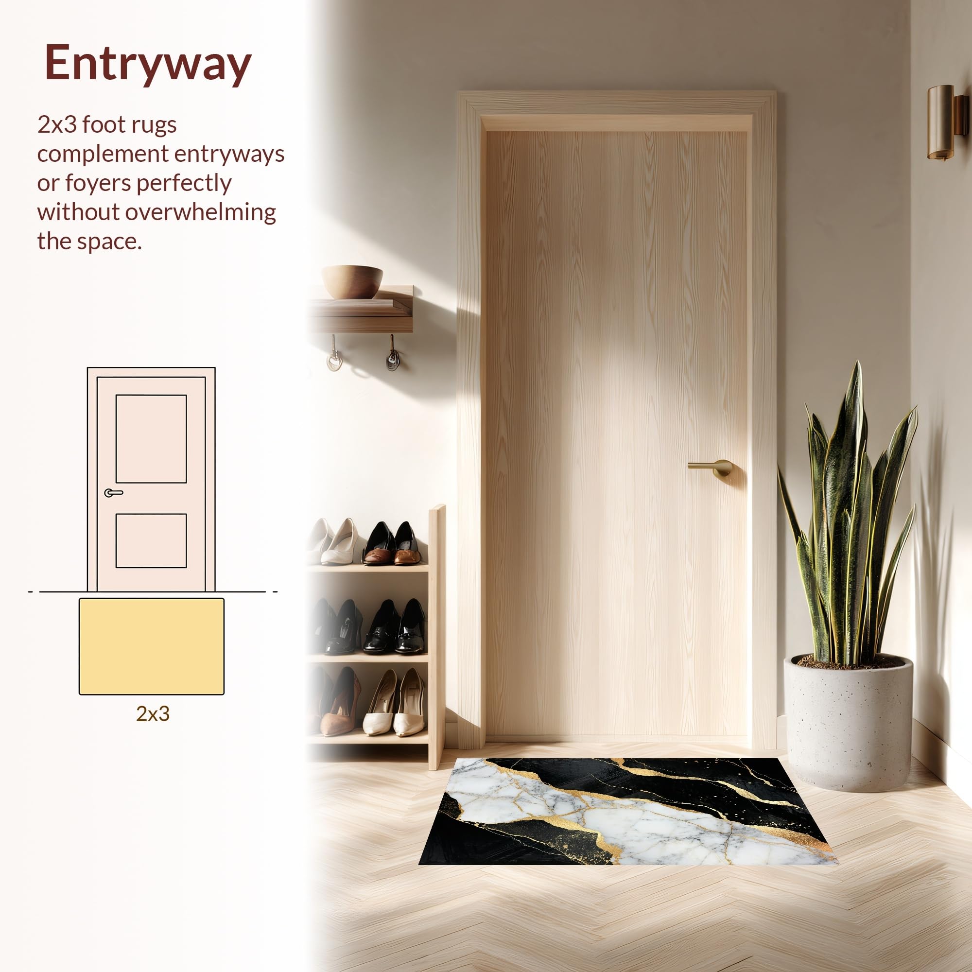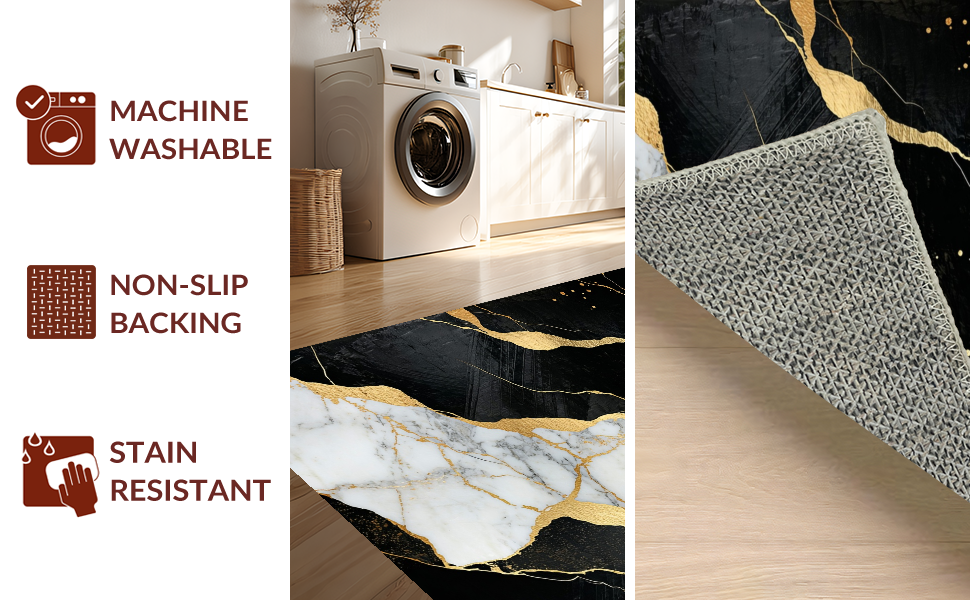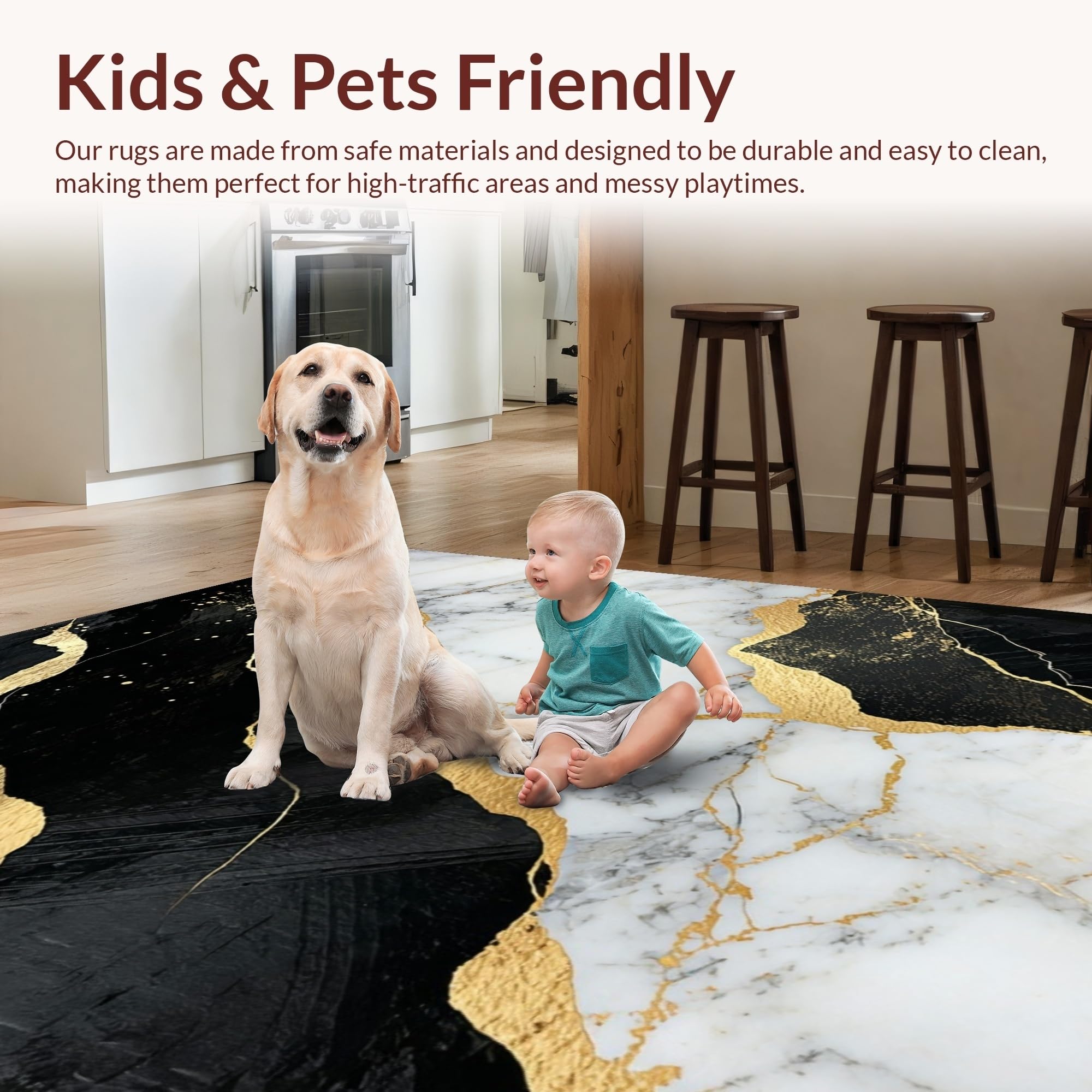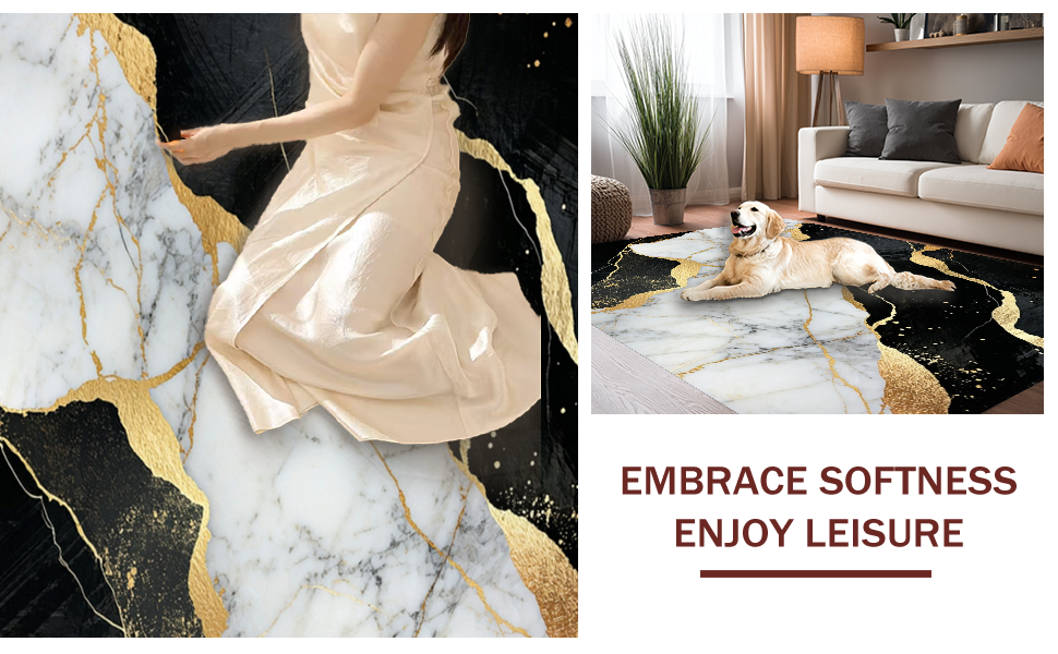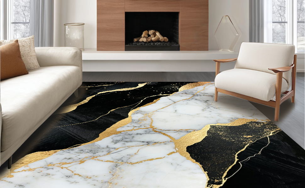 Ultra Soft Area Rug, Non Slip, Stain Resistant, Washable Area Rugs for Living Room, Bedroom, Chic Abstract Marble Aesthetic(Black) Overview: