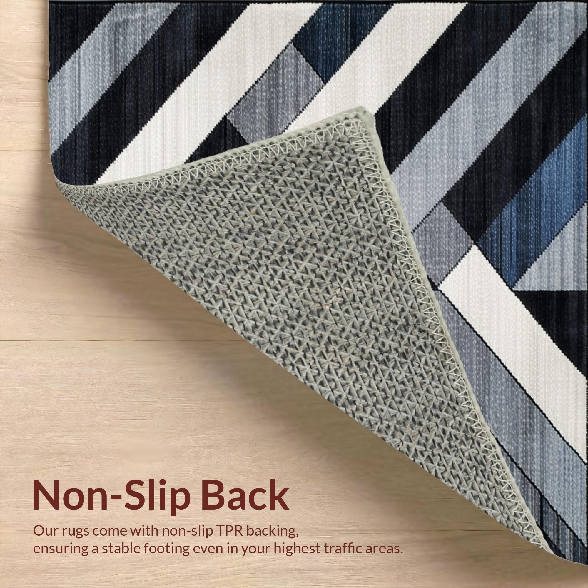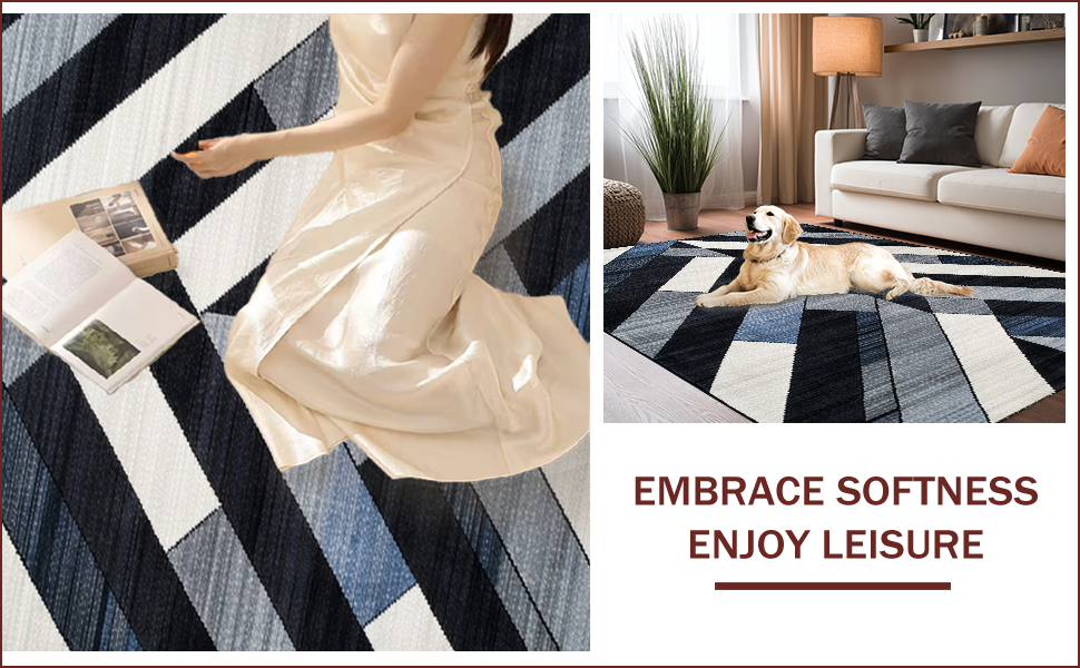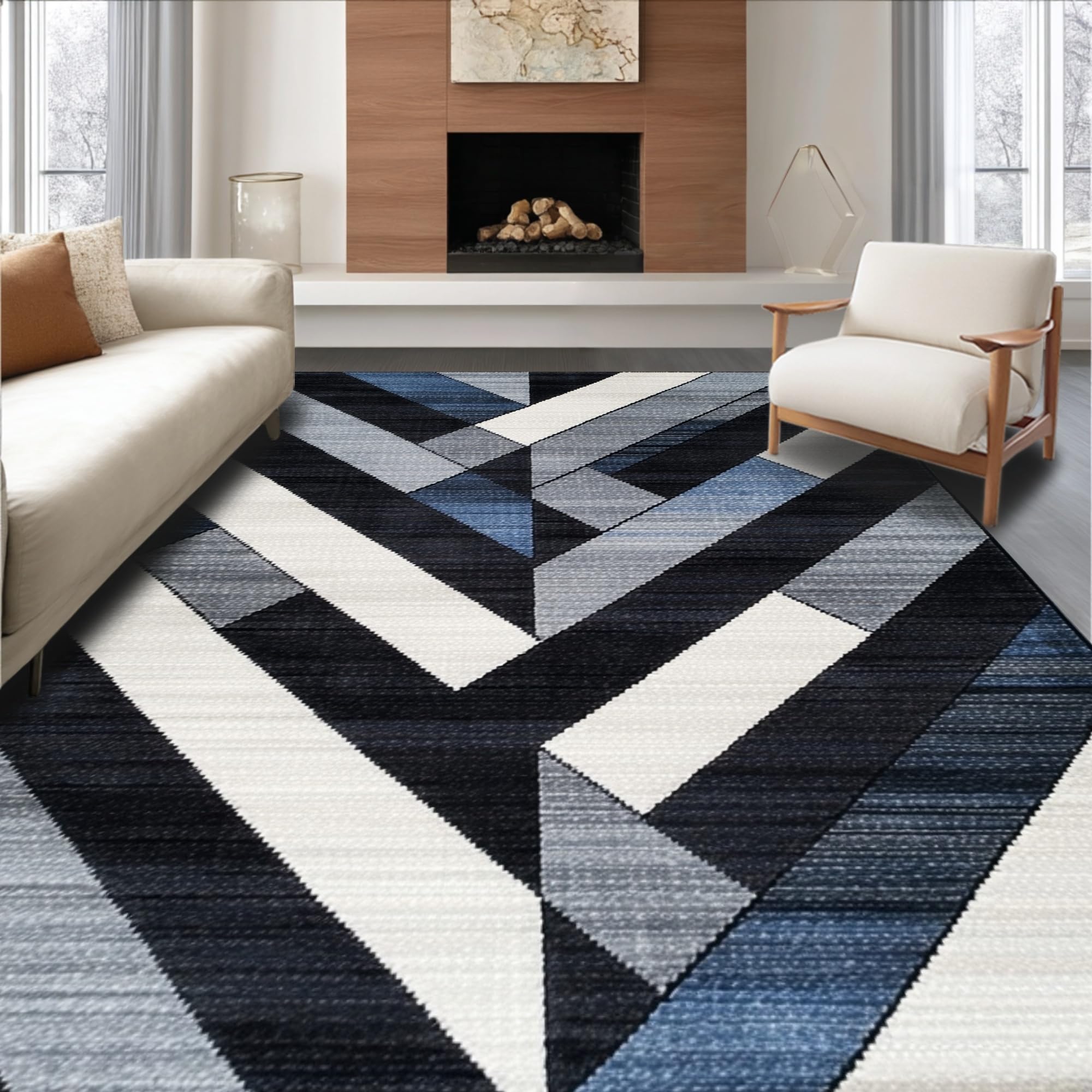 Ultra Soft Area Rug, Non Slip, Stain Resistant, Washable Area Rugs for Living Room, Bedroom, Chic Abstract Monochrome Motif(Blue) Overview: