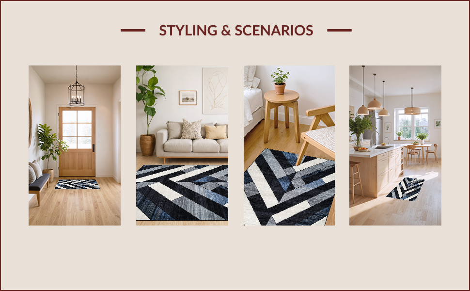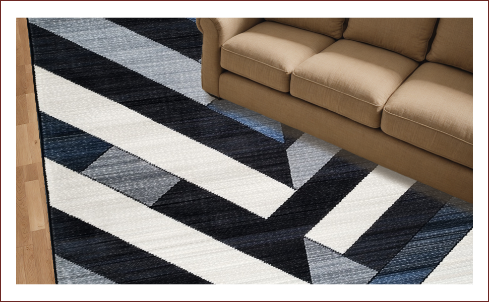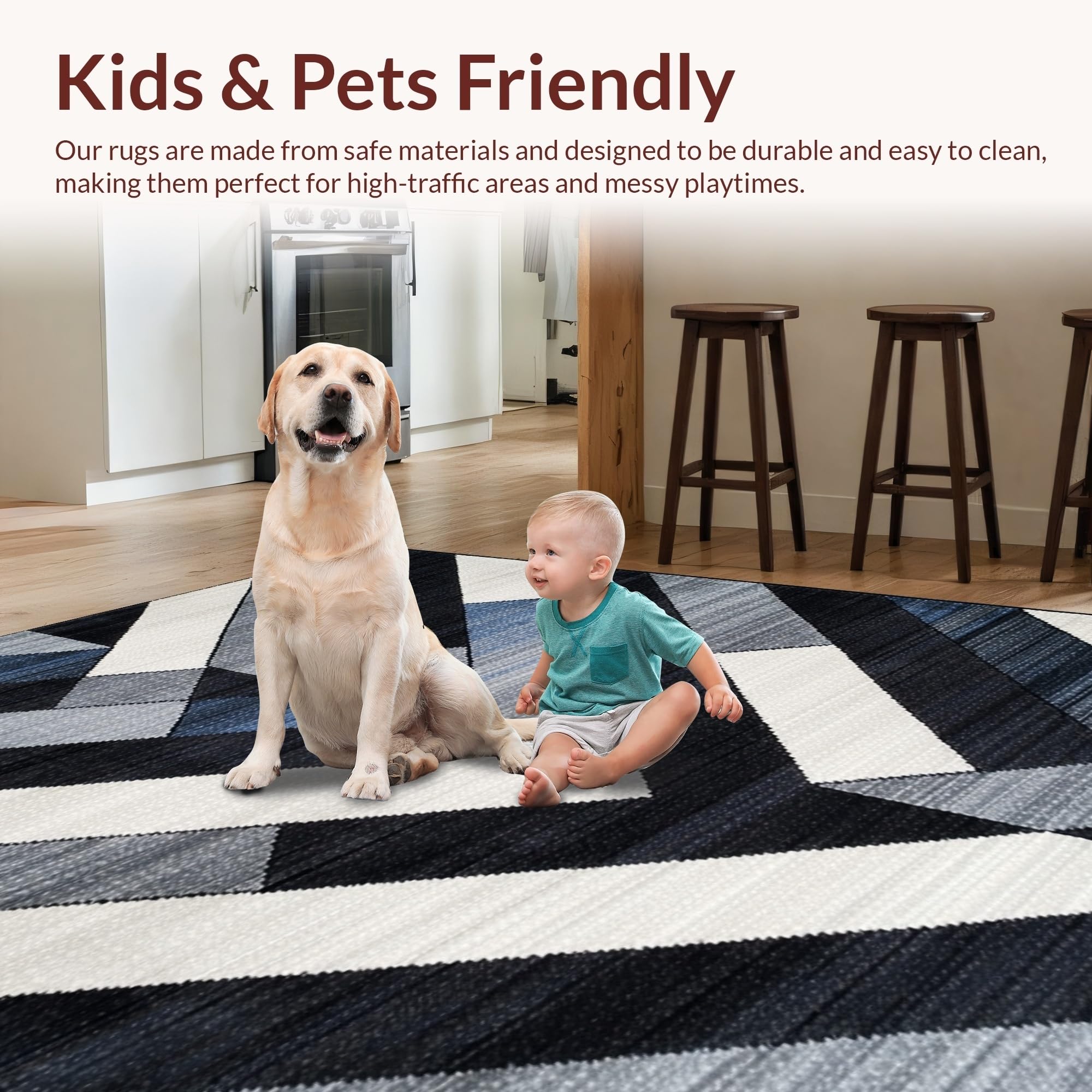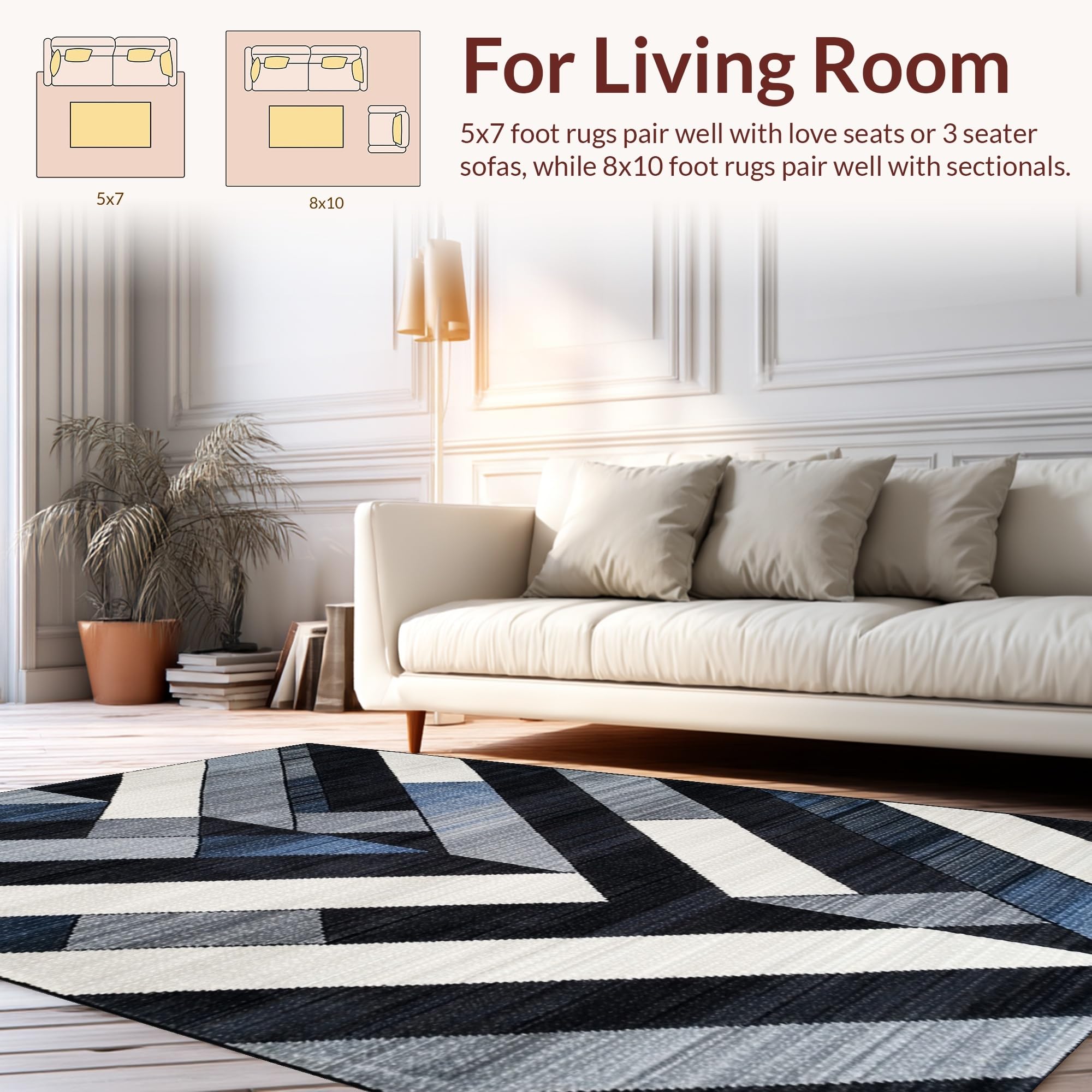 Ultra Soft Area Rug, Non Slip, Stain Resistant, Washable Area Rugs for Living Room, Bedroom, Chic Abstract Monochrome Motif(Blue) Overview: