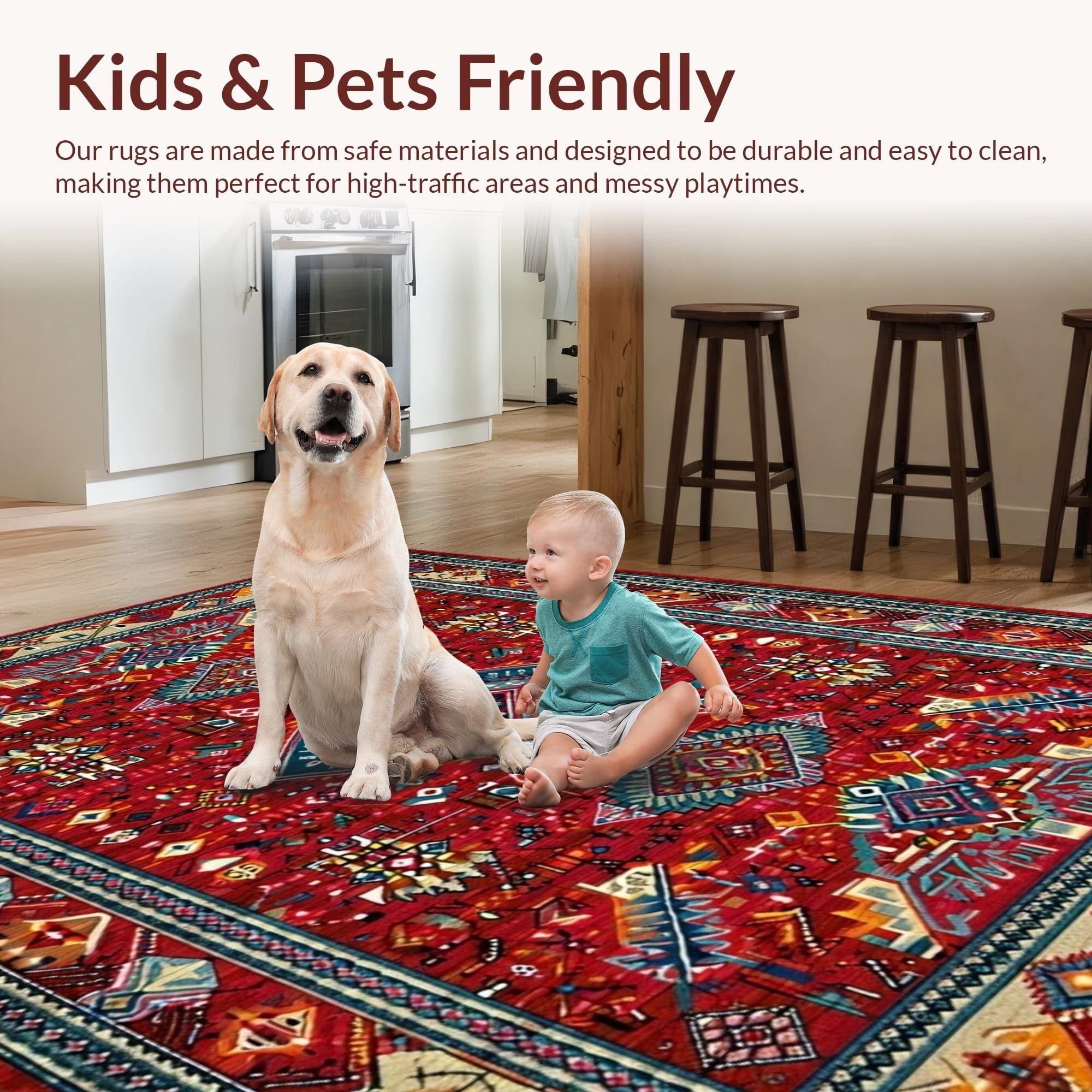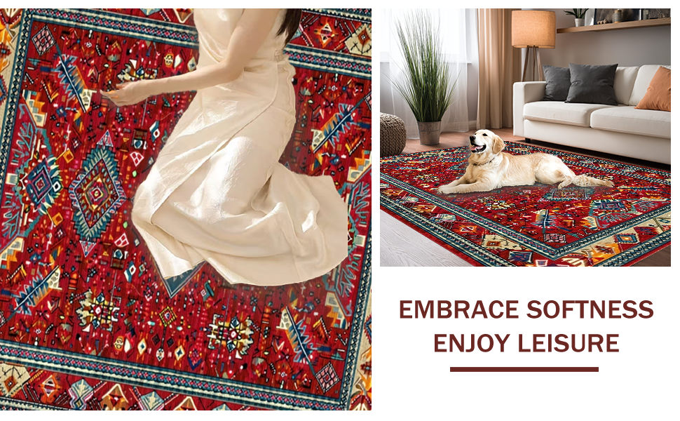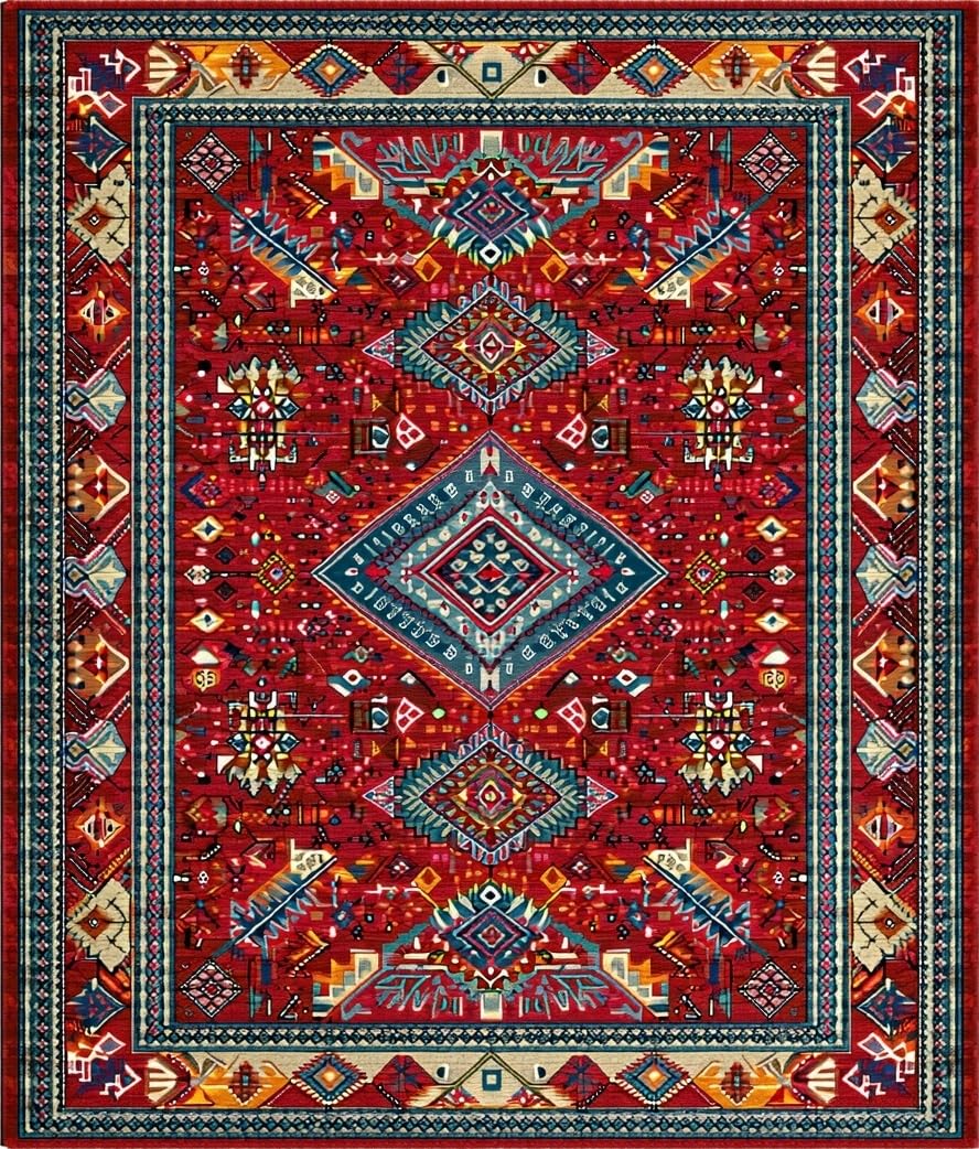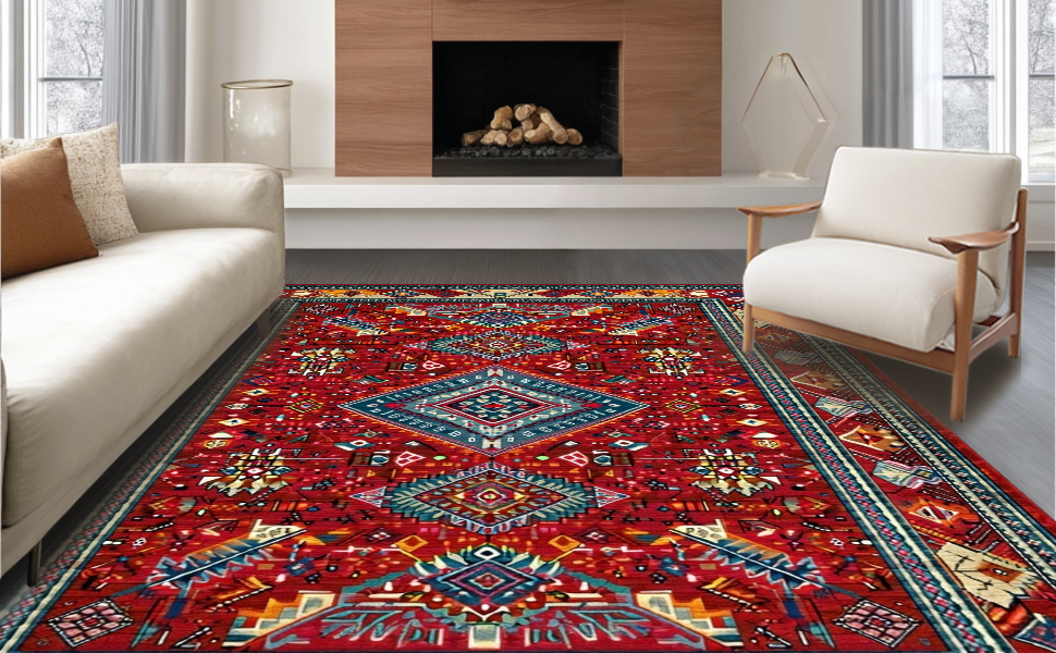 Ultra Soft Area Rug, Non Slip, Stain Resistant, Washable Area Rugs for Living Room, Bedroom, Chic Abstract Multi-Pattern Fusion(Red) Overview: