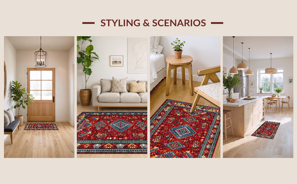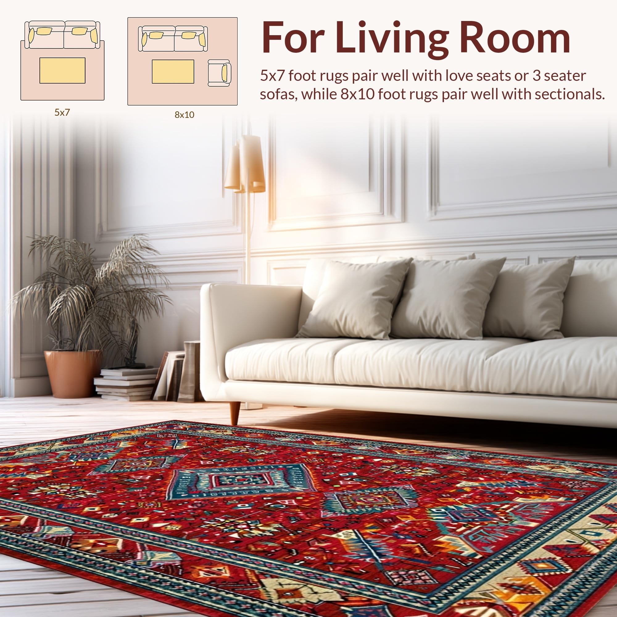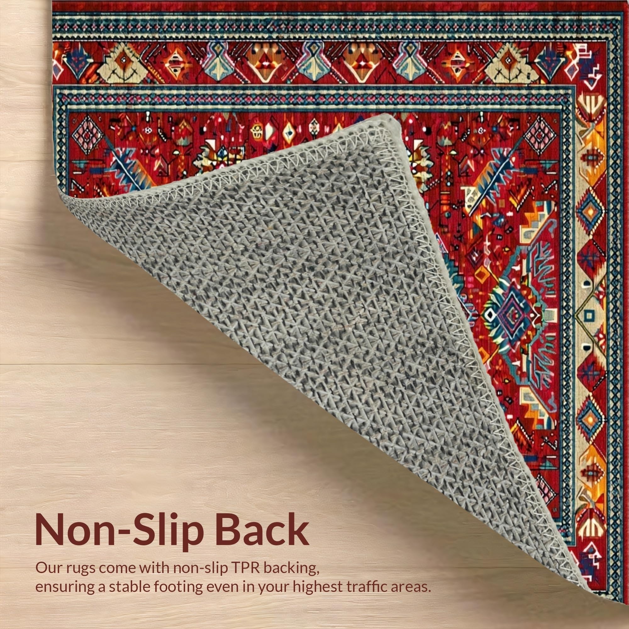Ultra Soft Area Rug, Non Slip, Stain Resistant, Washable Area Rugs for Living Room, Bedroom, Chic Abstract Multi-Pattern Fusion(Red) Overview: