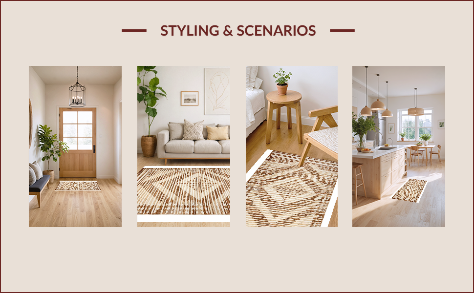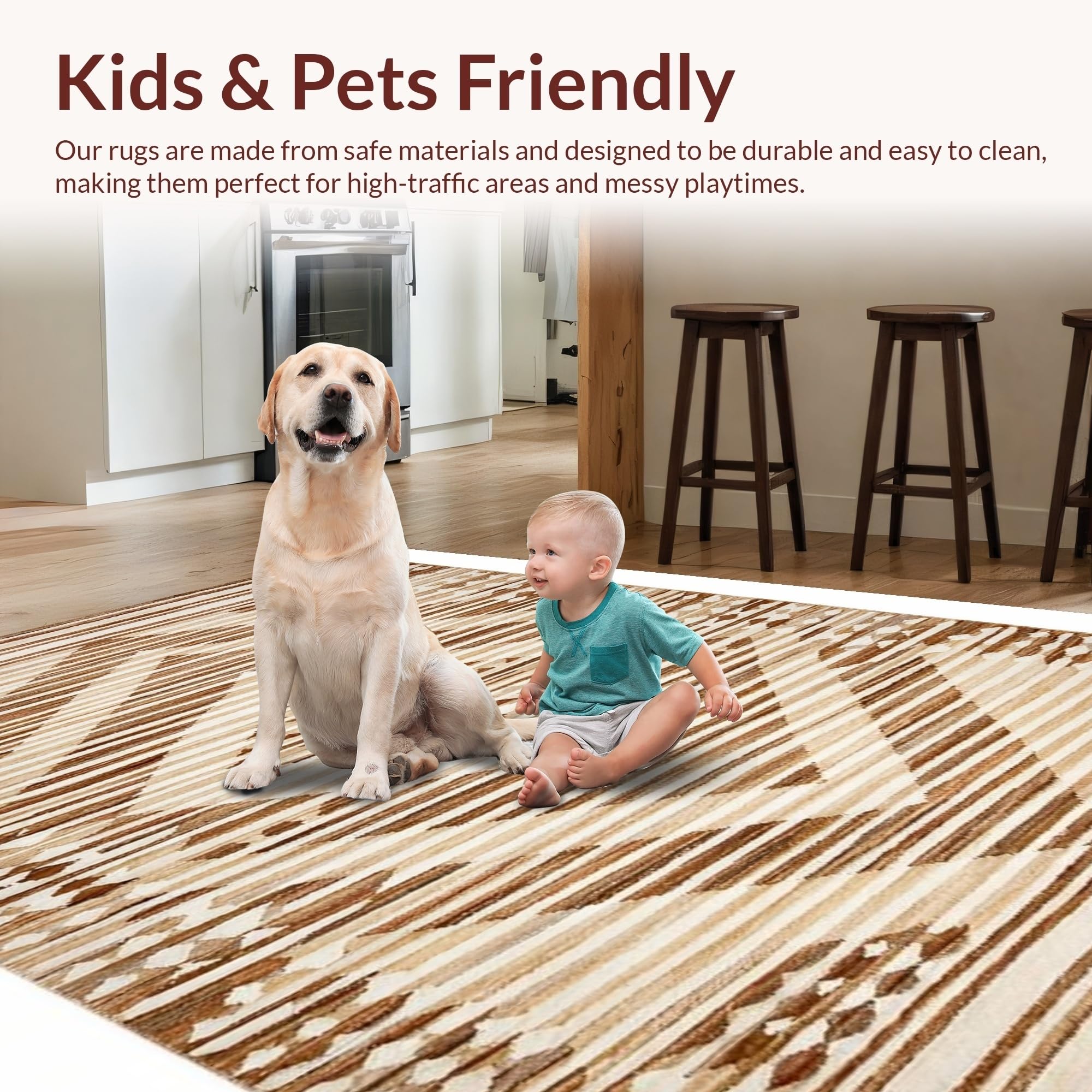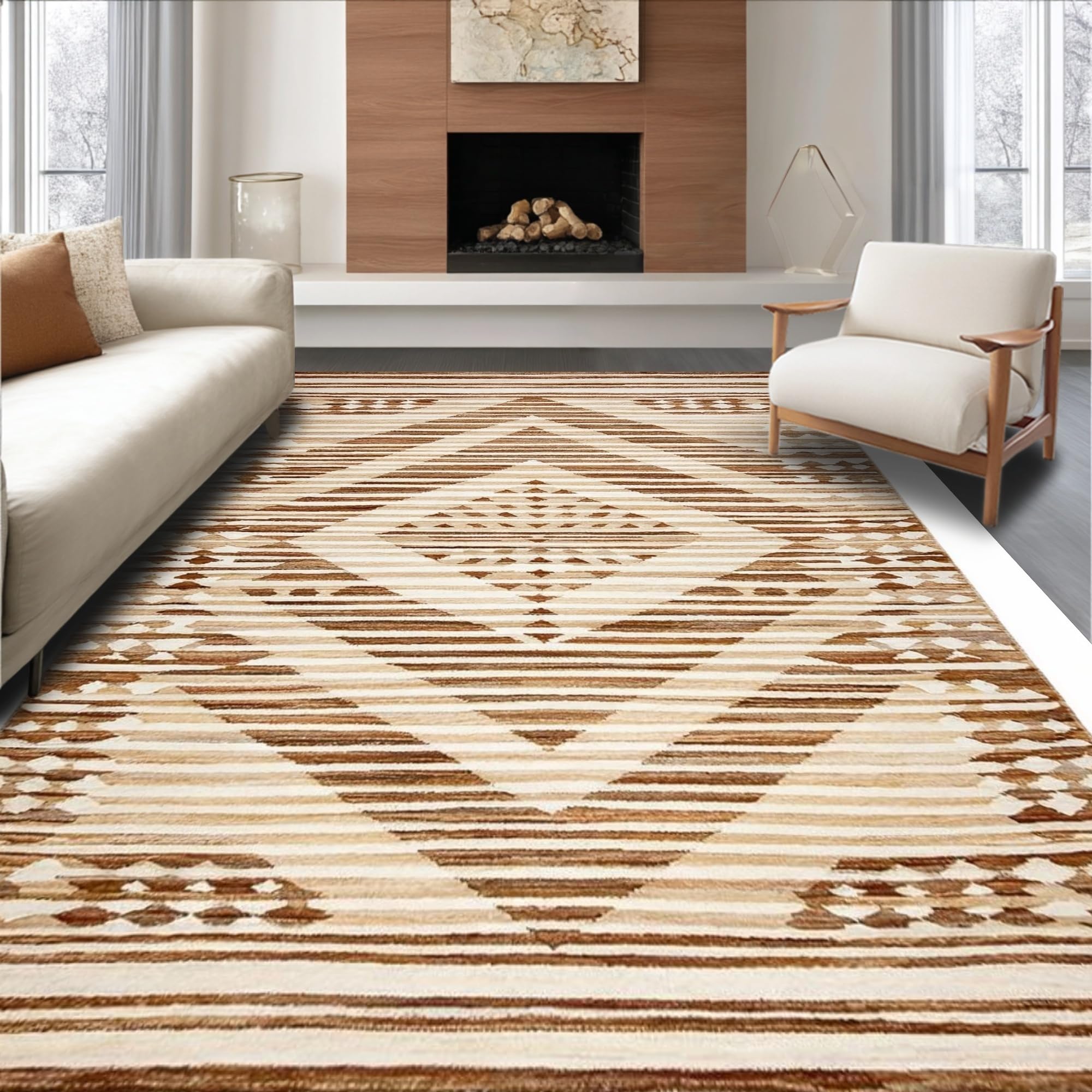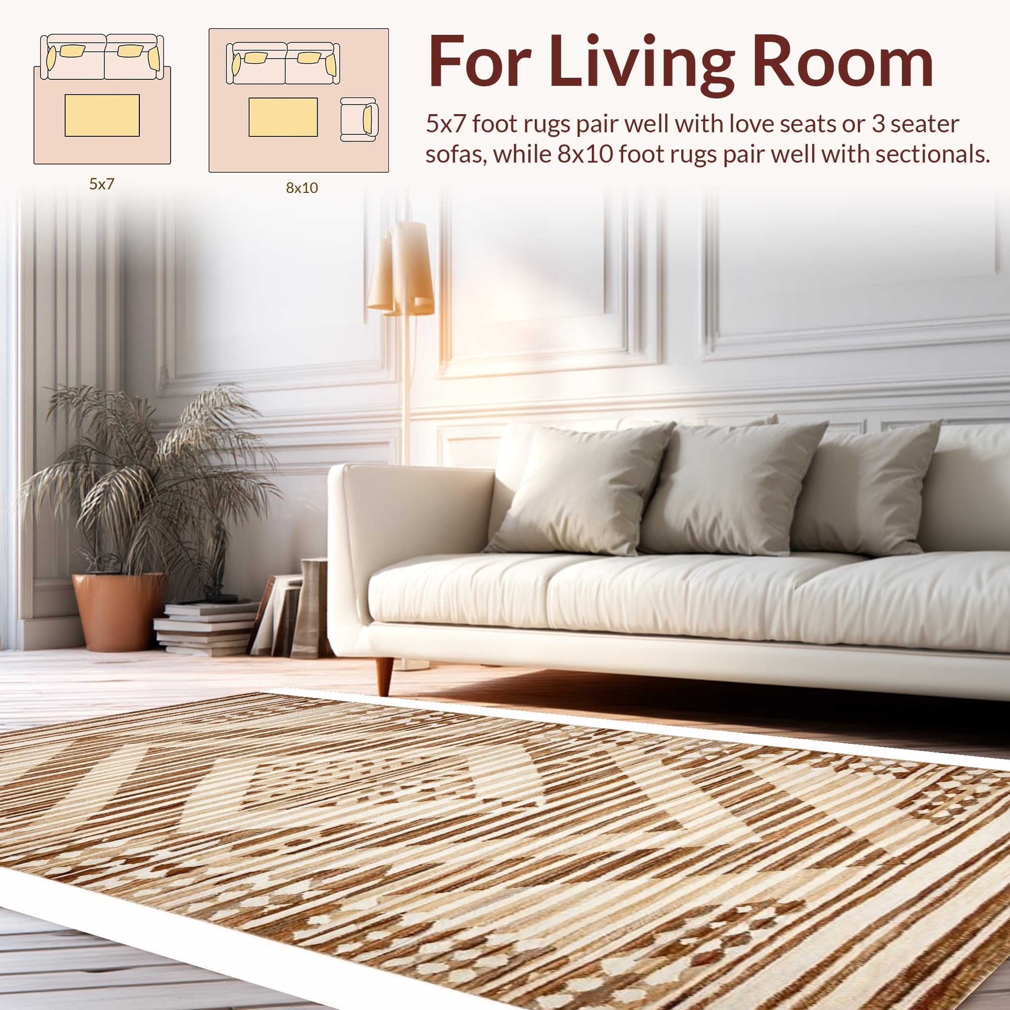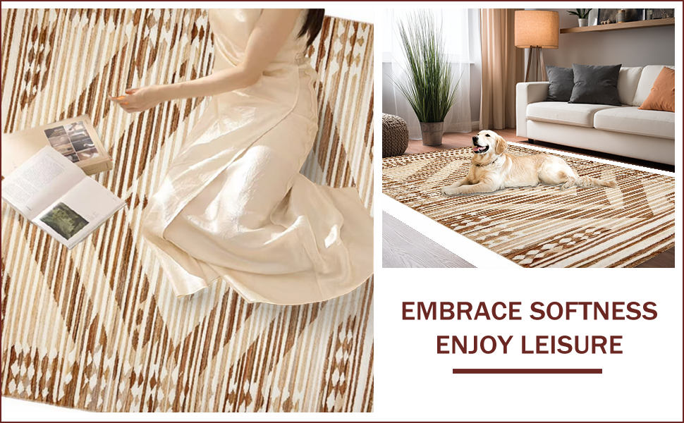 Ultra Soft Area Rug, Non Slip, Stain Resistant, Washable Area Rugs for Living Room, Bedroom, Chic Abstract Neutral Tones(Beige) Overview: