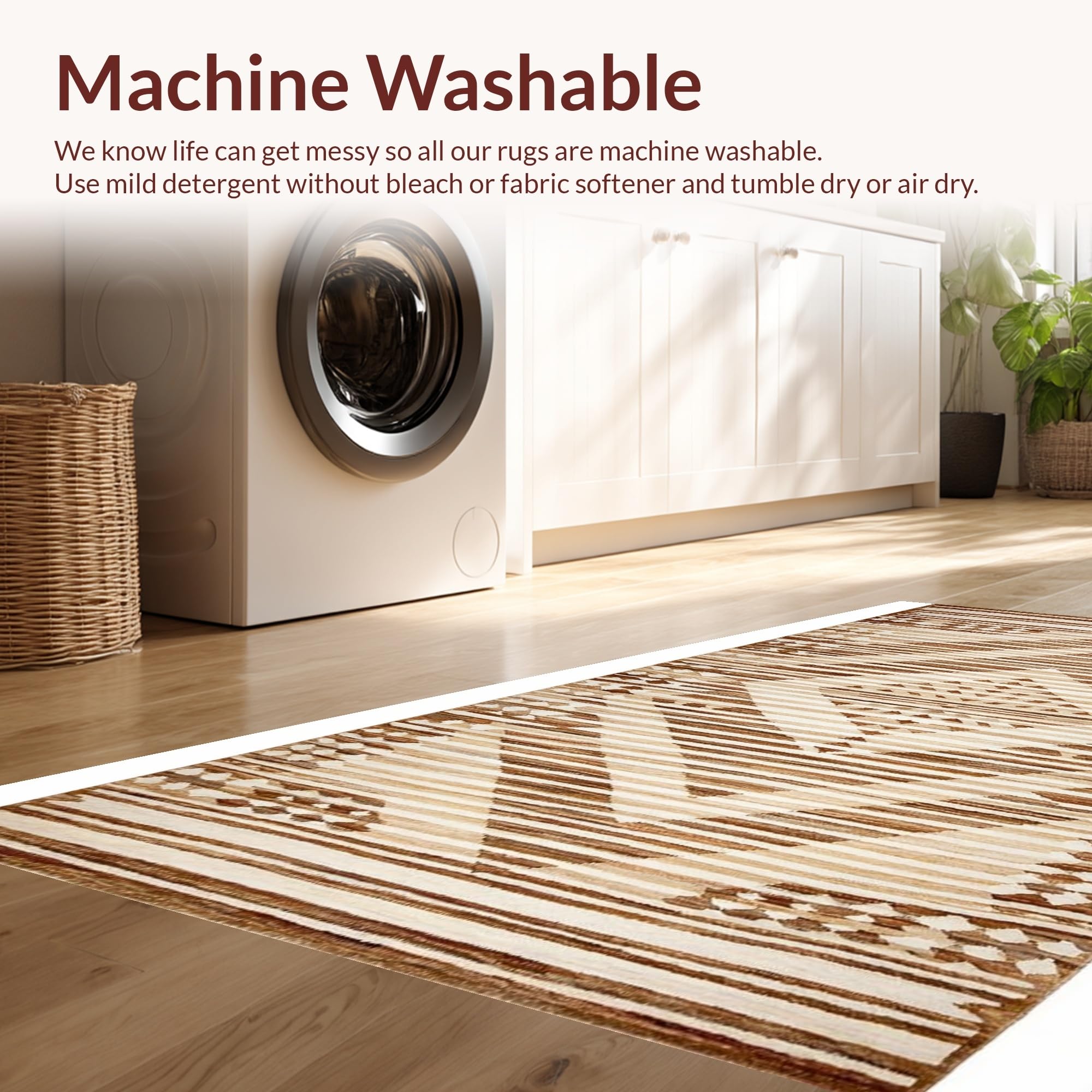 - Machine Washable: Our rugs can be easily thrown in the wash machine.