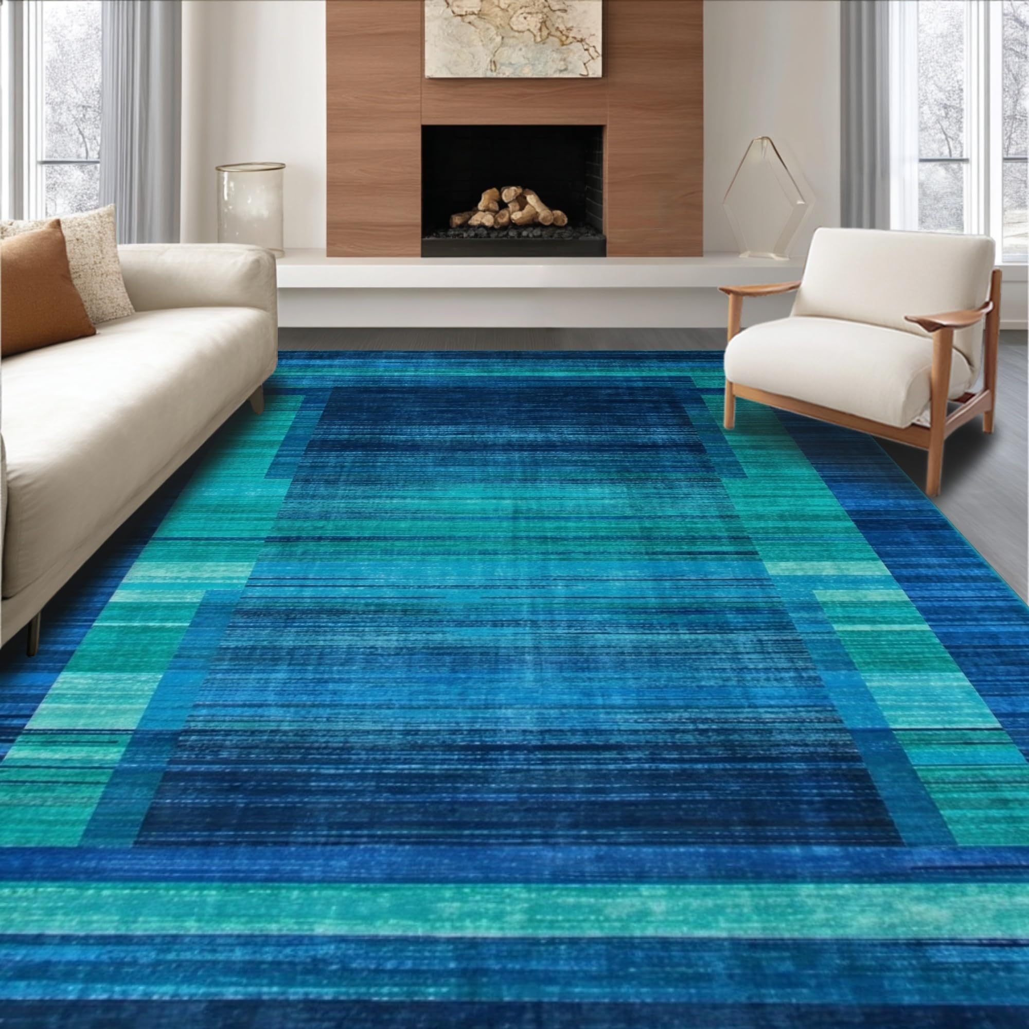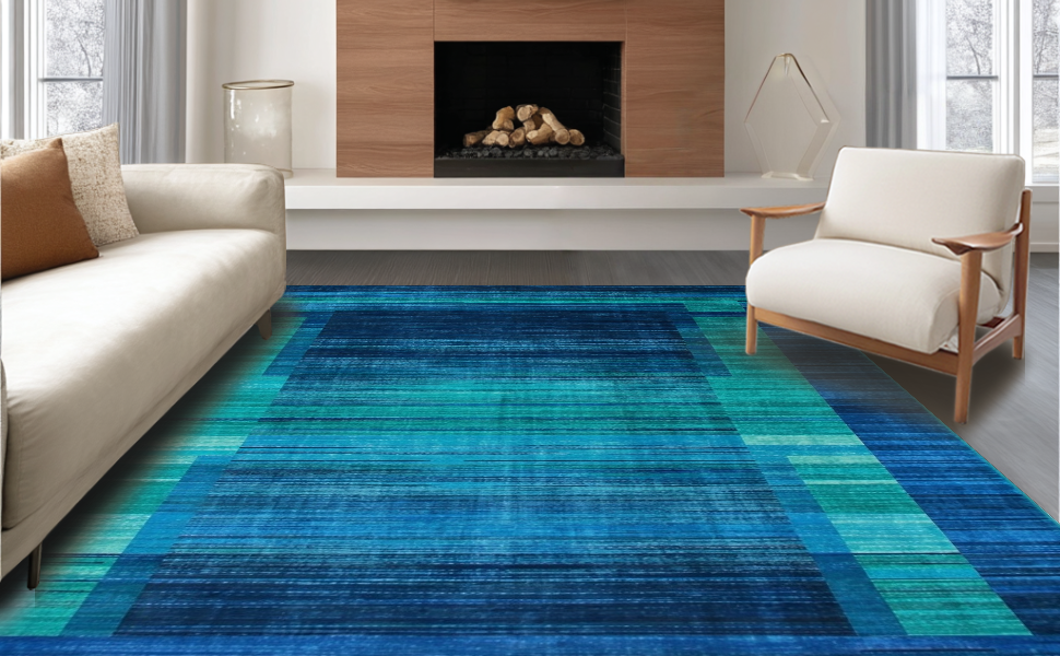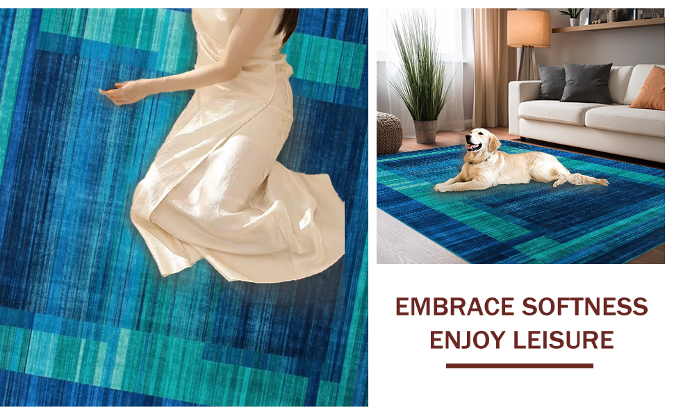 Ultra Soft Area Rug, Non Slip, Stain Resistant, Washable Area Rugs for Living Room, Bedroom, Chic Abstract Organic Shapes(Blue) Overview: