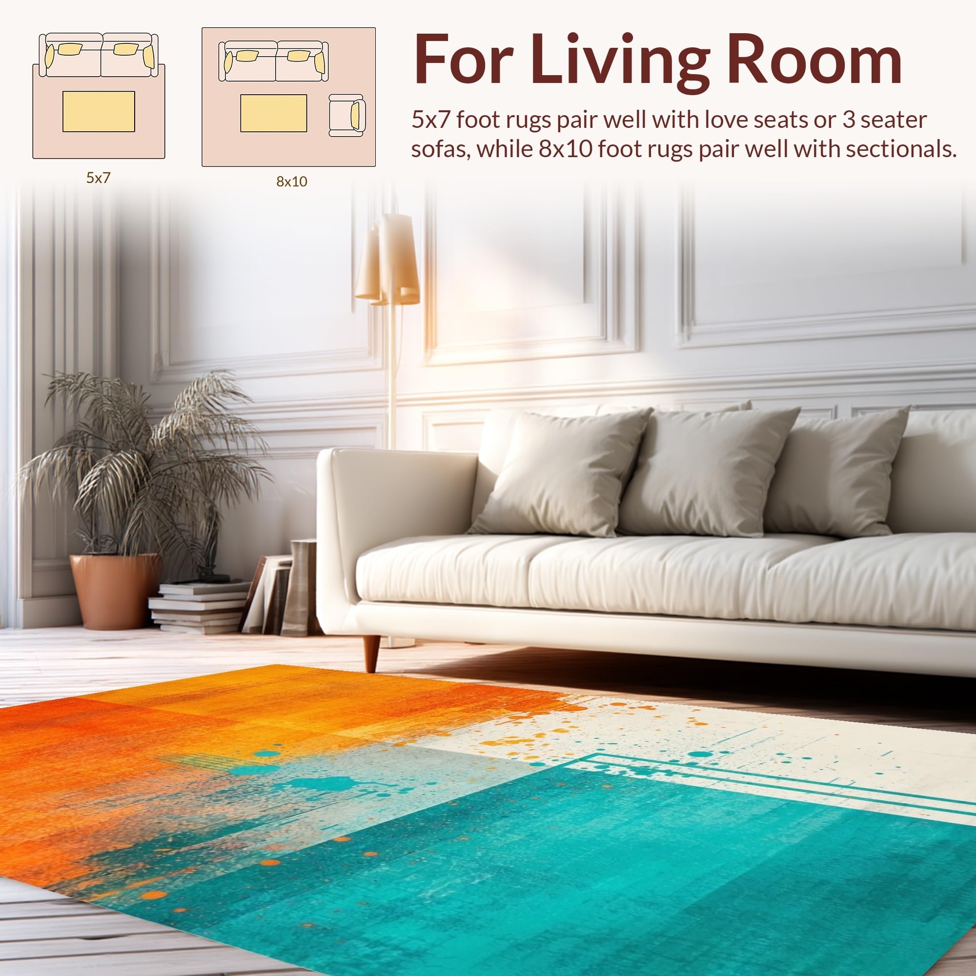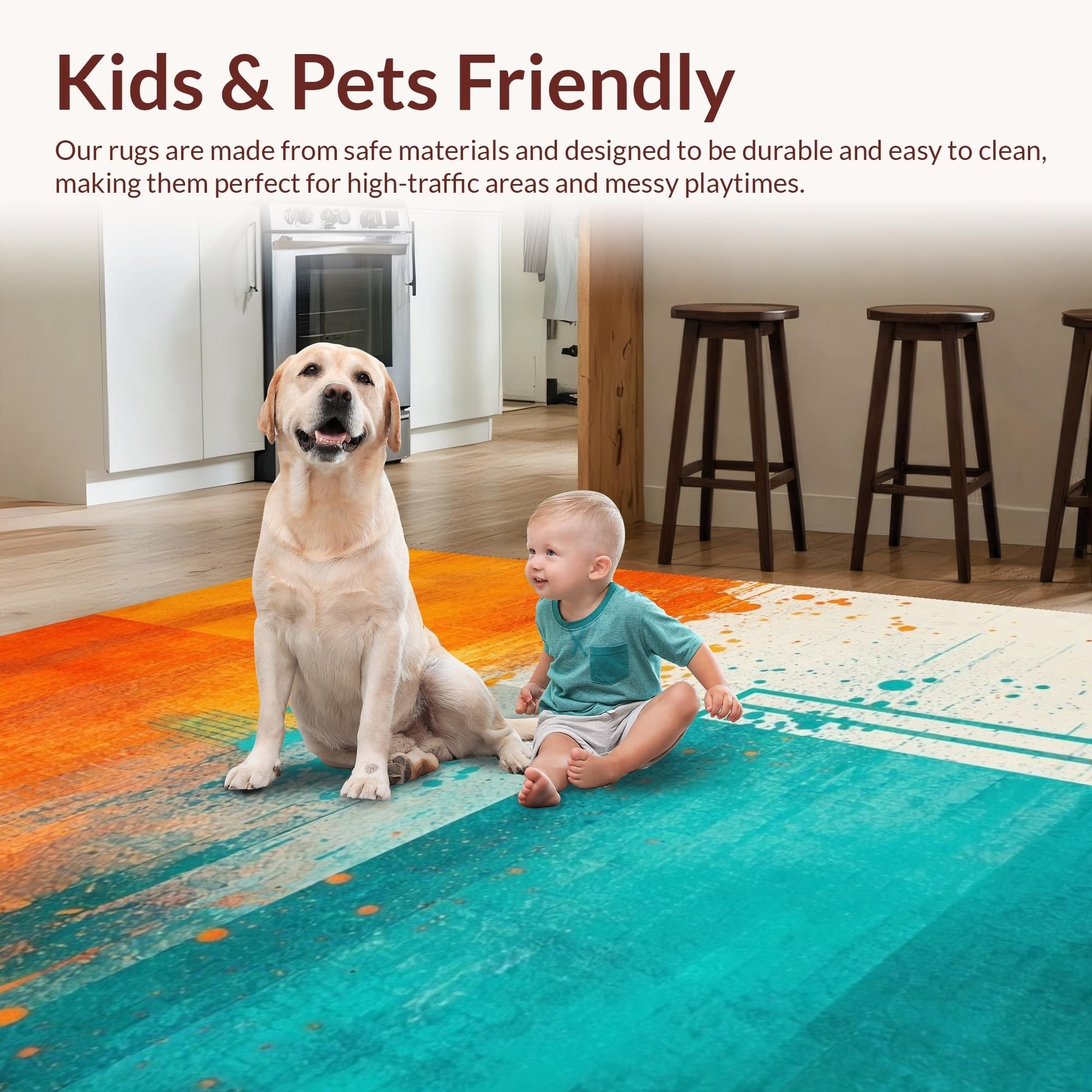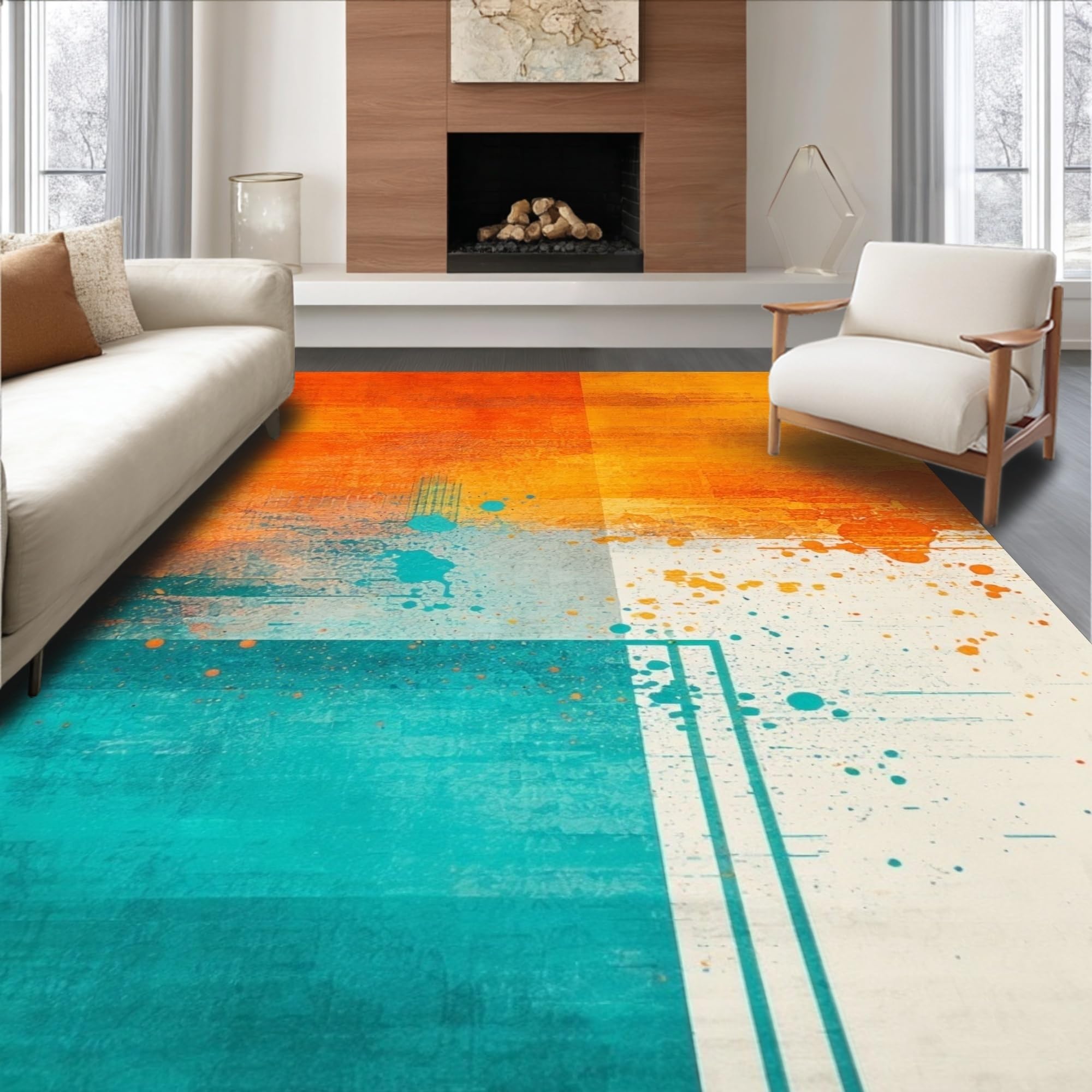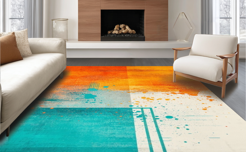 Ultra Soft Area Rug, Non Slip, Stain Resistant, Washable Area Rugs for Living Room, Bedroom, Chic Abstract Paint Splatter Style(Orange) Overview: