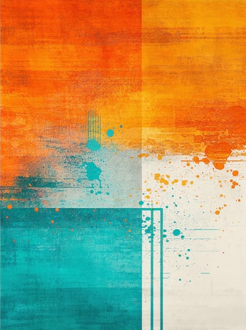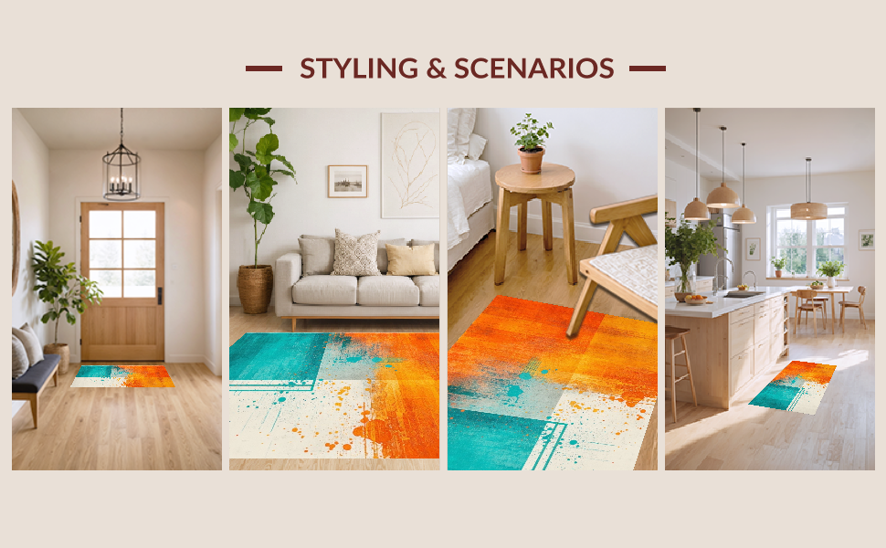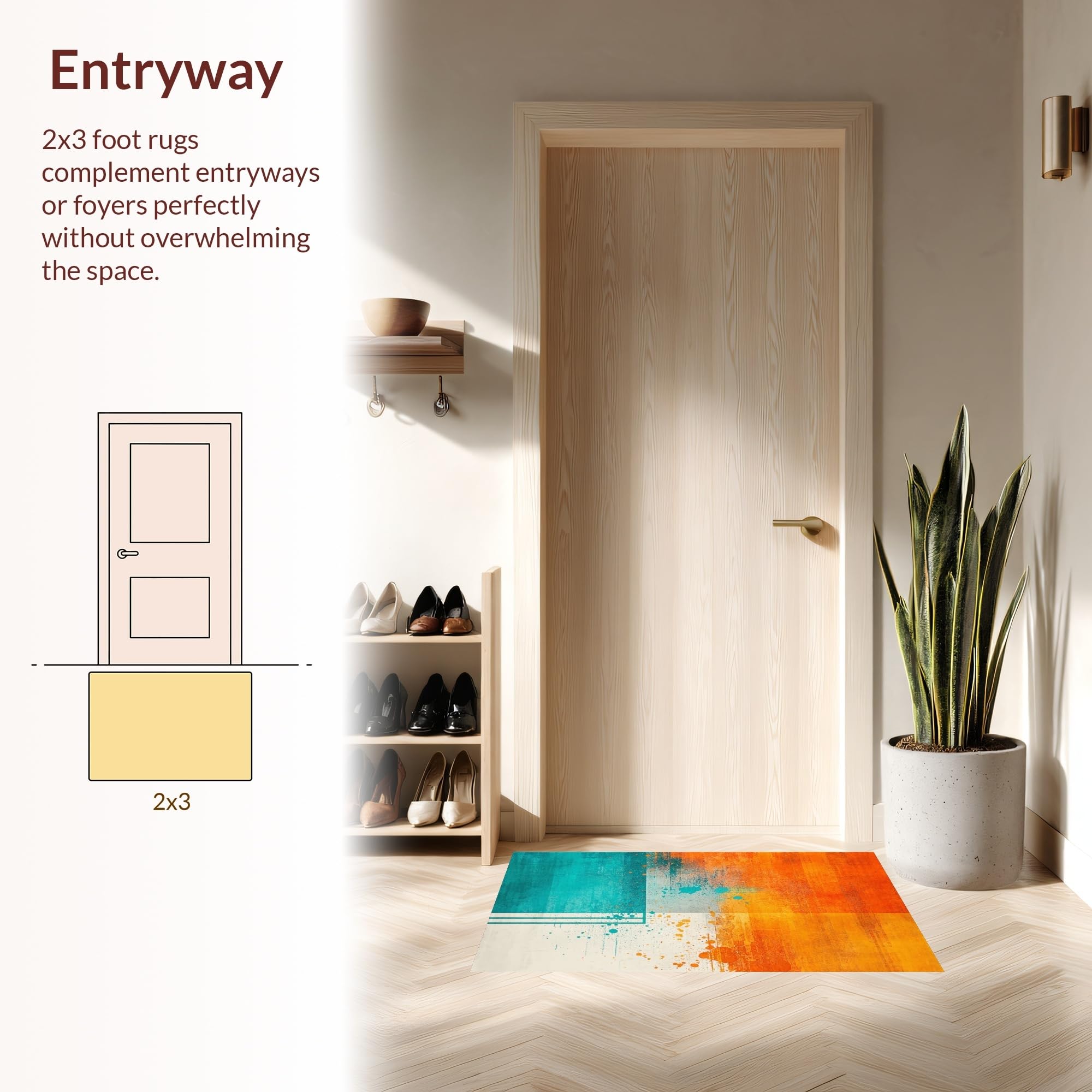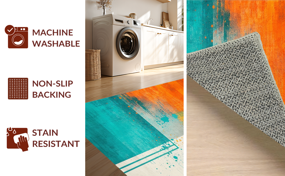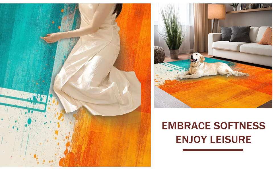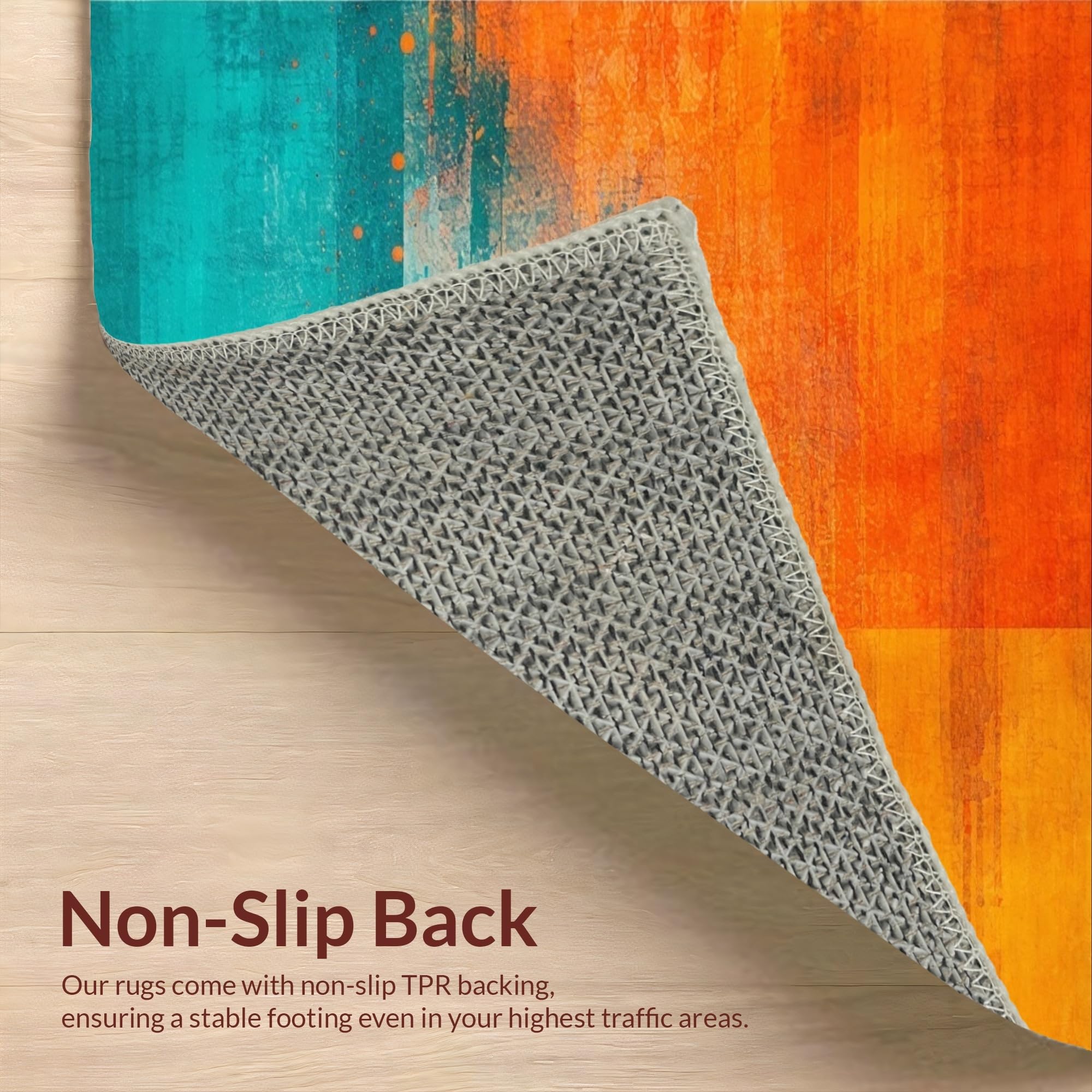 Ultra Soft Area Rug, Non Slip, Stain Resistant, Washable Area Rugs for Living Room, Bedroom, Chic Abstract Paint Splatter Style(Orange) Overview: