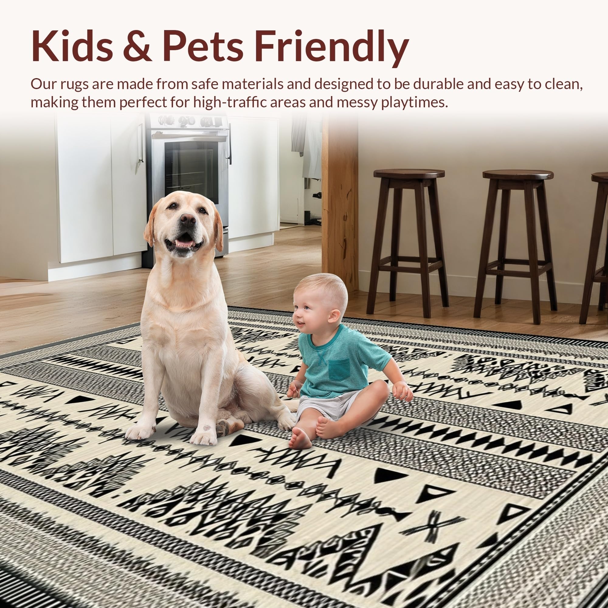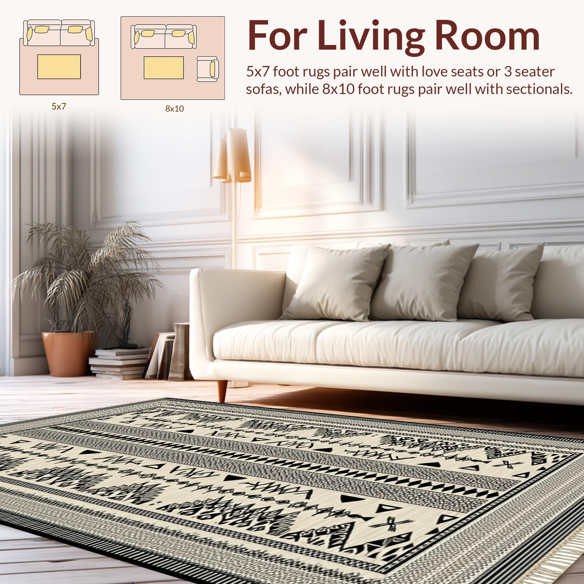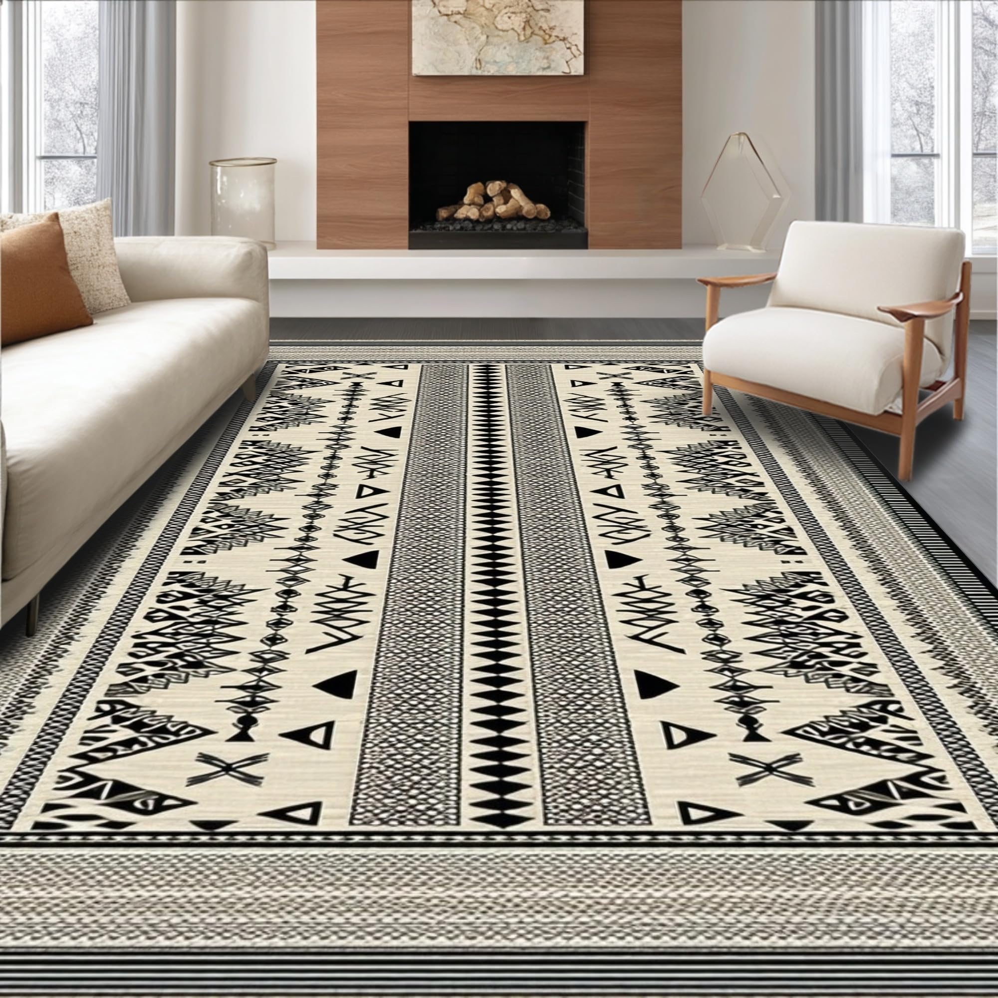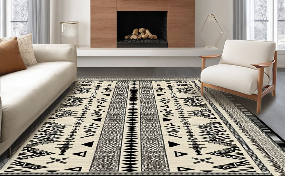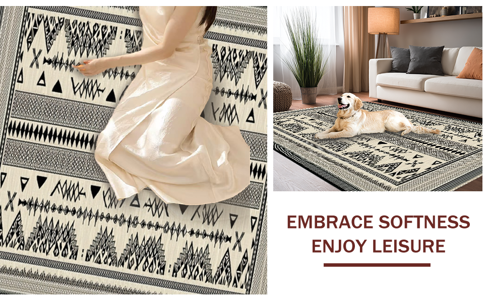 Ultra Soft Area Rug, Non Slip, Stain Resistant, Washable Area Rugs for Living Room, Bedroom, Chic Abstract Reversible Mat(Beige) Overview: