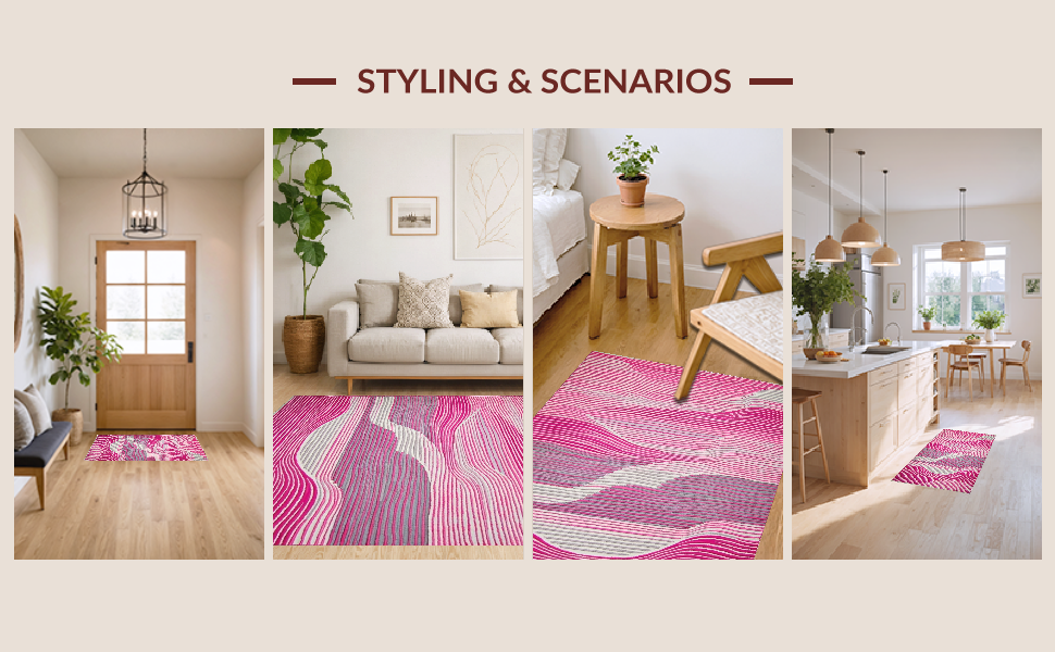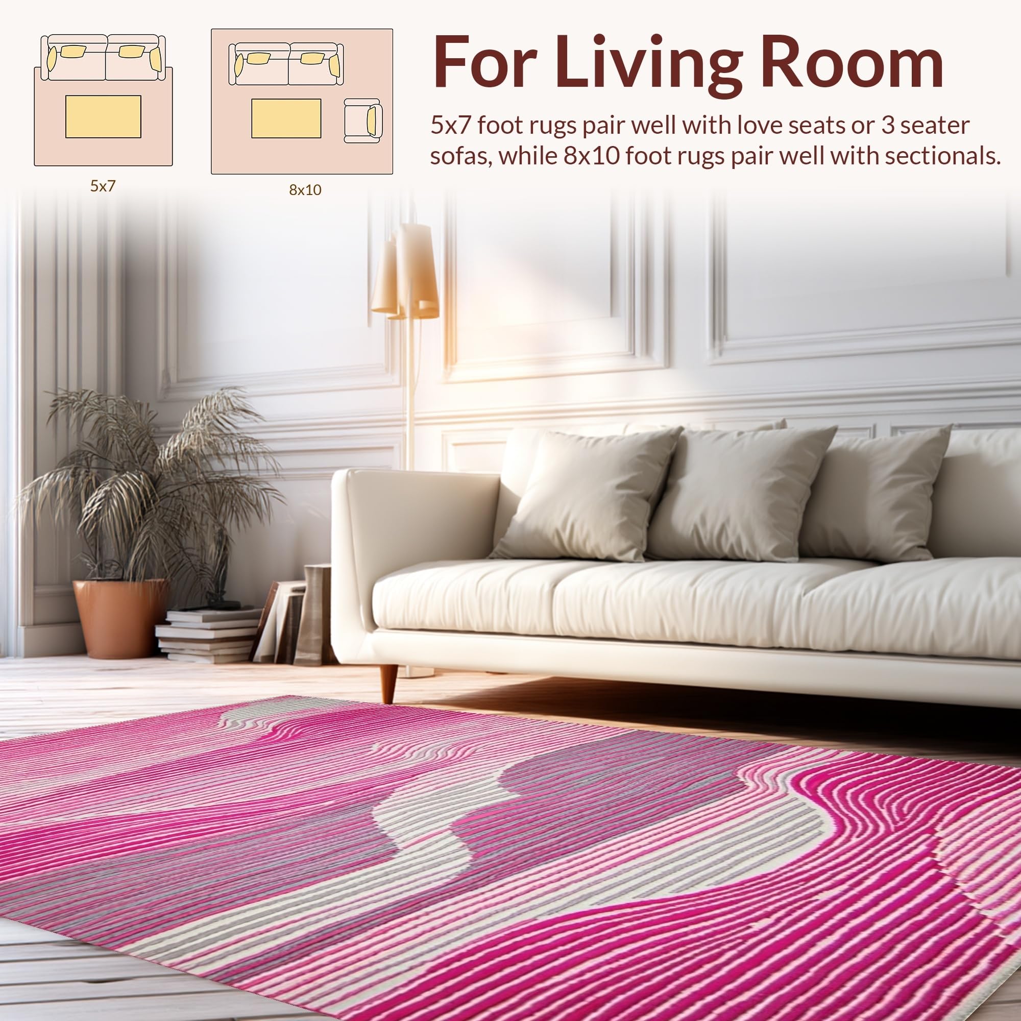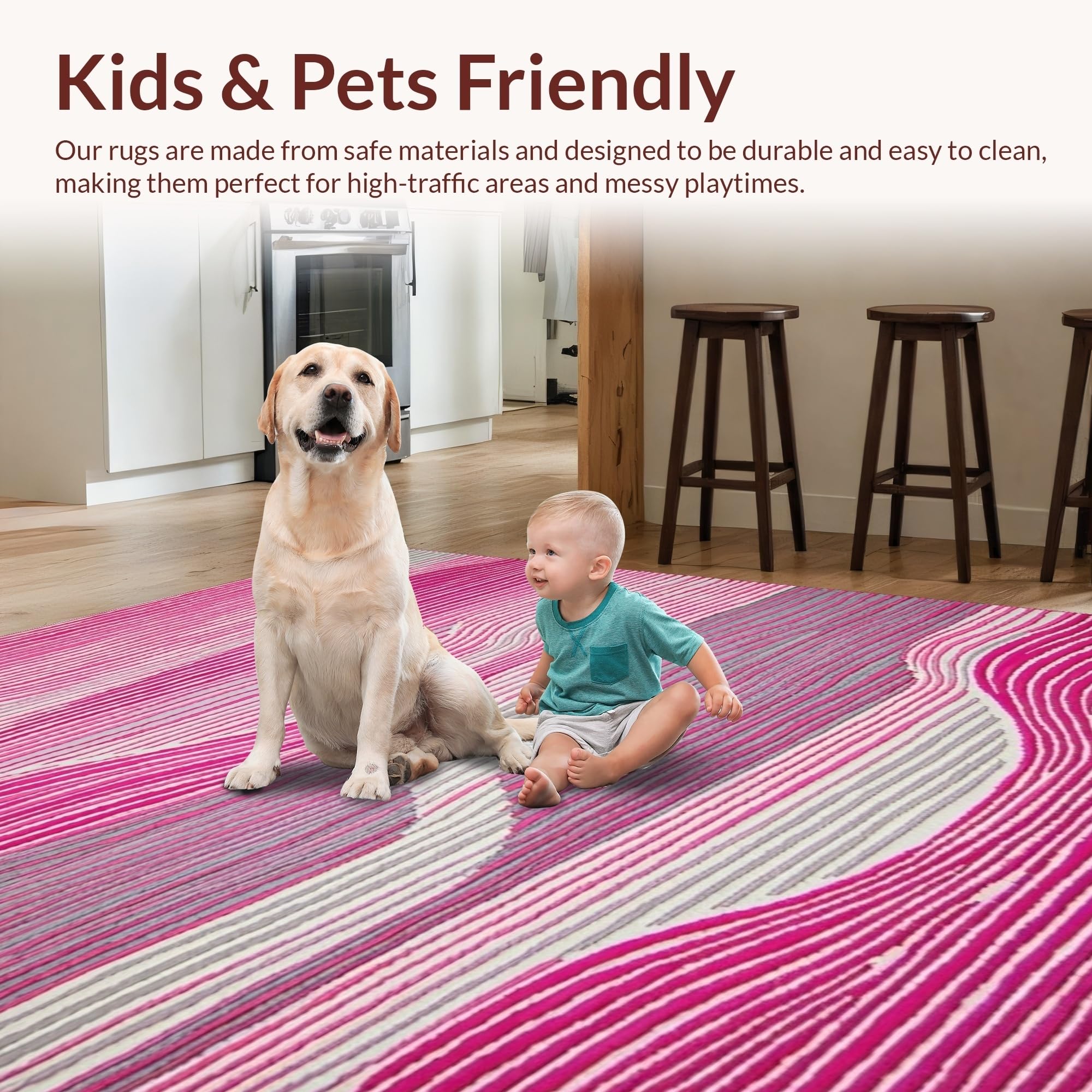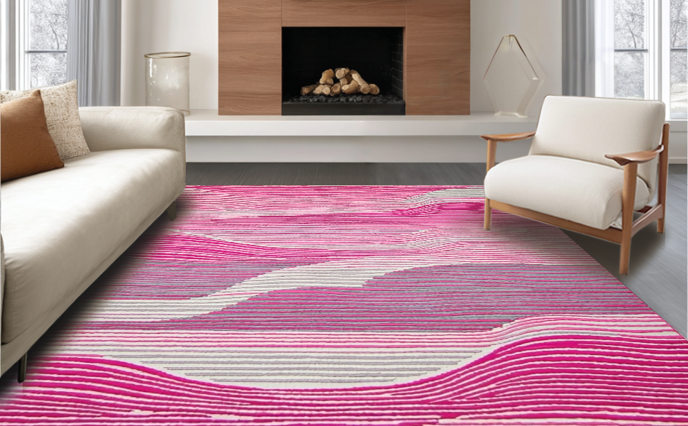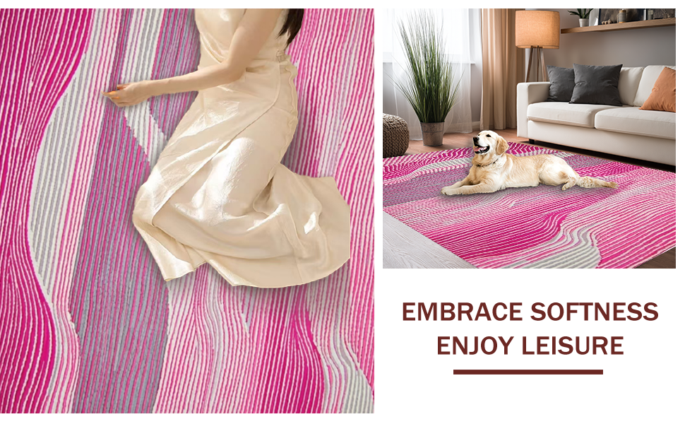 Ultra Soft Area Rug, Non Slip, Stain Resistant, Washable Area Rugs for Living Room, Bedroom, Chic Abstract Soft Blush Patterns(Pink) Overview: