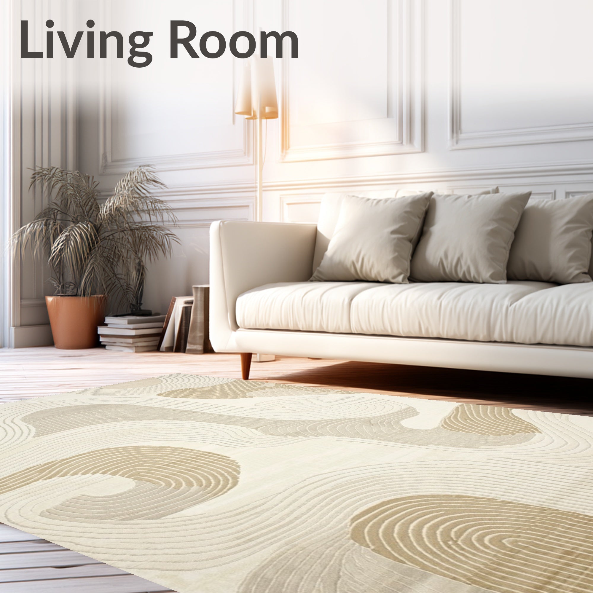 Ultra Soft Area Rug, Non Slip, Stain Resistant, Washable Area Rugs for Living Room, Bedroom, Chic Abstract Swirl Design Modern Flair in Cream and Earthy Beige(Beige) Overview: