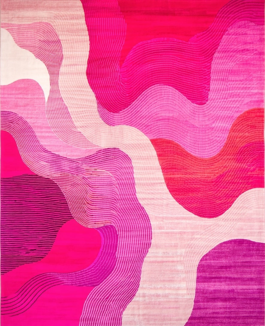 Chic Abstract Swirls Area Accent for Modern Home Decor(Pink)