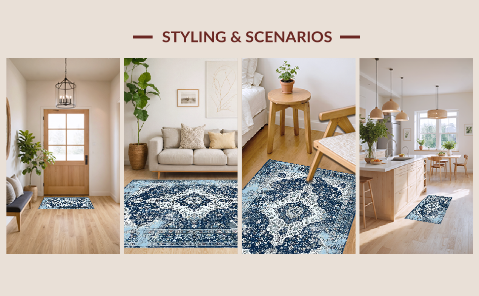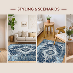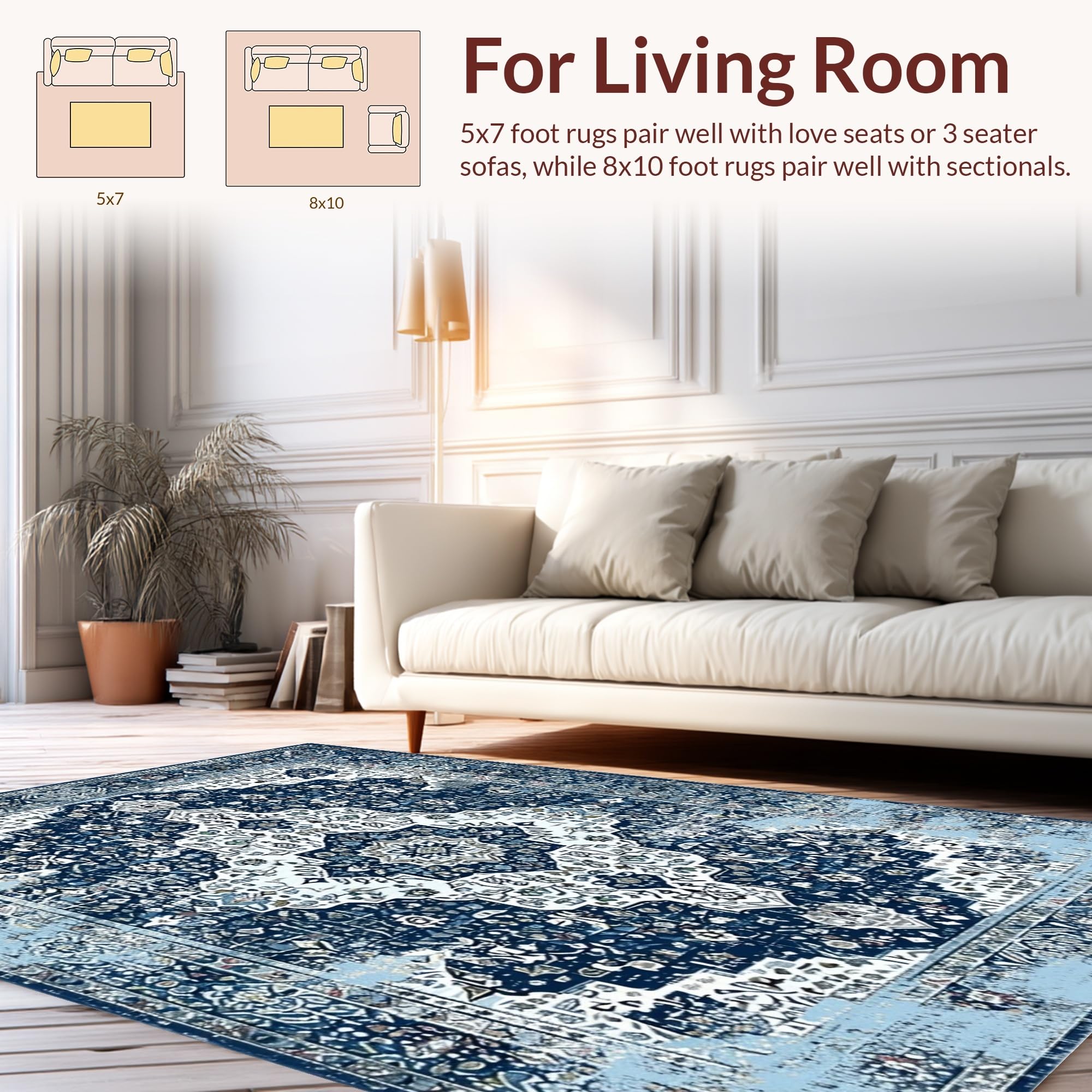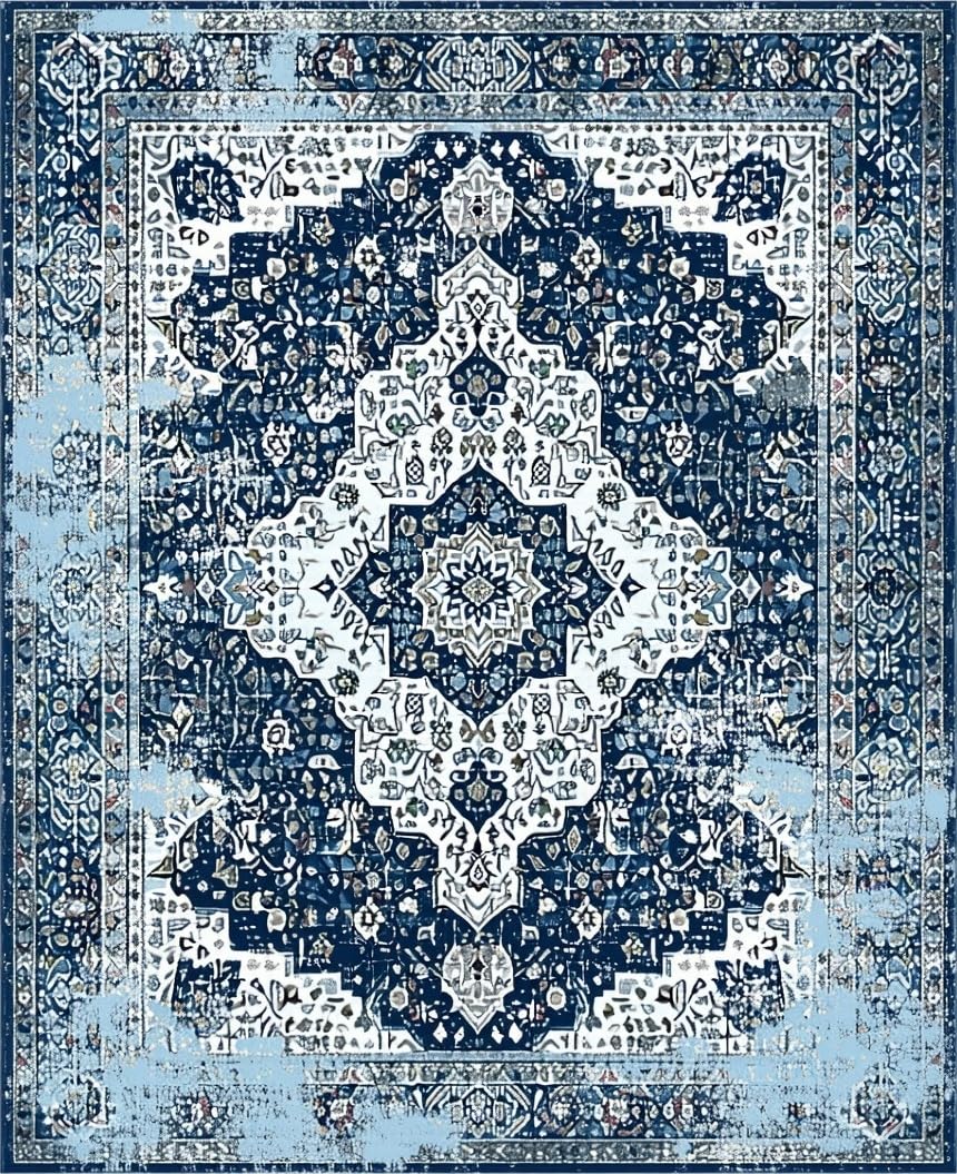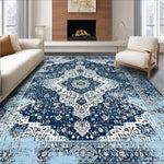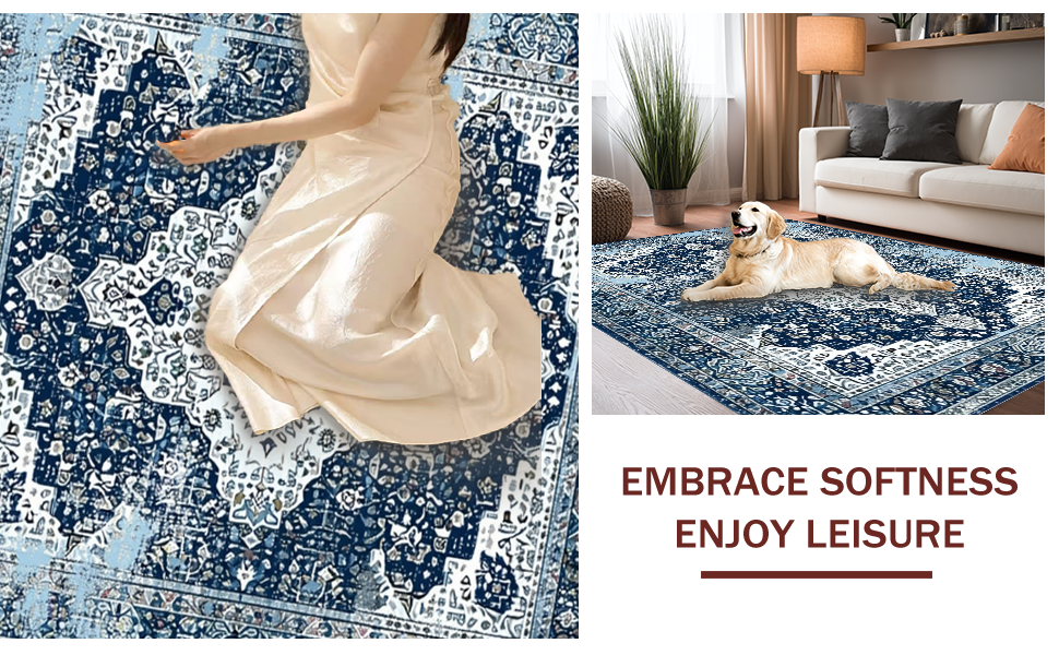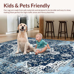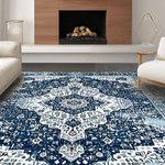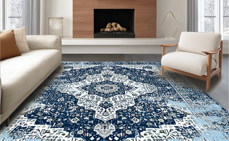 Ultra Soft Area Rug, Non Slip, Stain Resistant, Washable Area Rugs for Living Room, Bedroom, Chic Abstract Symmetrical Elements(Blue) Overview: