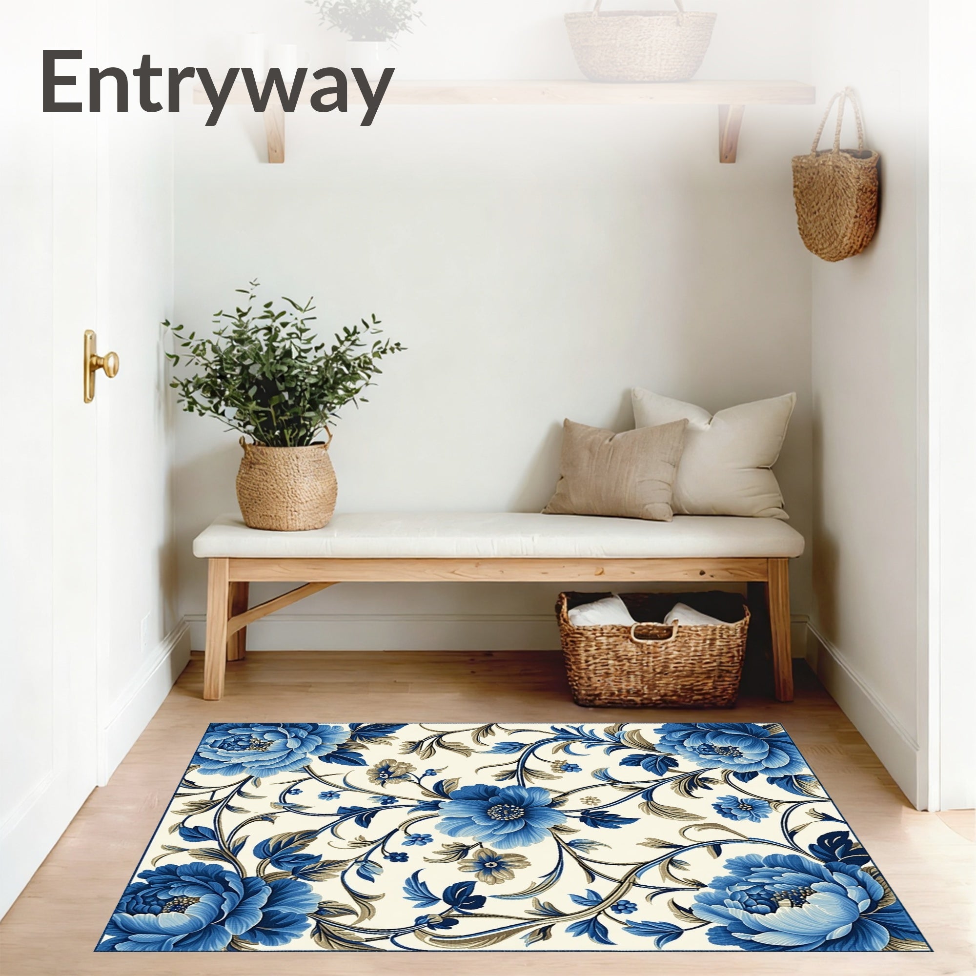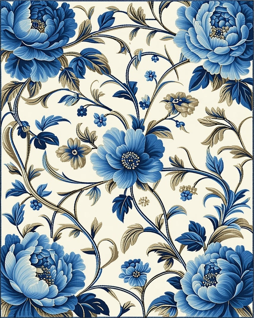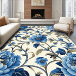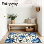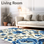 Ultra Soft Area Rug, Non Slip, Stain Resistant, Washable Area Rugs for Living Room, Bedroom, Chic Accent Featuring Navy and Beige Floral Motifs(Blue) Overview: