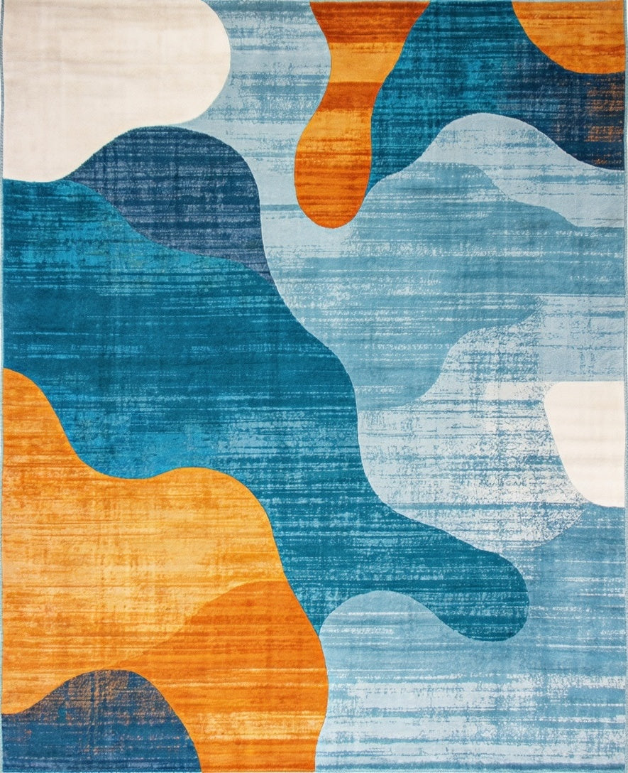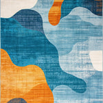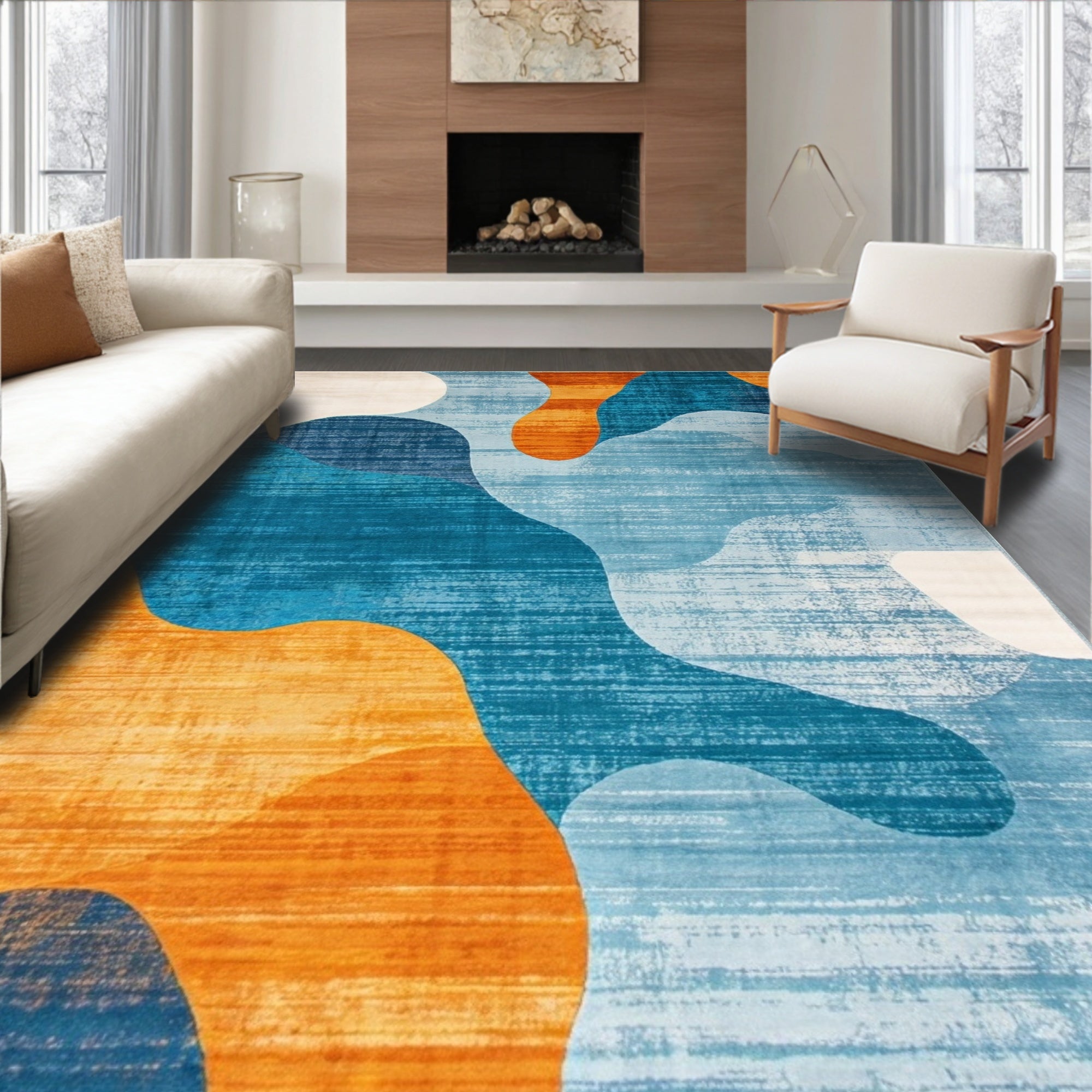 Ultra Soft Area Rug, Non Slip, Stain Resistant, Washable Area Rugs for Living Room, Bedroom, Chic Area with Contemporary Blue Orange Abstract Motif(Blue) Overview: