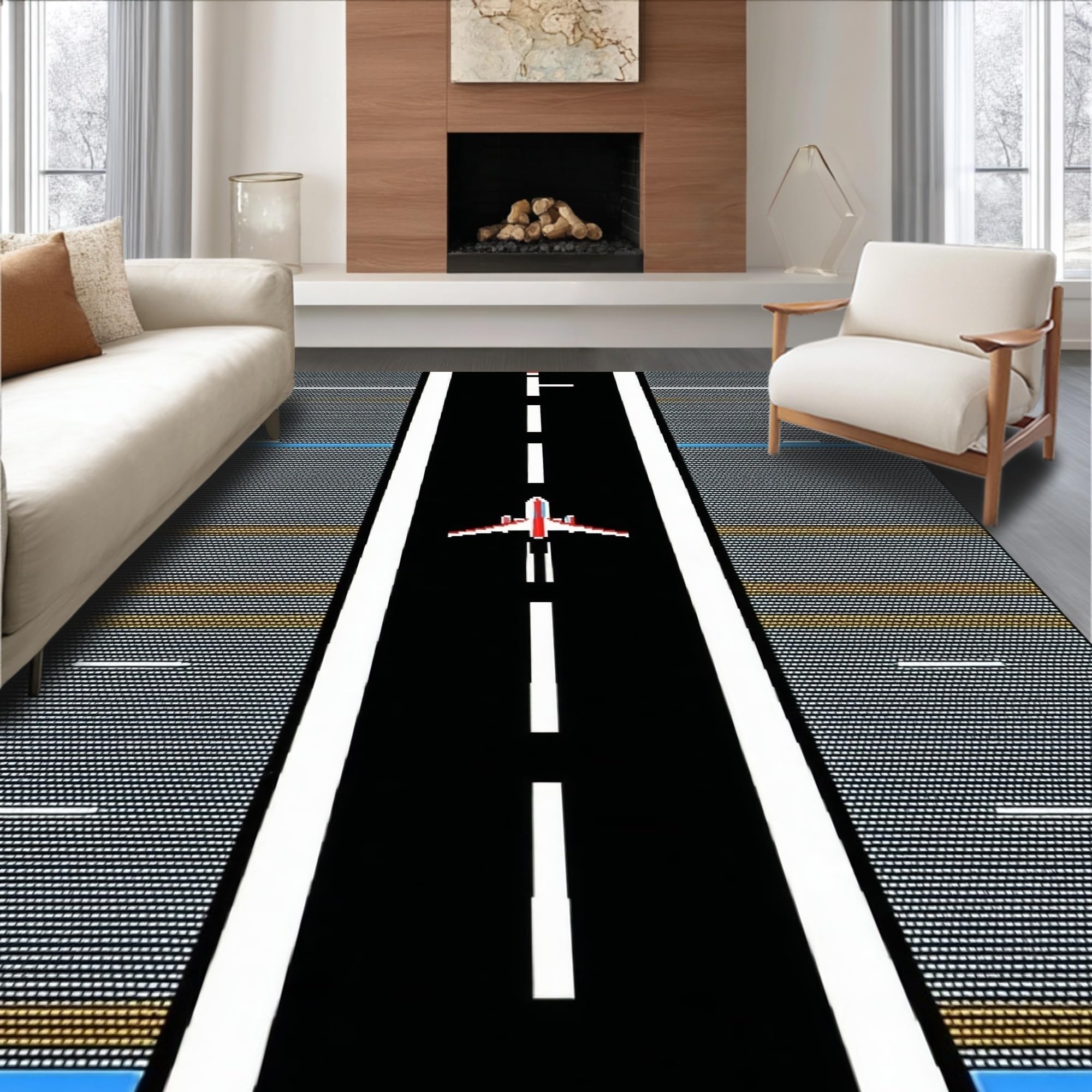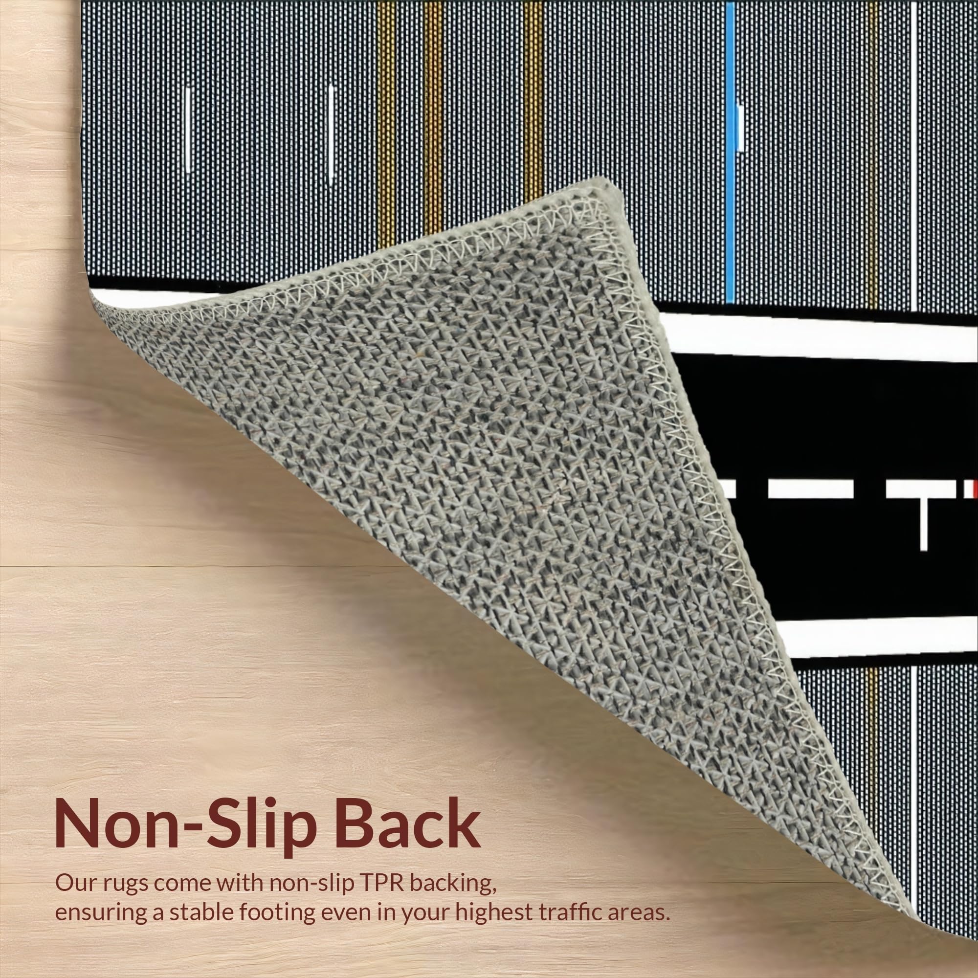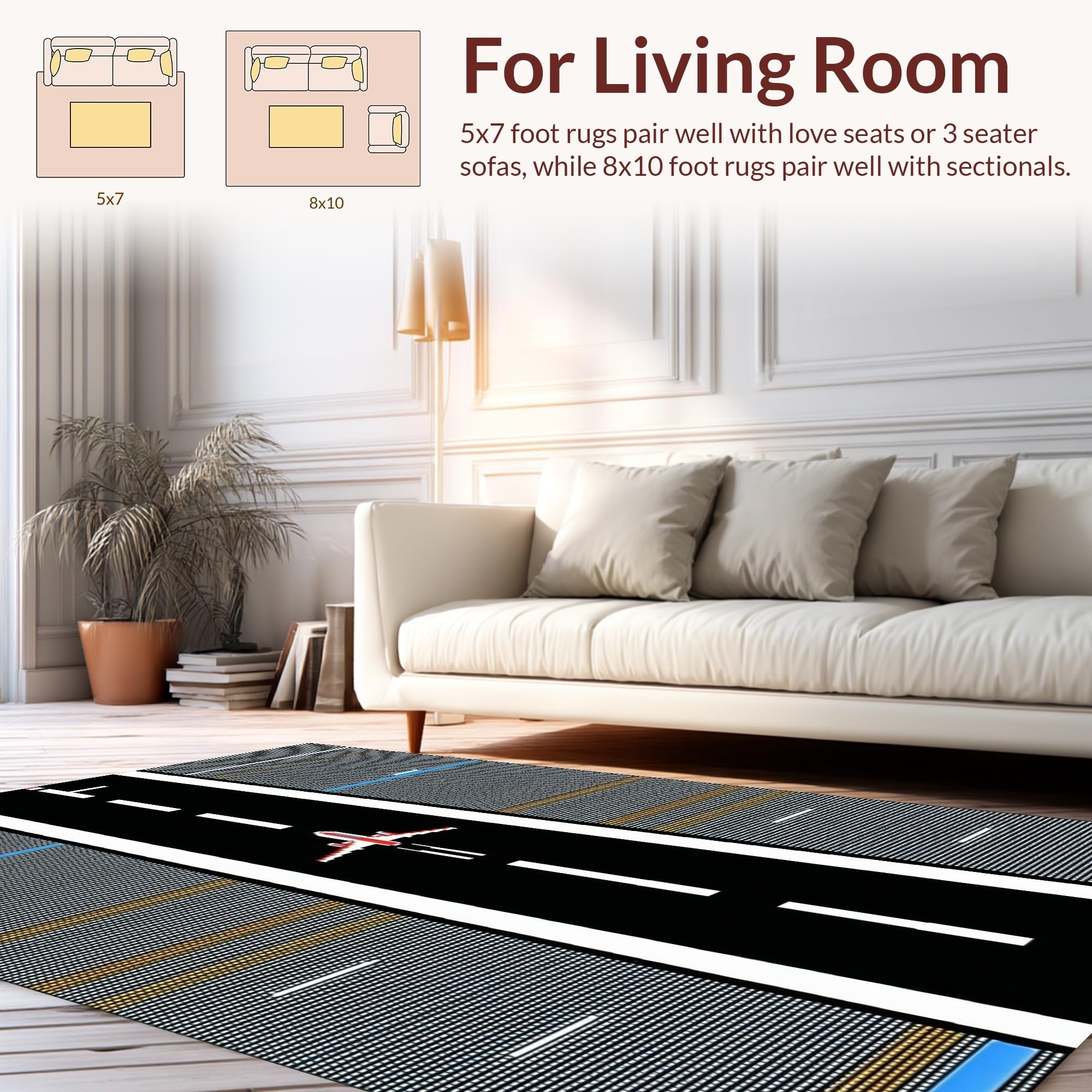 Ultra Soft Area Rug, Non Slip, Stain Resistant, Washable Area Rugs for Living Room, Bedroom, Chic Aviation Roadway Composition(Gray) Overview:
