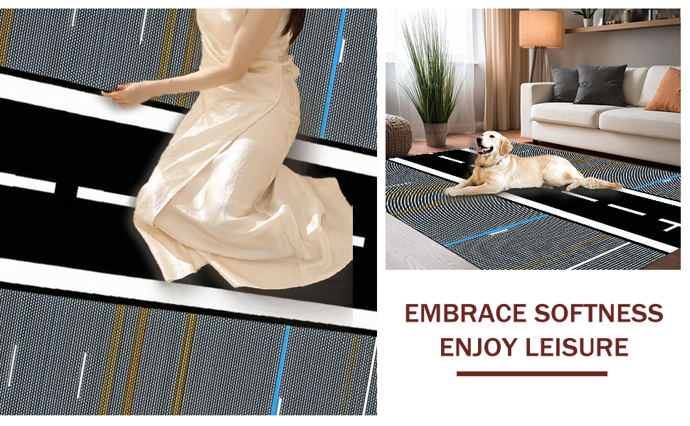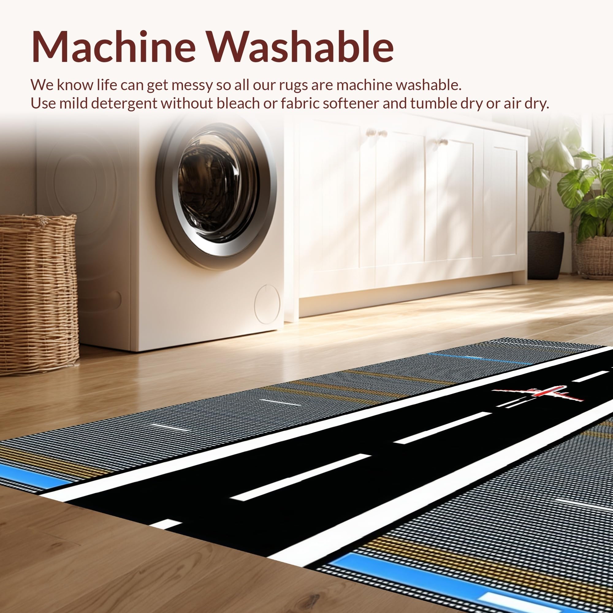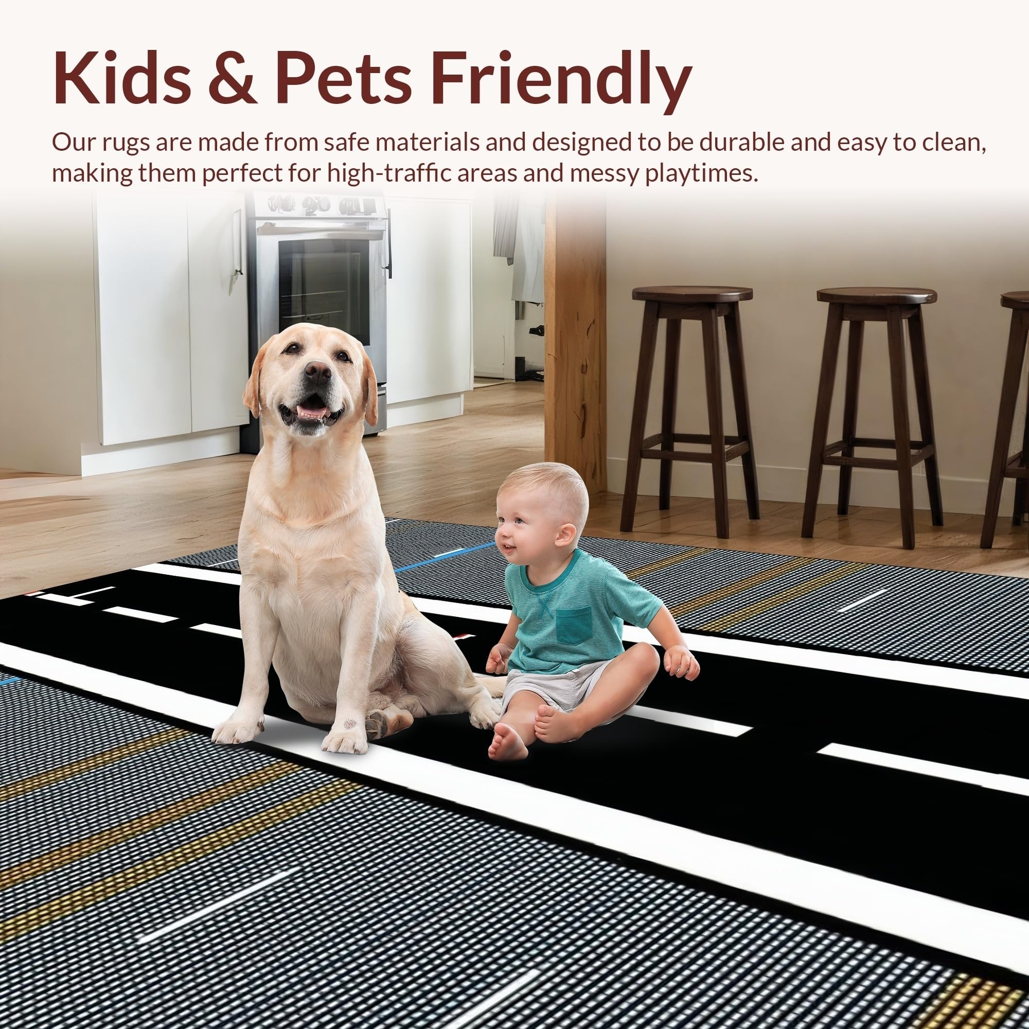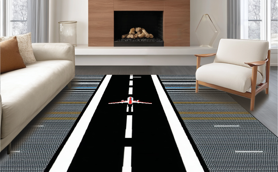 Ultra Soft Area Rug, Non Slip, Stain Resistant, Washable Area Rugs for Living Room, Bedroom, Chic Aviation Roadway Composition(Gray) Overview: