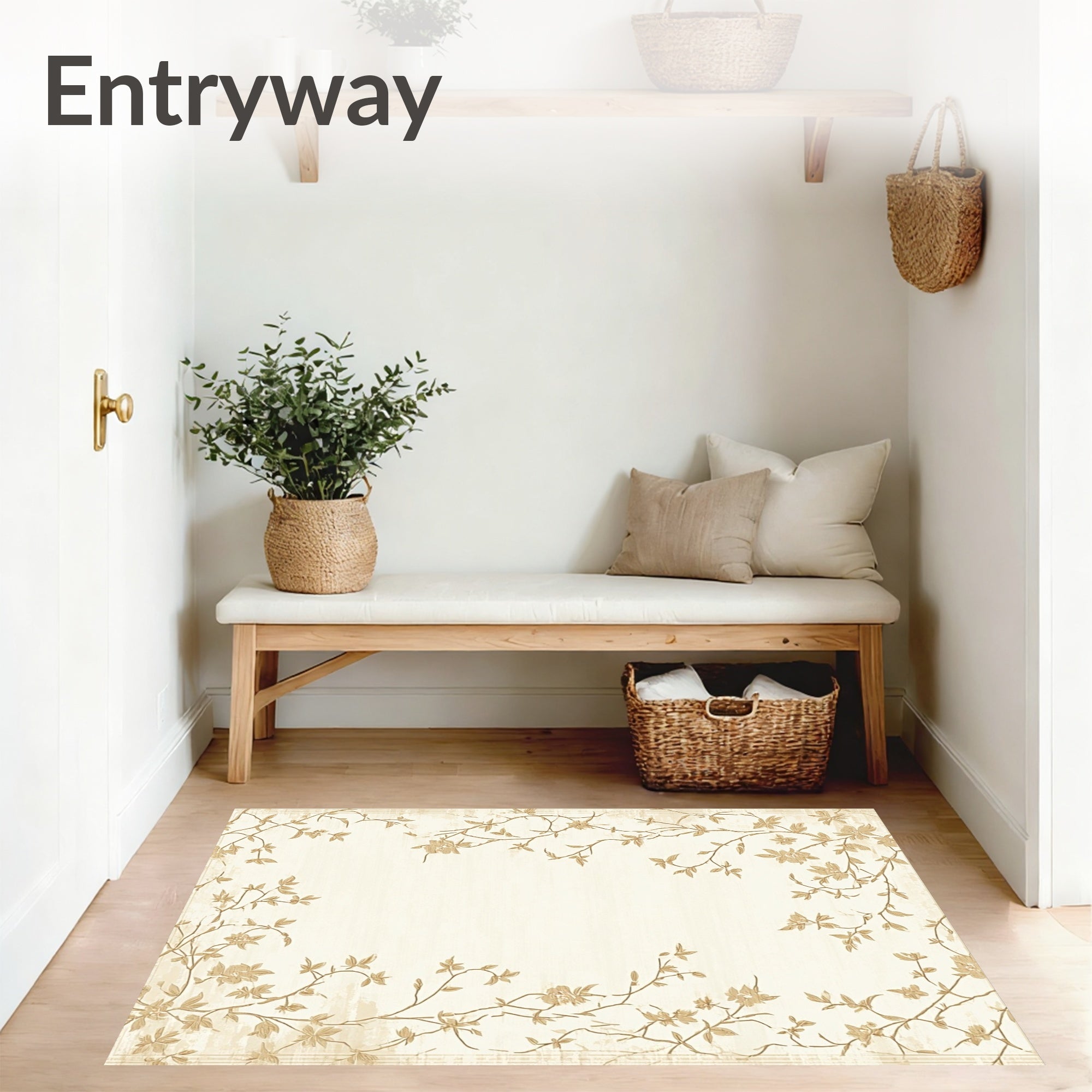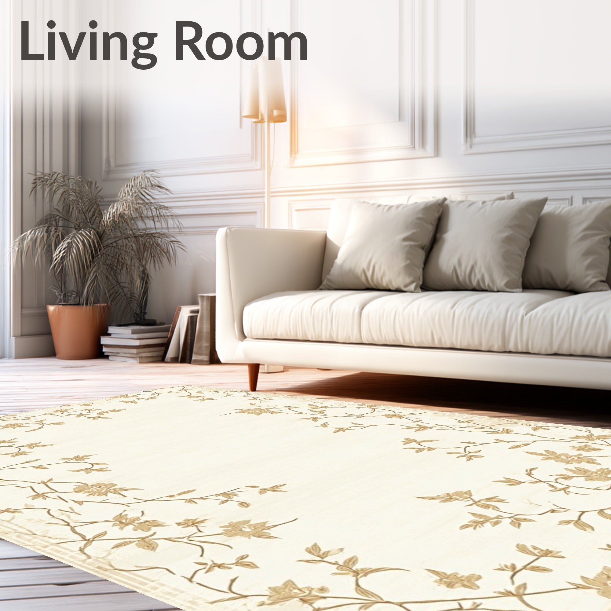 Flatwoven High Traffic Area Rug, Chic Beige Botanical Whisper Delicate Floral Bloom, Non Slip, Stain Resistant, Washable Area Rugs for Living Room, Bedroom (Beige) Overview: