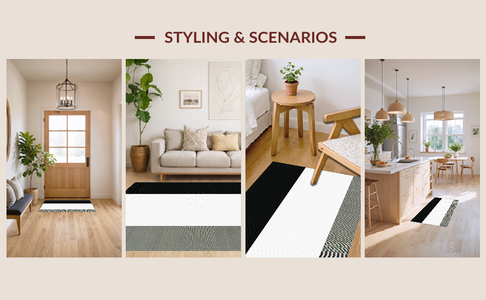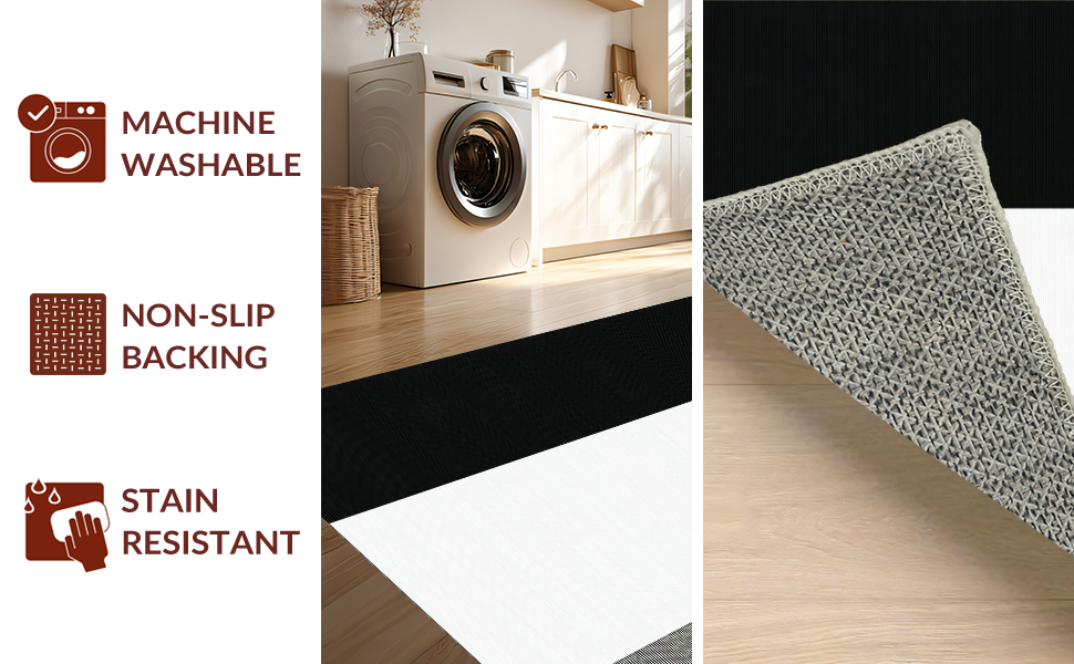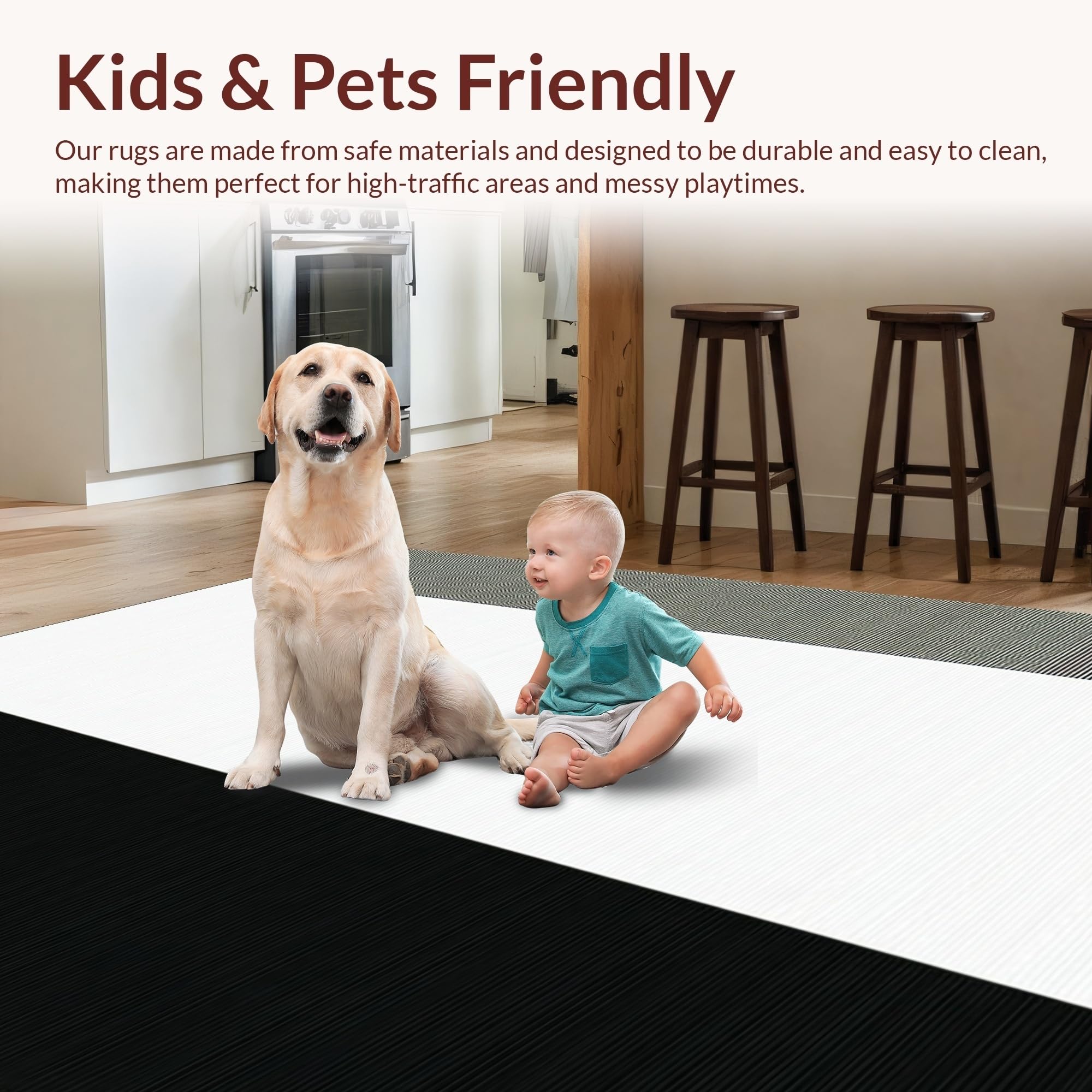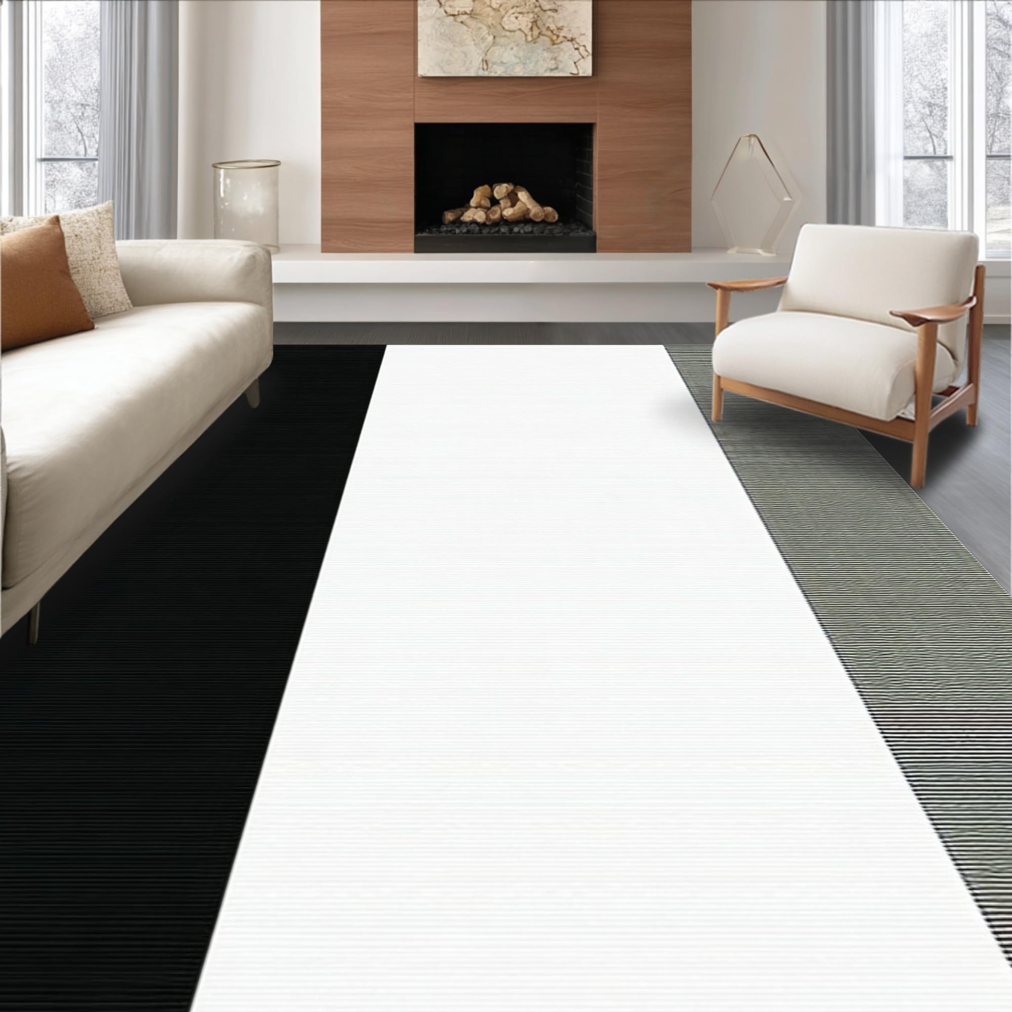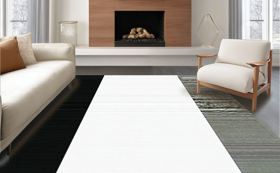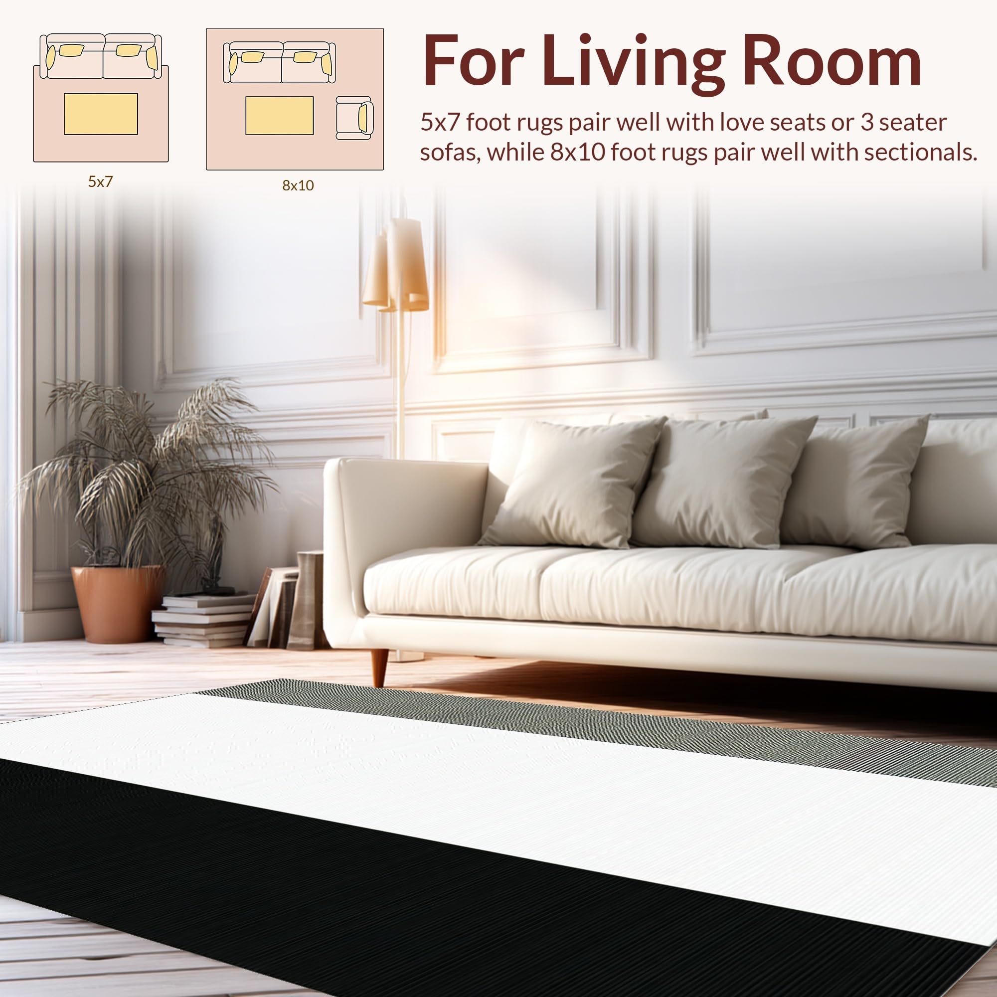 Ultra Soft Area Rug, Non Slip, Stain Resistant, Washable Area Rugs for Living Room, Bedroom, Chic Black and Beige Contrast(Black) Overview: