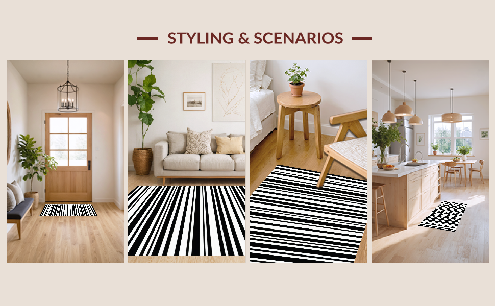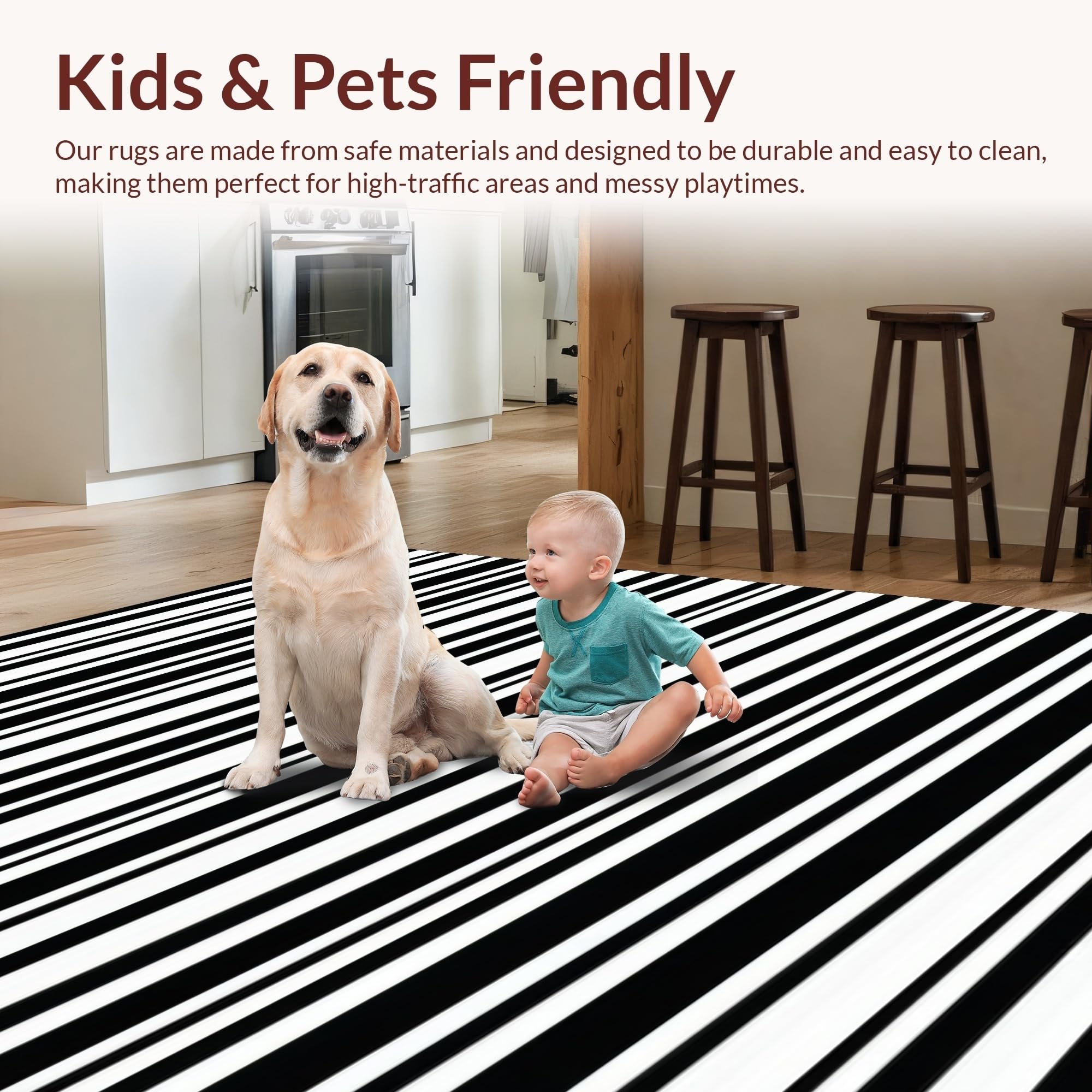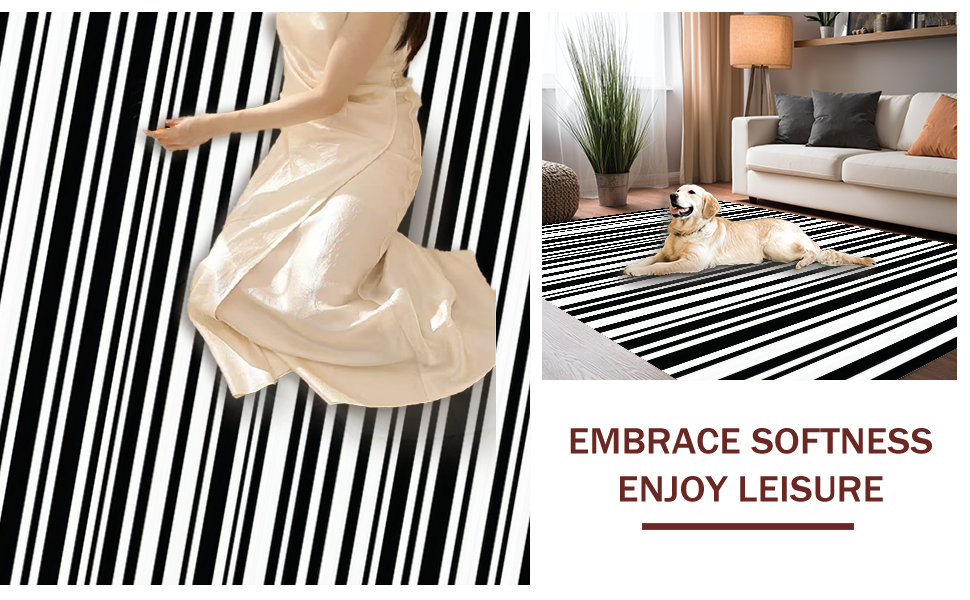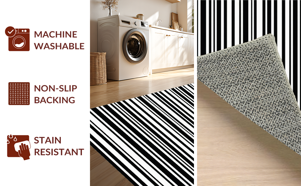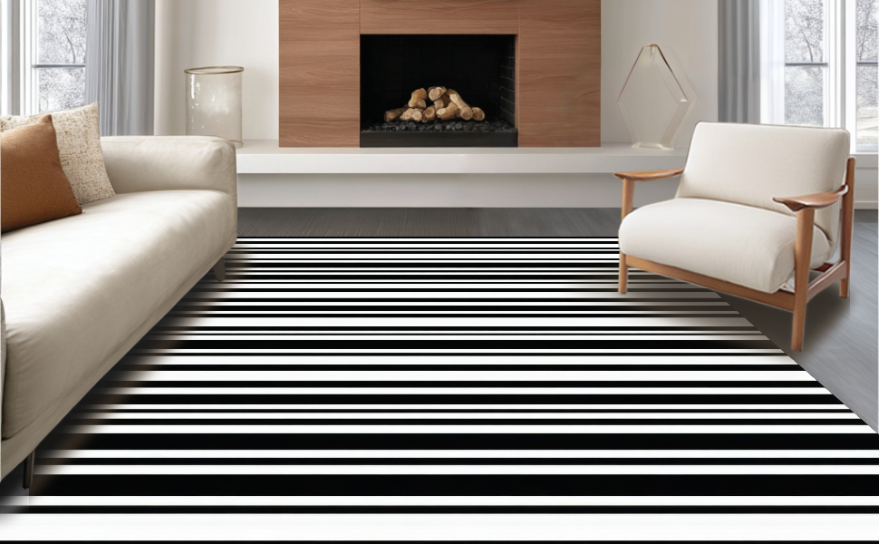 Ultra Soft Area Rug, Non Slip, Stain Resistant, Washable Area Rugs for Living Room, Bedroom, Chic Black and White Patterned Mat(Black) Overview: