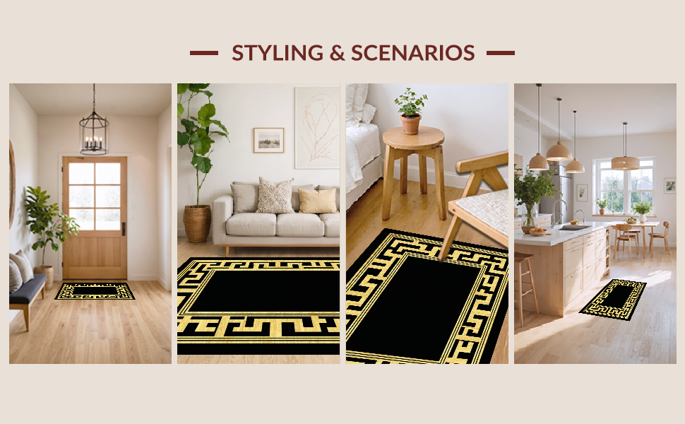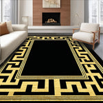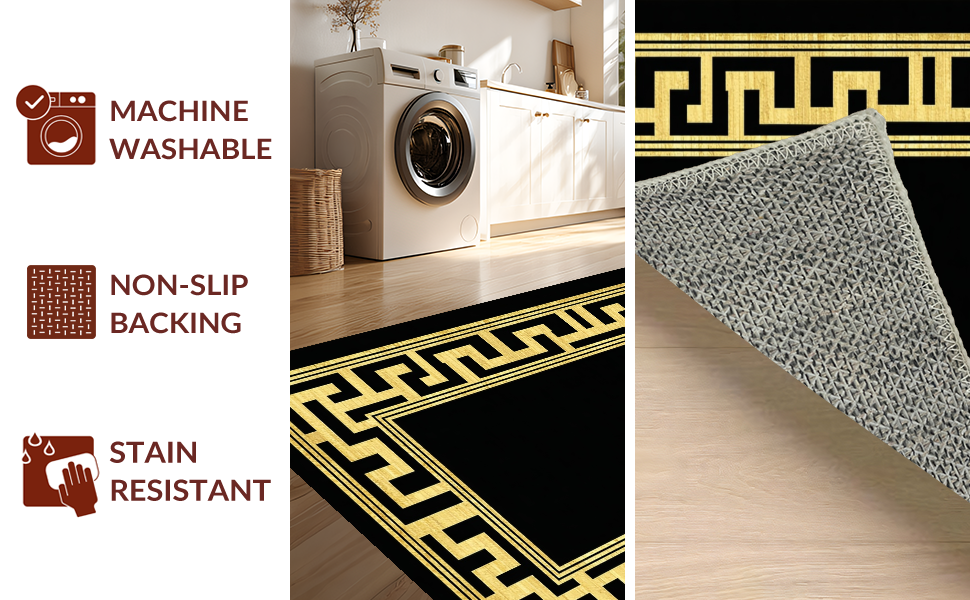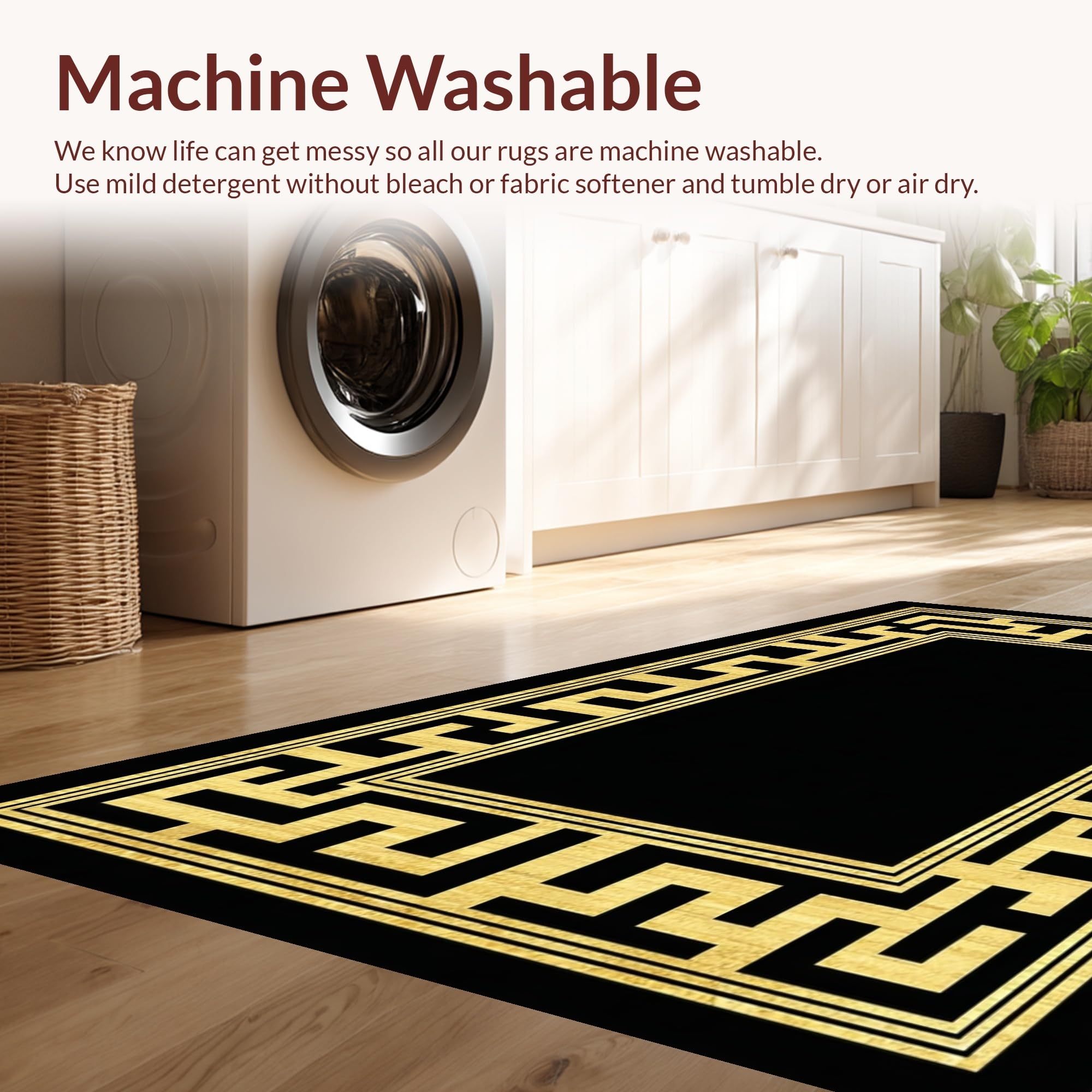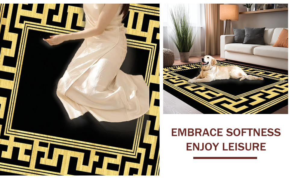 Ultra Soft Area Rug, Non Slip, Stain Resistant, Washable Area Rugs for Living Room, Bedroom, Chic Black Gold Geometric Flair(Black) Overview: