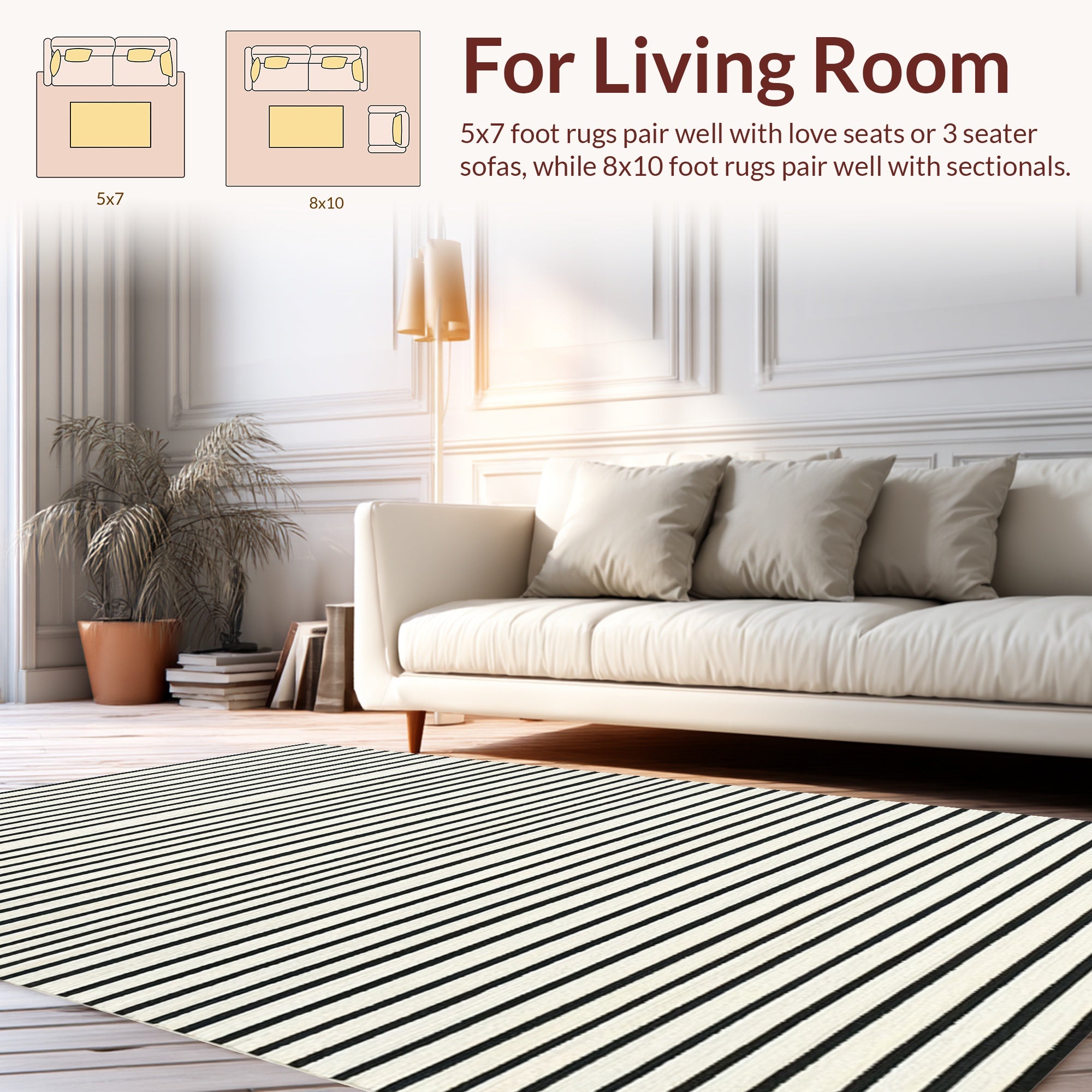 Ultra Soft Area Rug, Non Slip, Stain Resistant, Washable Area Rugs for Living Room, Bedroom, Chic Black White Striped Area Rug for Stylish Entryways and Patios(Black) Overview: