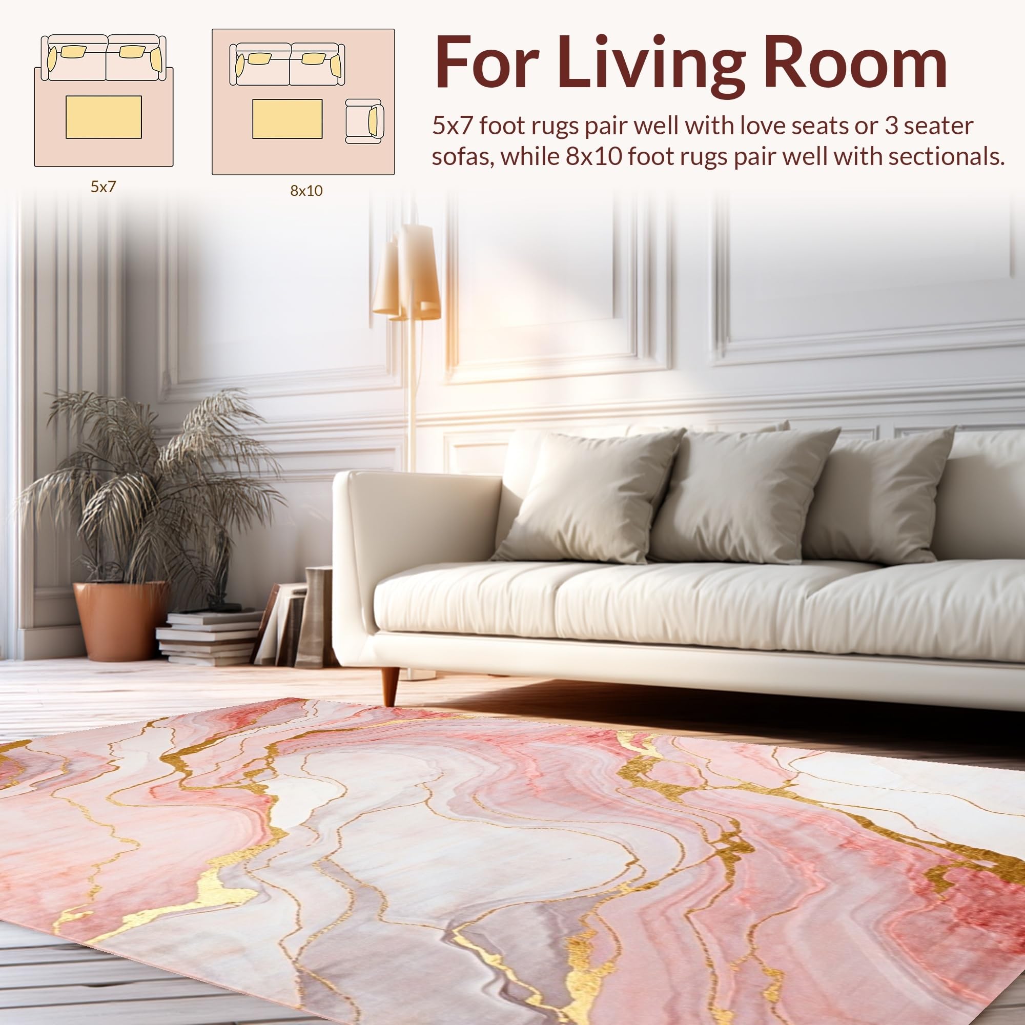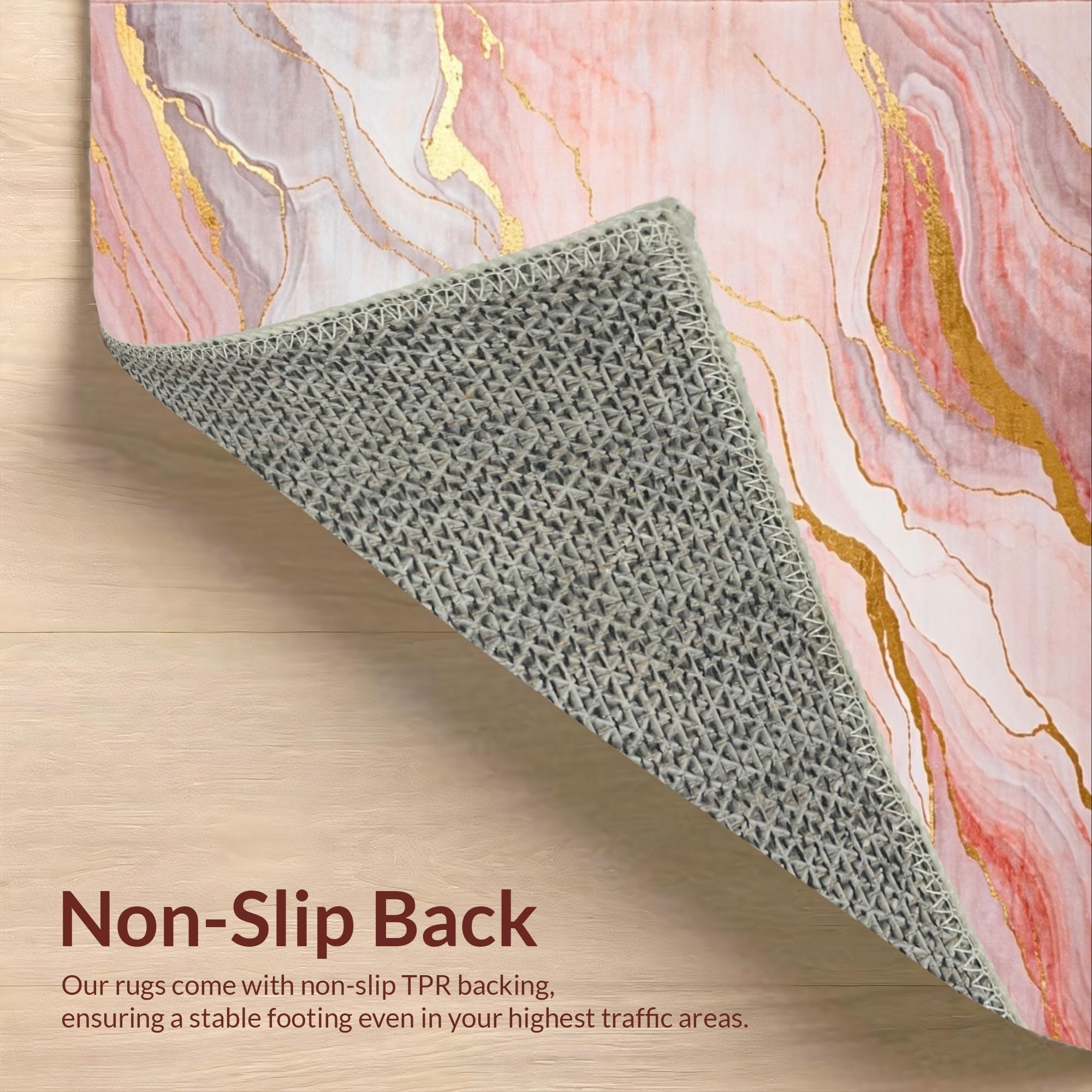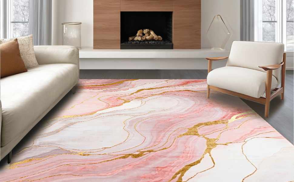 Ultra Soft Area Rug, Non Slip, Stain Resistant, Washable Area Rugs for Living Room, Bedroom, Chic Blush Marble Aesthetic(Pink) Overview: