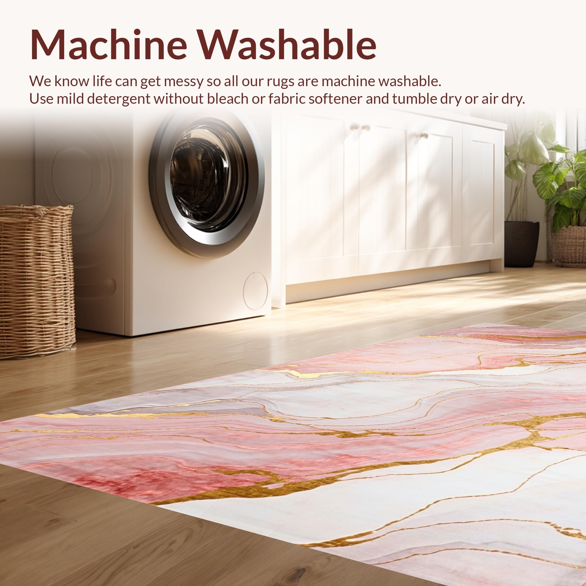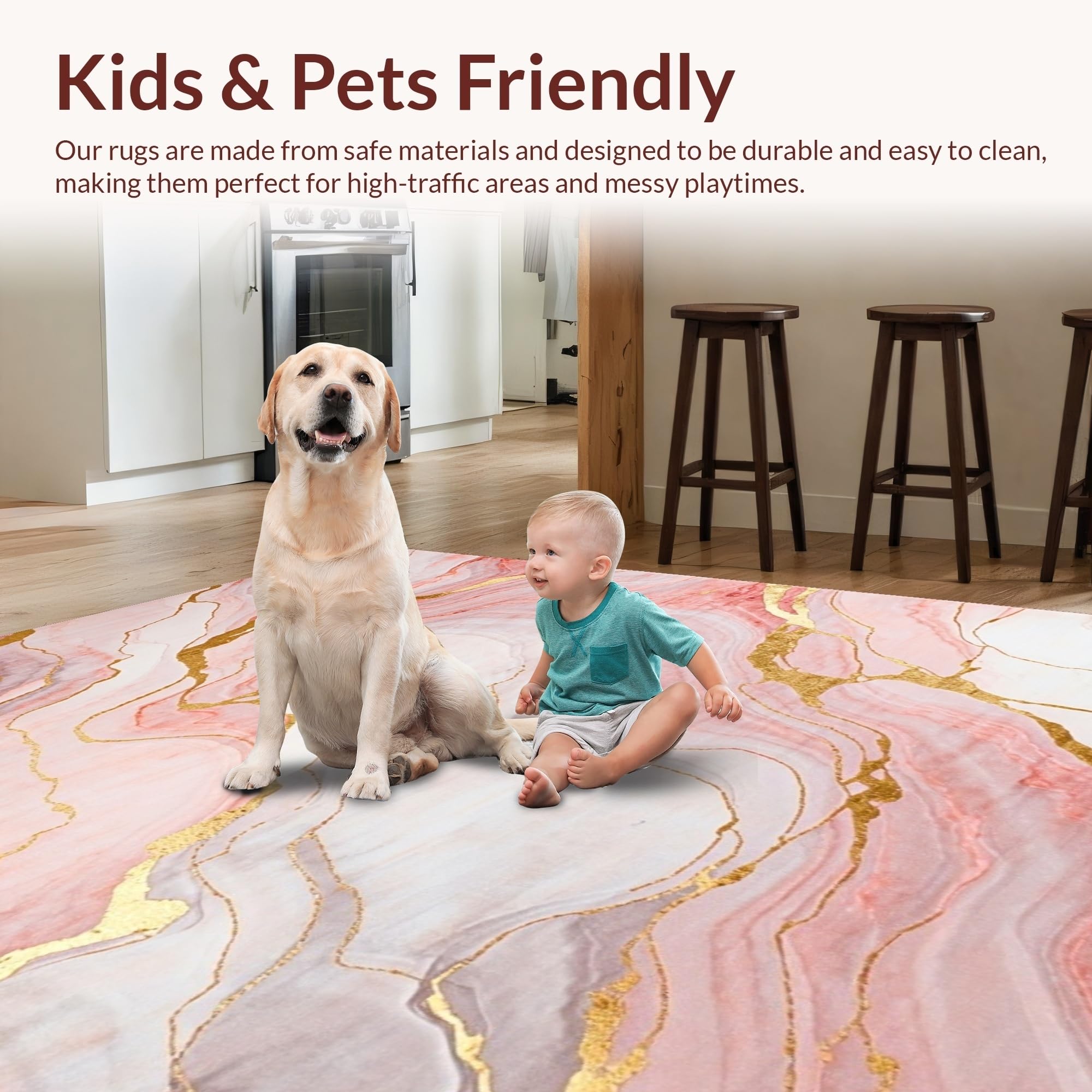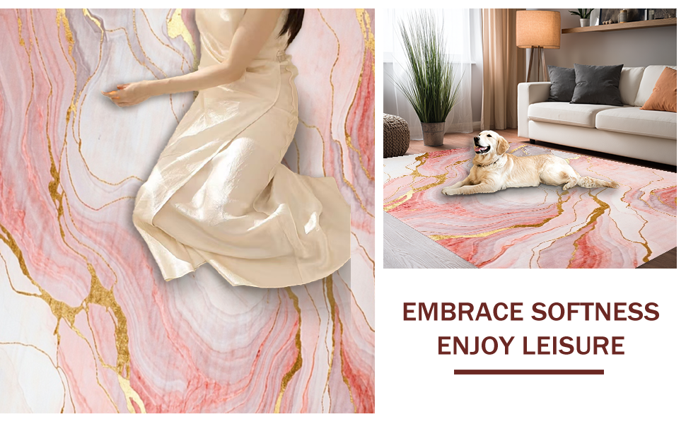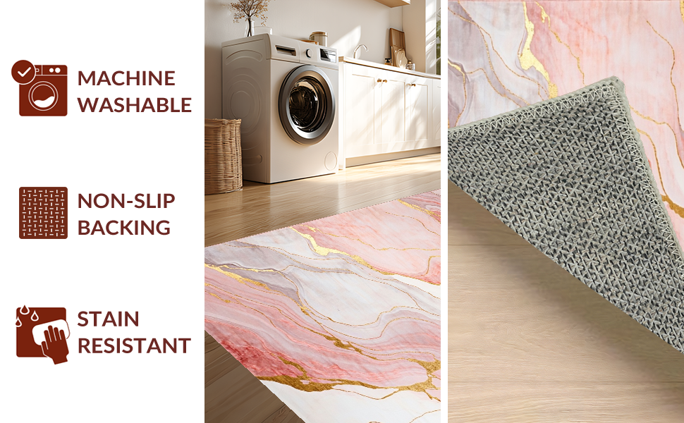 Ultra Soft Area Rug, Non Slip, Stain Resistant, Washable Area Rugs for Living Room, Bedroom, Chic Blush Marble Aesthetic(Pink) Overview: