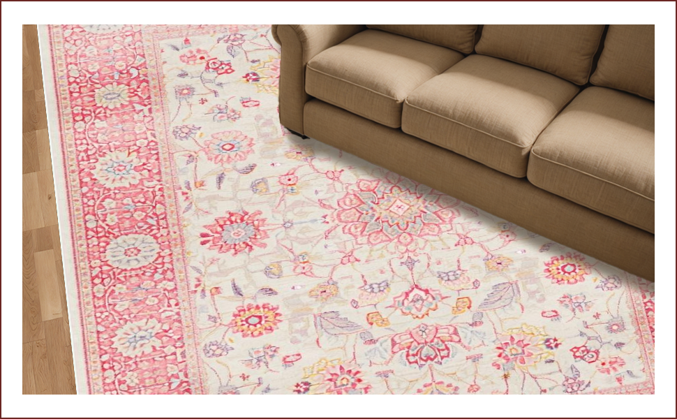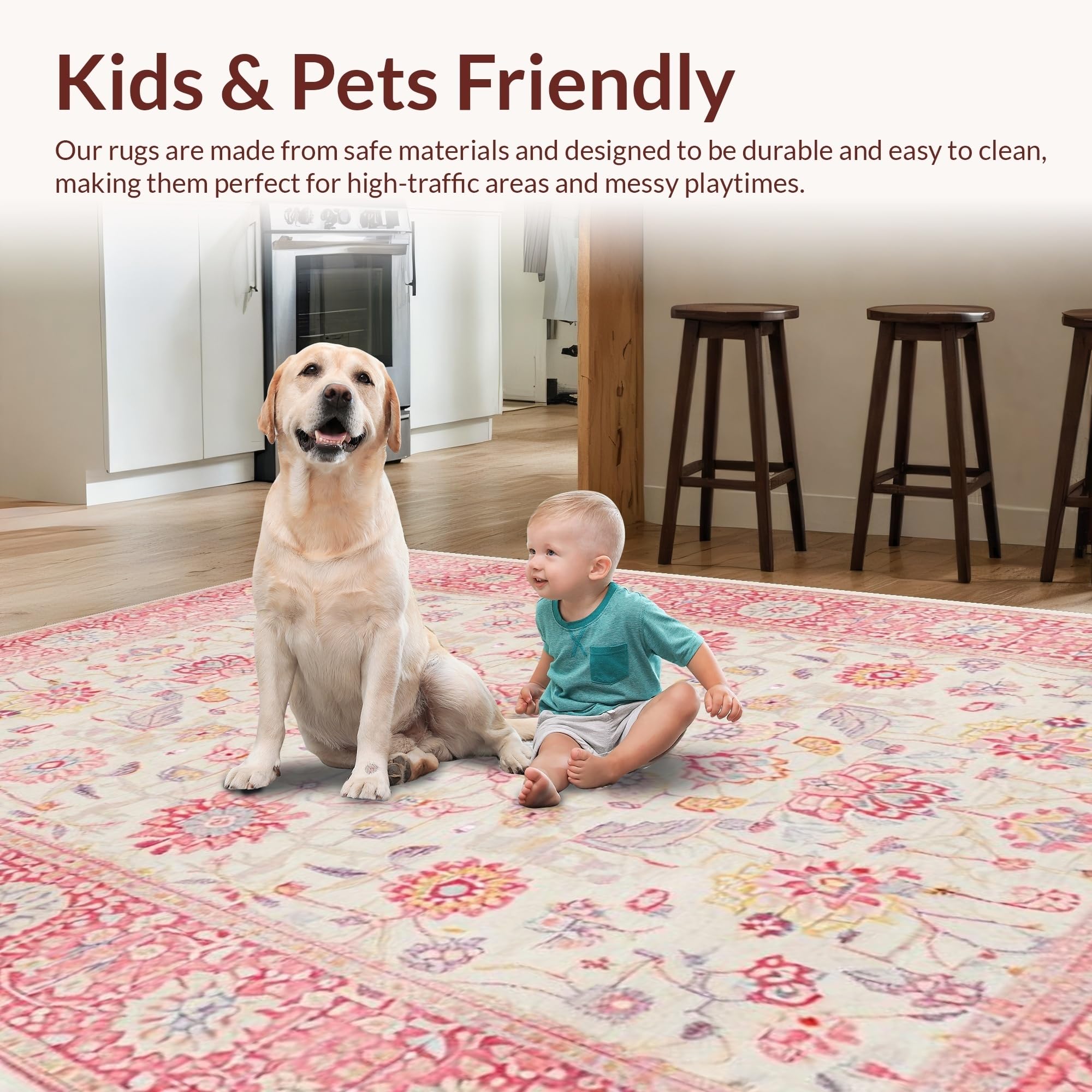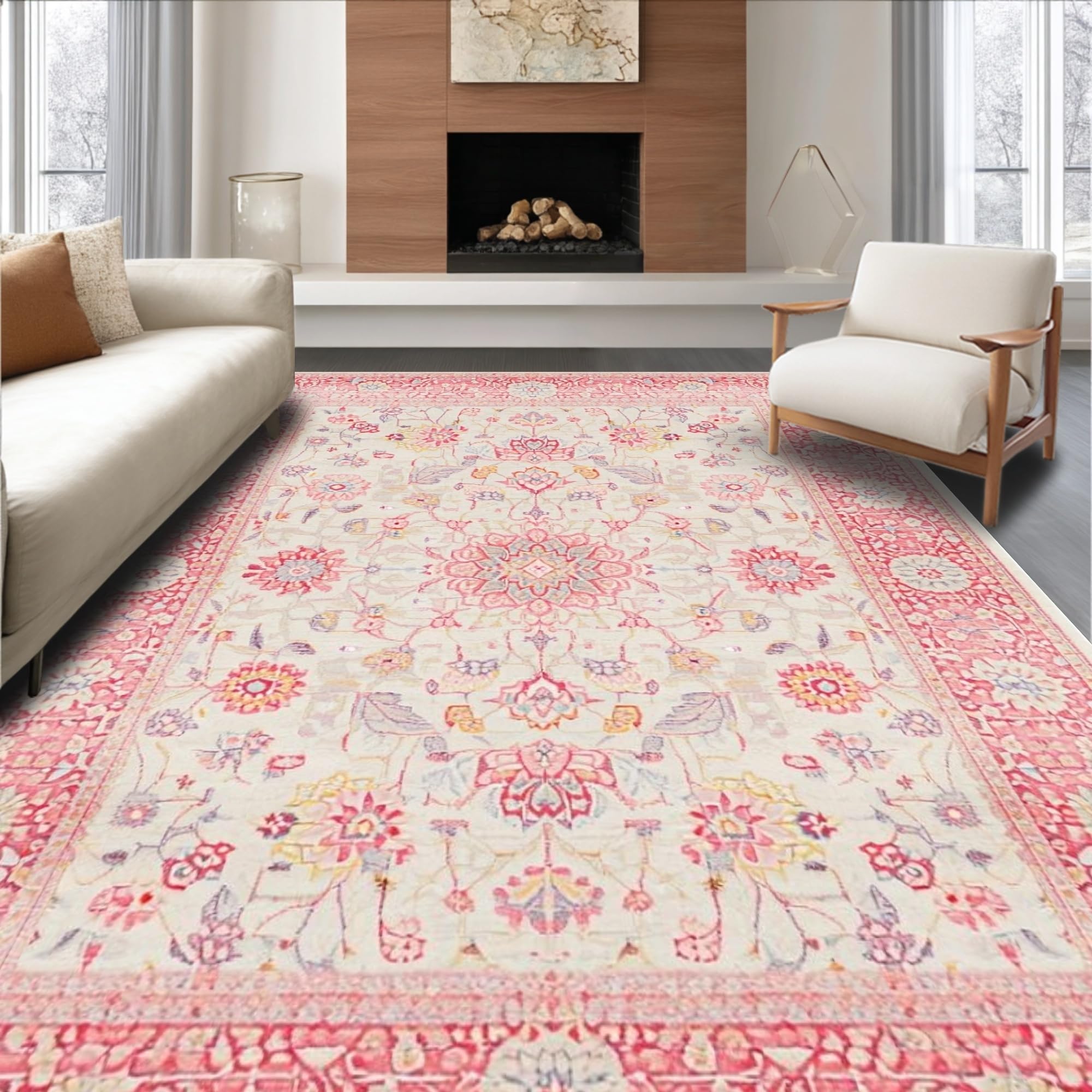 Ultra Soft Area Rug, Non Slip, Stain Resistant, Washable Area Rugs for Living Room, Bedroom, Chic Blush Pink Floral Motif(Pink) Overview: