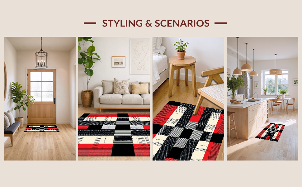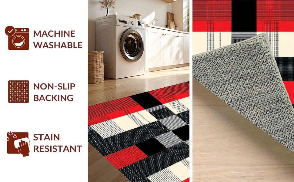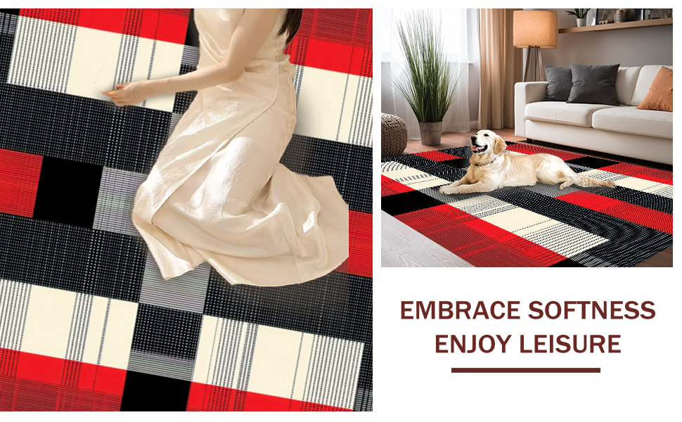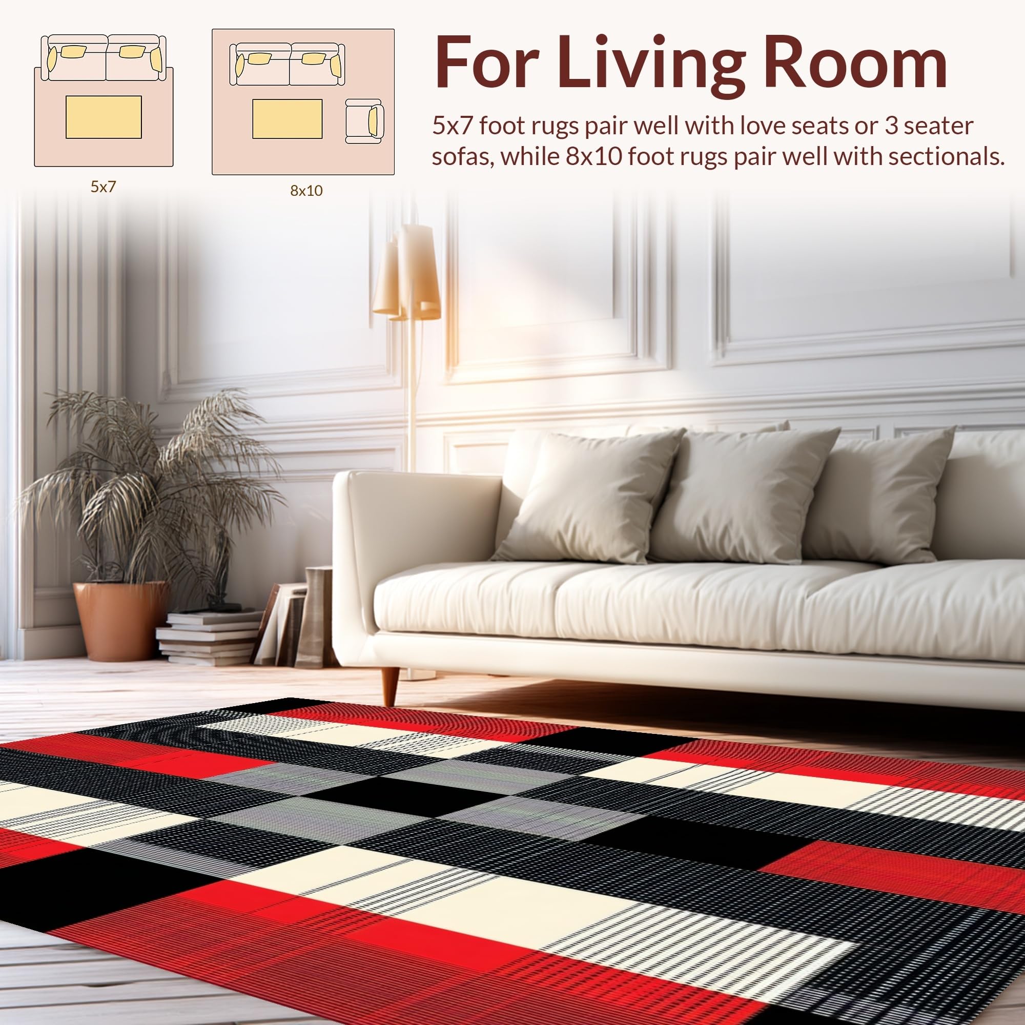 Ultra Soft Area Rug, Non Slip, Stain Resistant, Washable Area Rugs for Living Room, Bedroom, Chic Bold Checkerboard Aesthetic(Red) Overview: