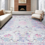 Ultra Soft Area Rug, Non Slip, Stain Resistant, Washable Area Rugs for Living Room, Bedroom, Chic Bow Motif Rug with Painterly Florals and Baby Blue Artistic Geometry(Beige) Overview: