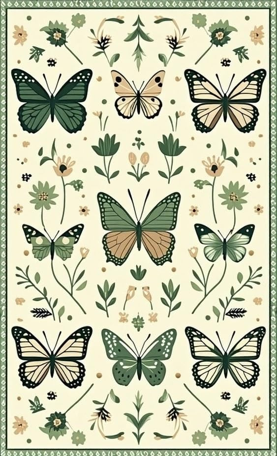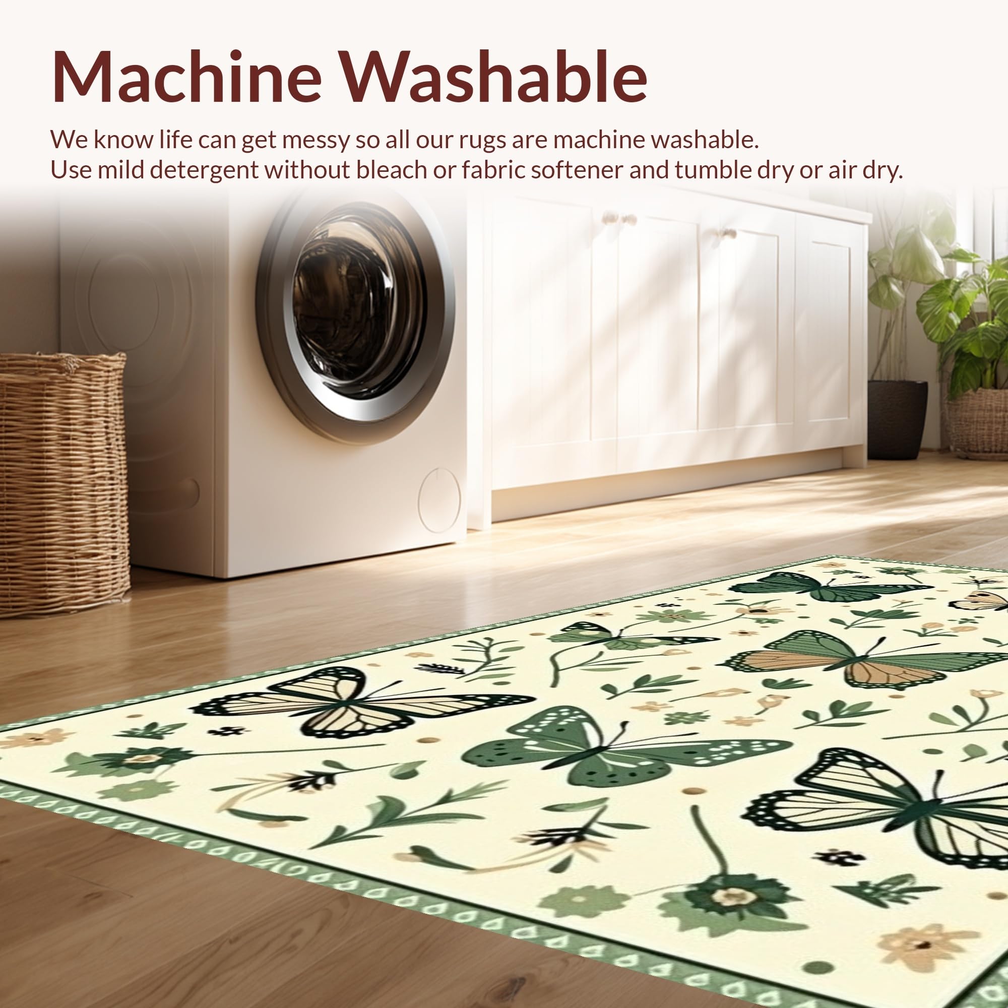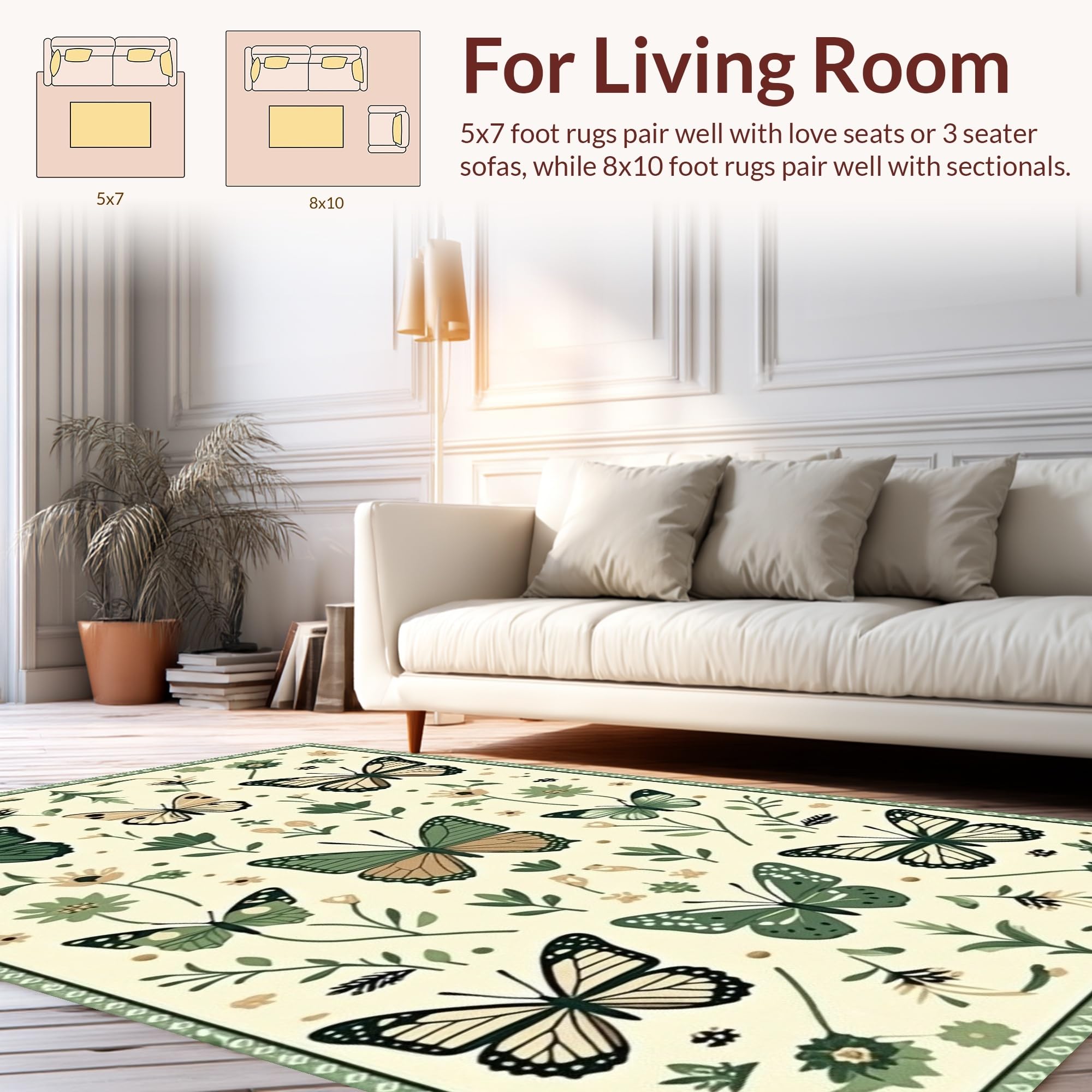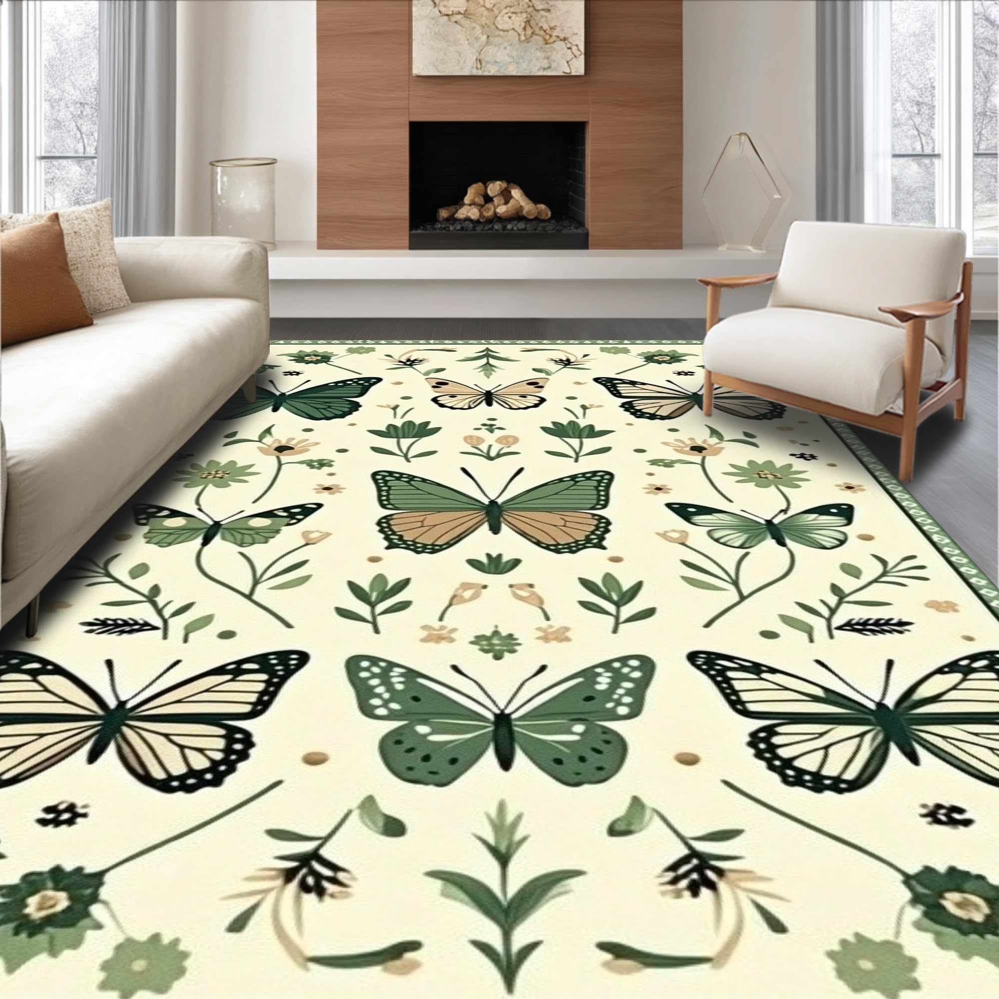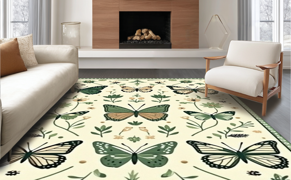 Ultra Soft Area Rug, Non Slip, Stain Resistant, Washable Area Rugs for Living Room, Bedroom, Chic Butterfly Artful Arrangement(Ivory) Overview: