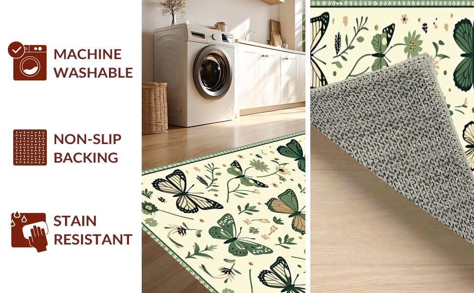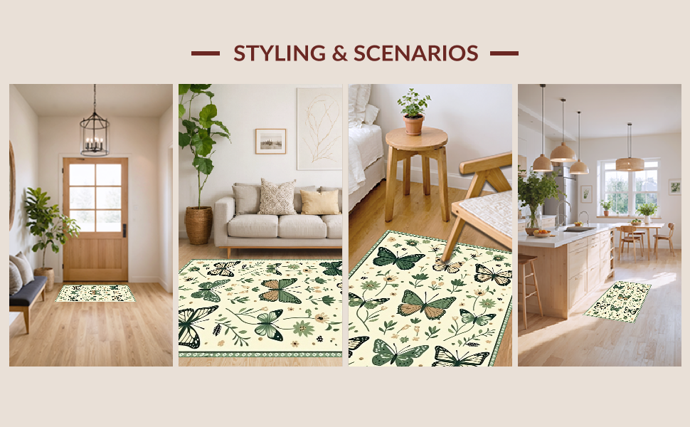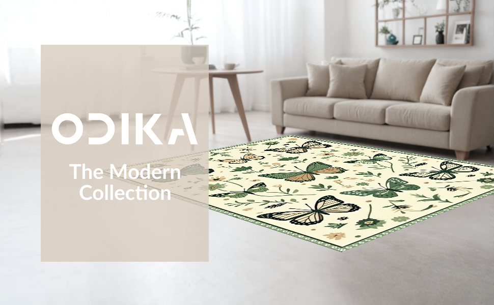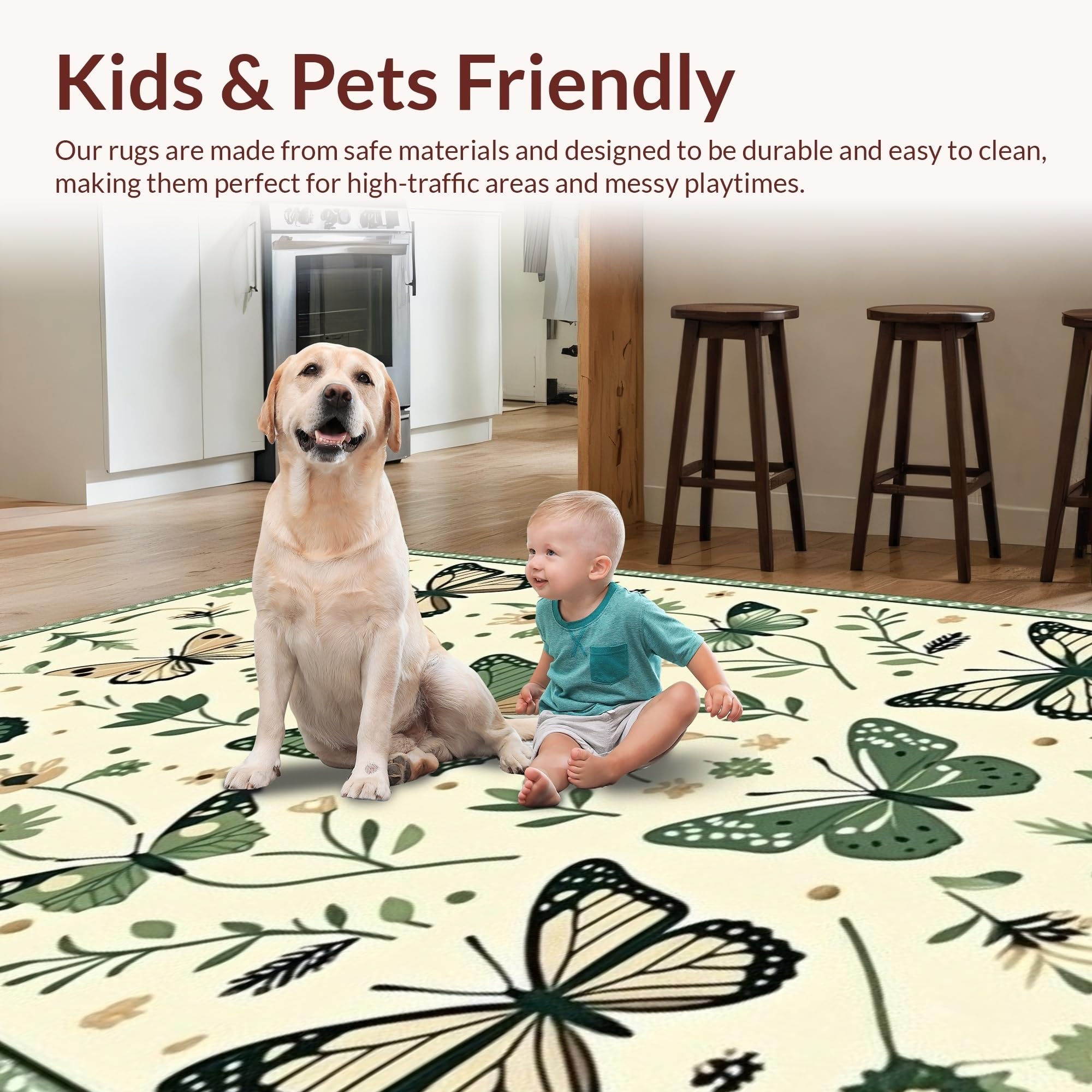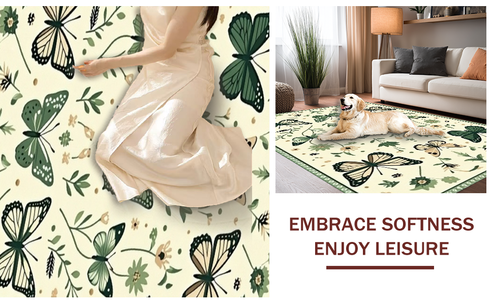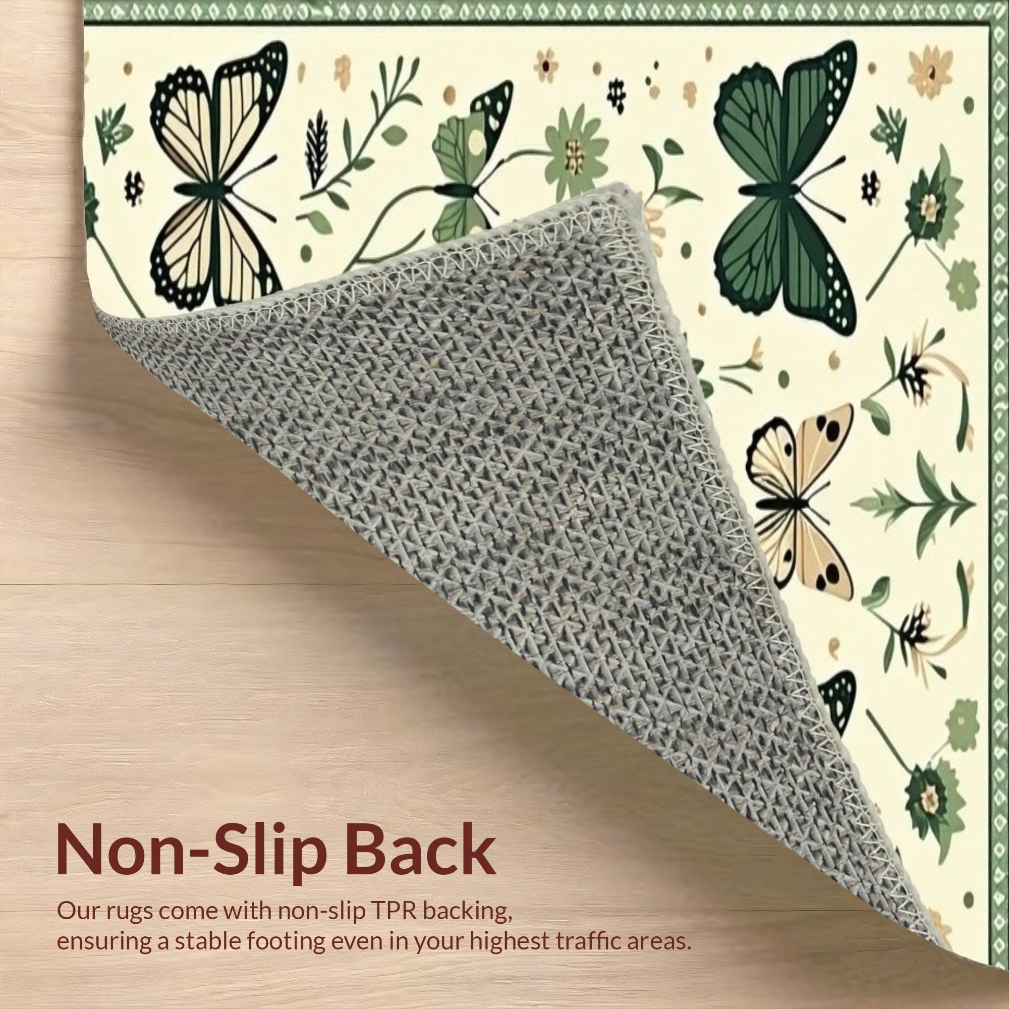 Ultra Soft Area Rug, Non Slip, Stain Resistant, Washable Area Rugs for Living Room, Bedroom, Chic Butterfly Artful Arrangement(Ivory) Overview: