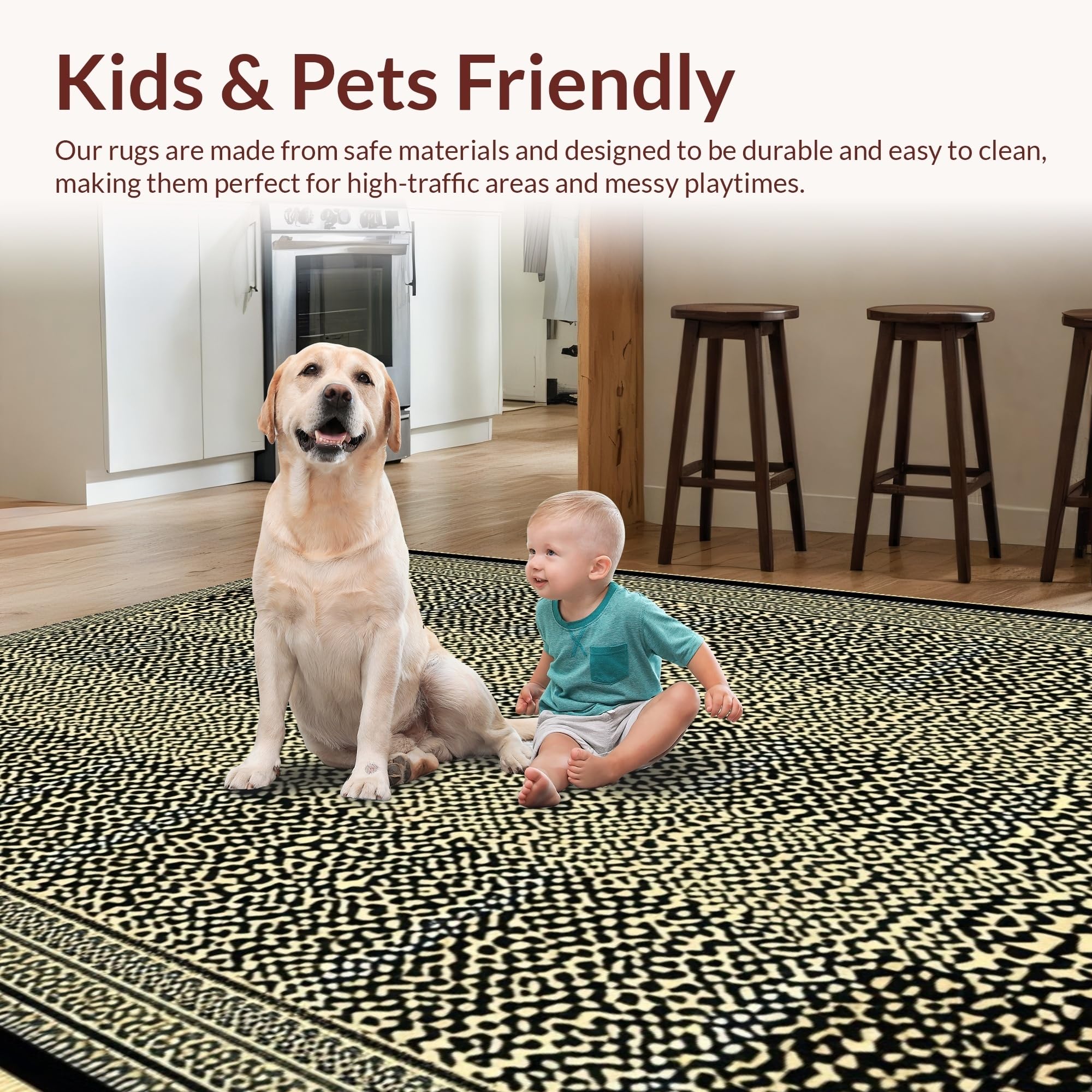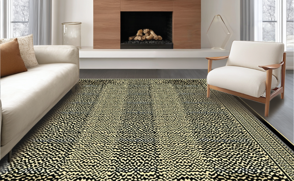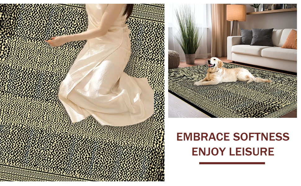 Ultra Soft Area Rug, Non Slip, Stain Resistant, Washable Area Rugs for Living Room, Bedroom, Chic Charcoal Cheetah Motif(Beige) Overview: