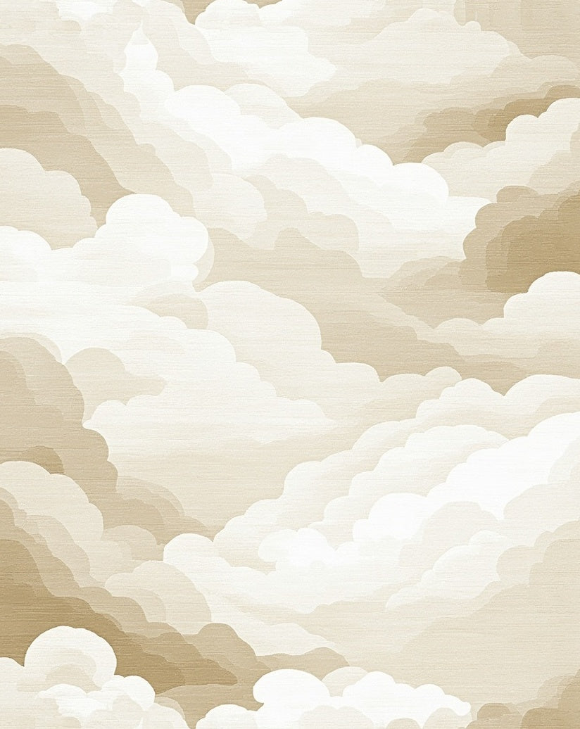 Chic Cloudscape for Nursery Dreamy Beige Area Decor(Beige)