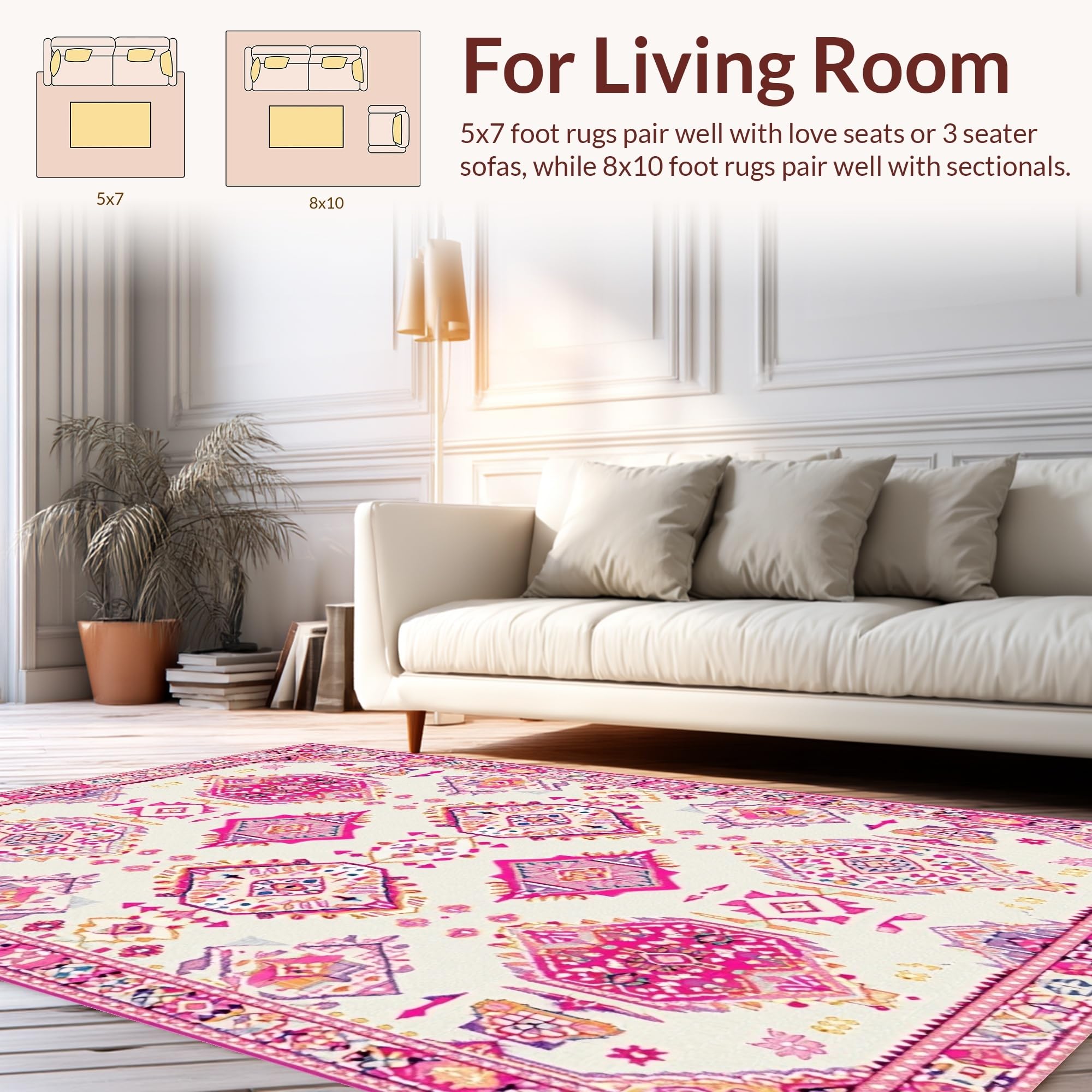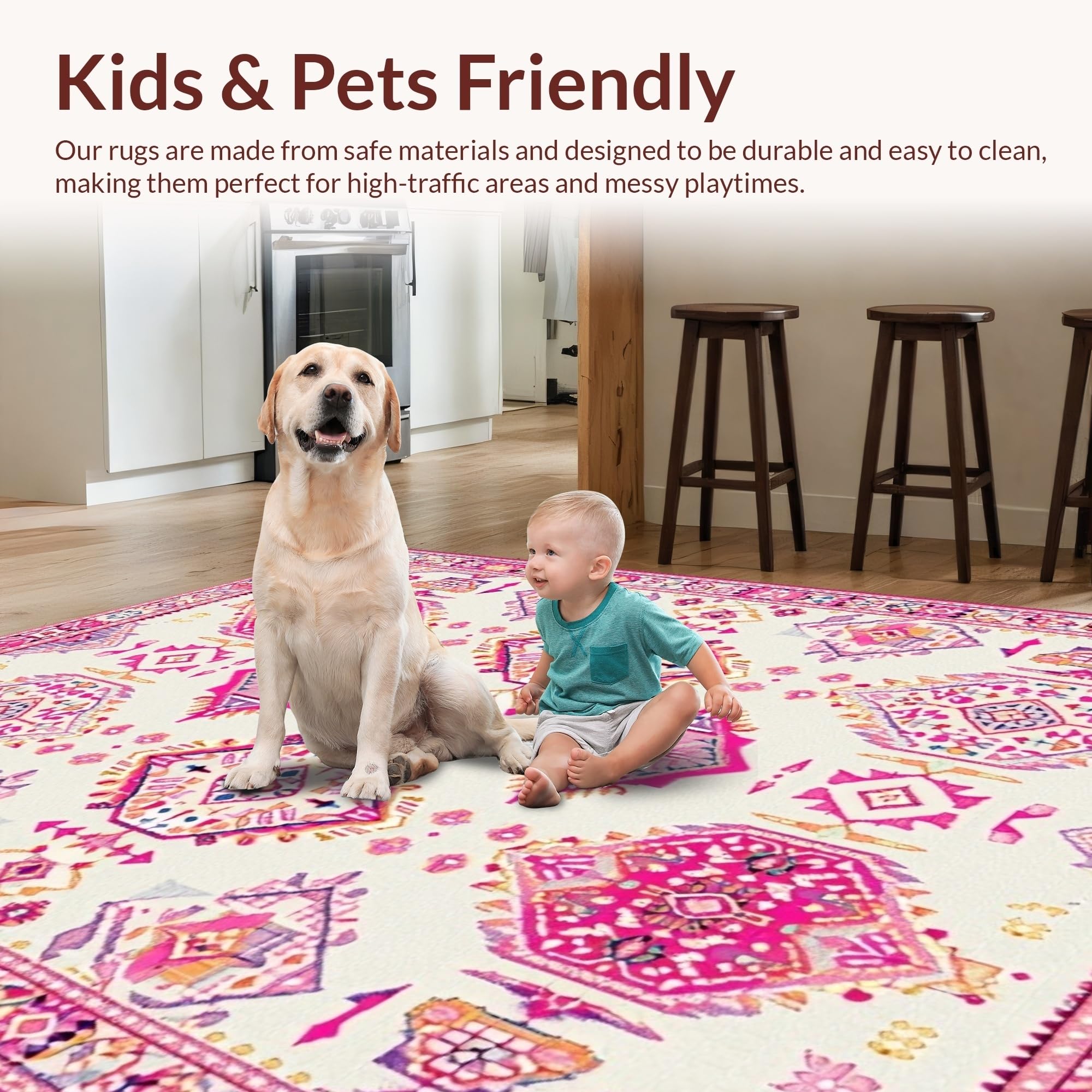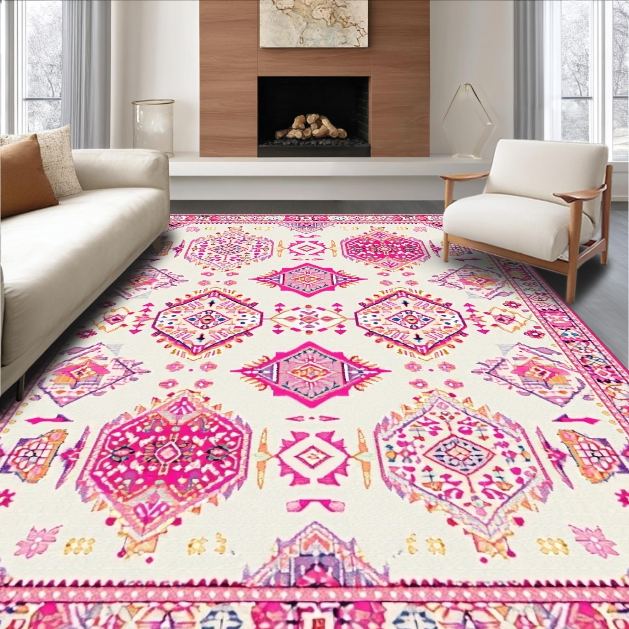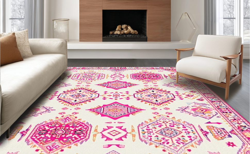 Ultra Soft Area Rug, Non Slip, Stain Resistant, Washable Area Rugs for Living Room, Bedroom, Chic Colorful Abstract Motif(White) Overview: