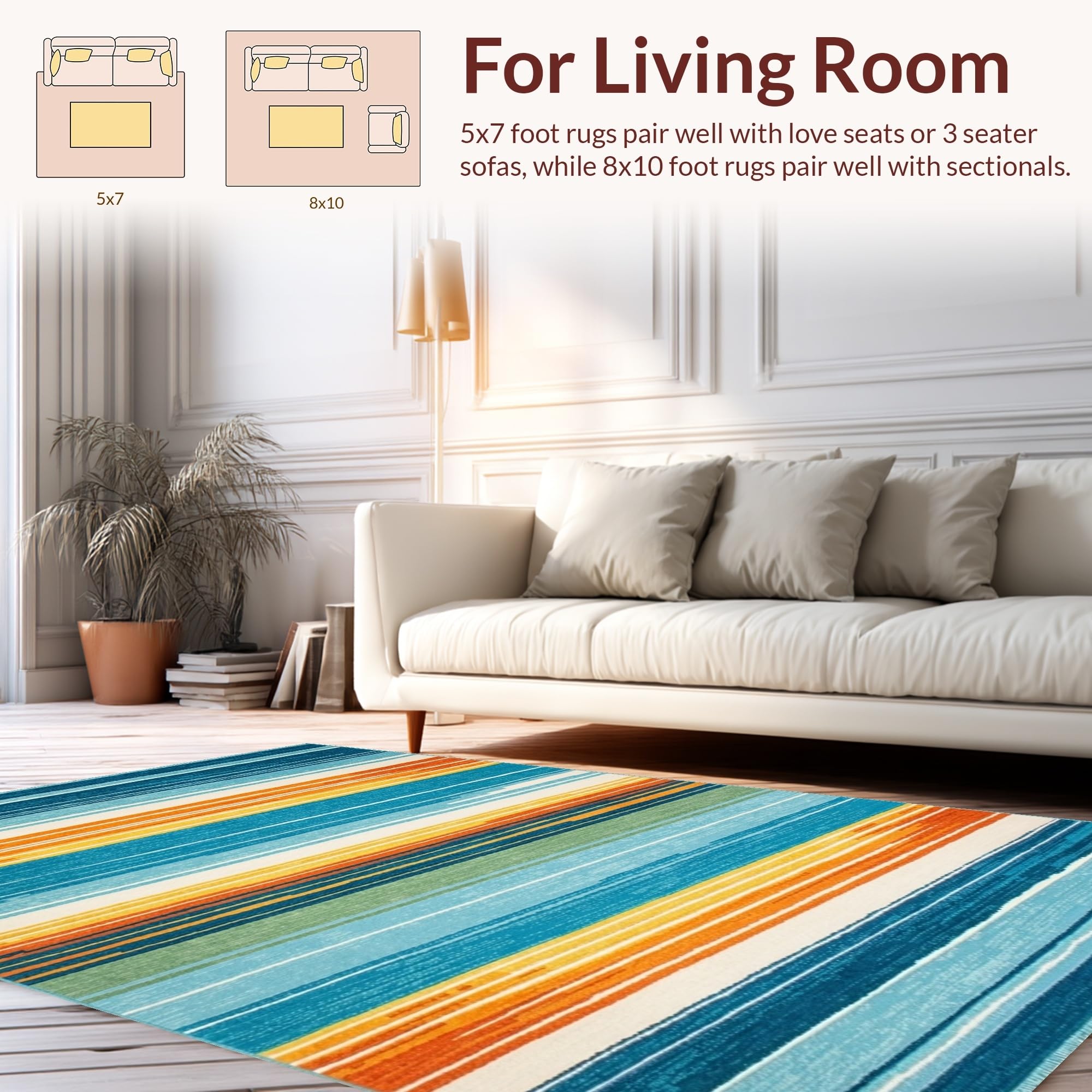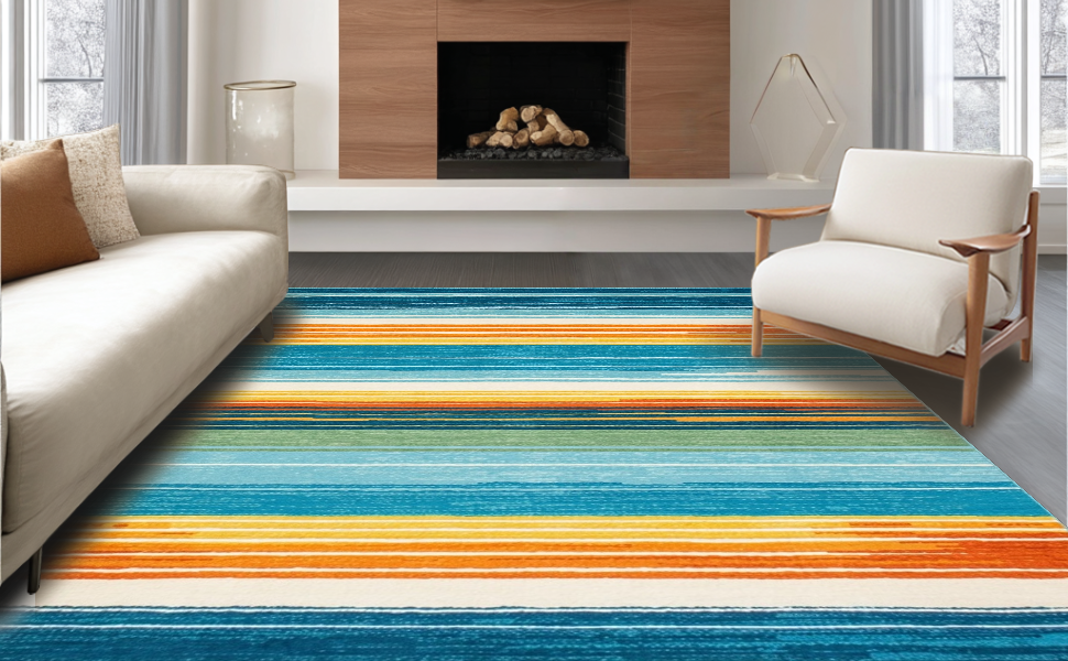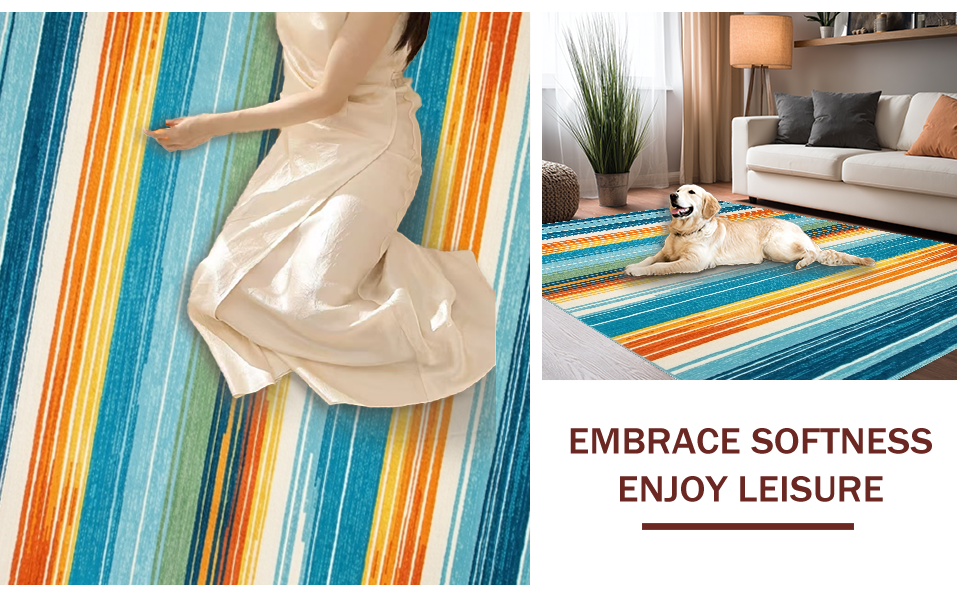 Ultra Soft Area Rug, Non Slip, Stain Resistant, Washable Area Rugs for Living Room, Bedroom, Chic Colorful Tiled Design(Blue) Overview:
