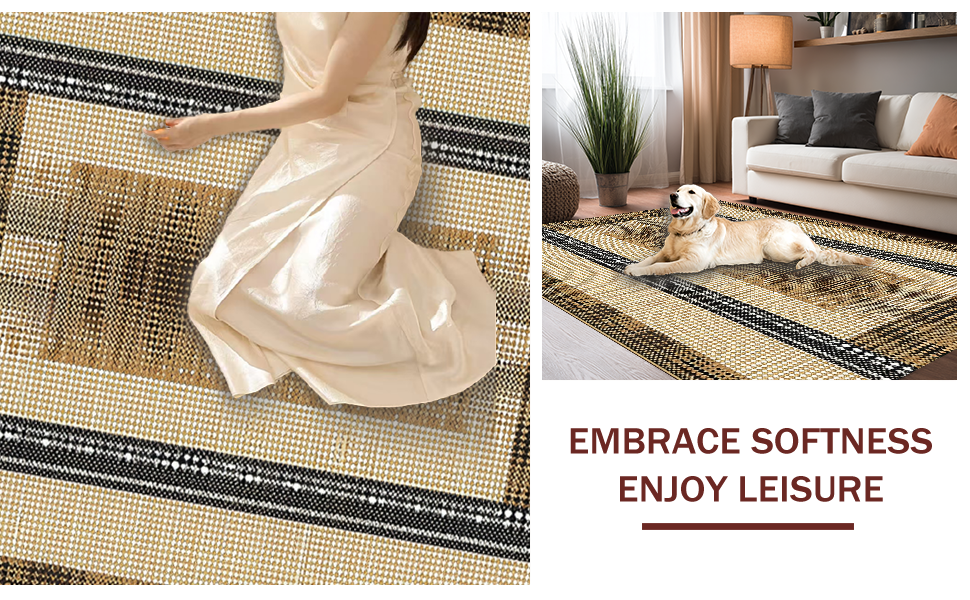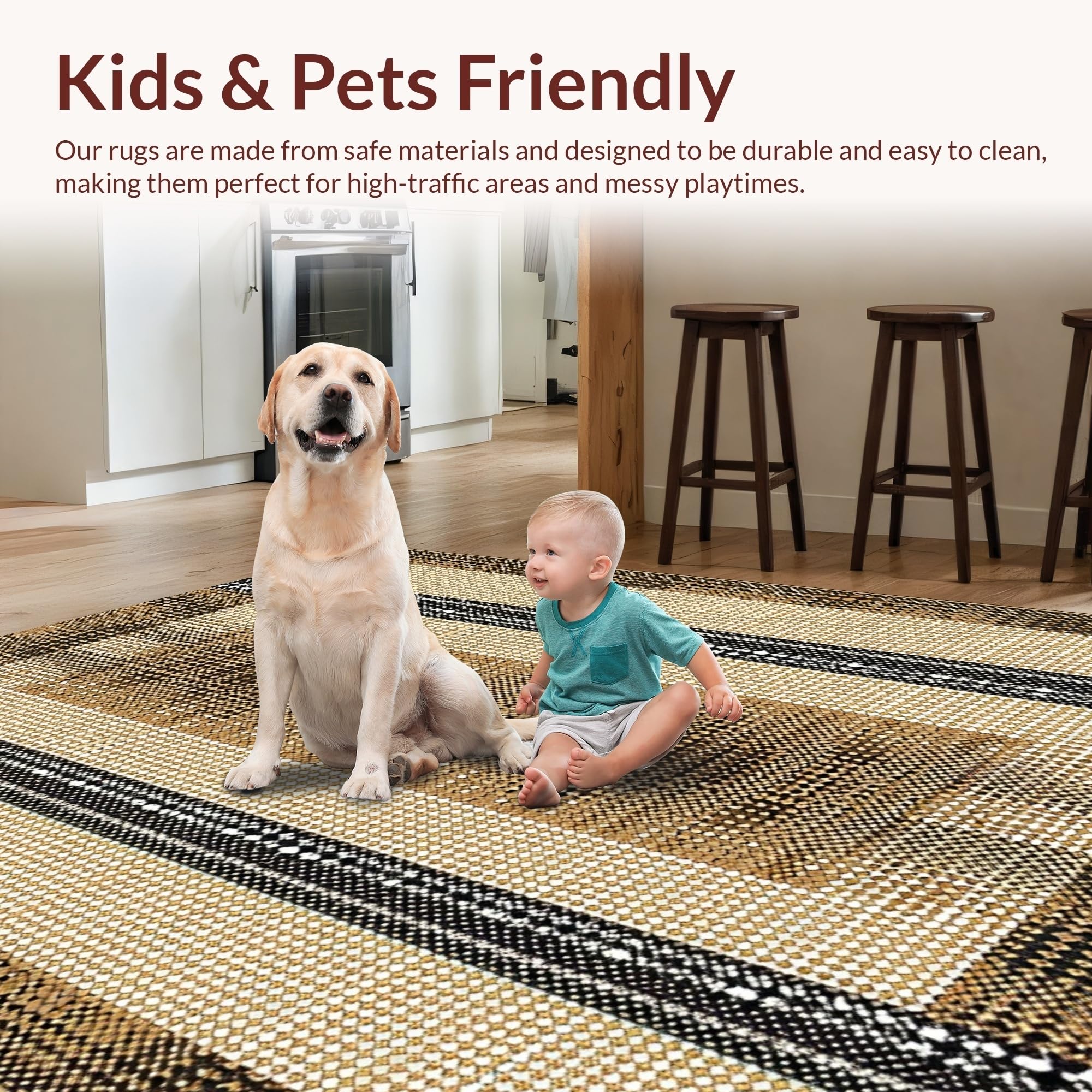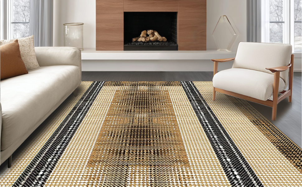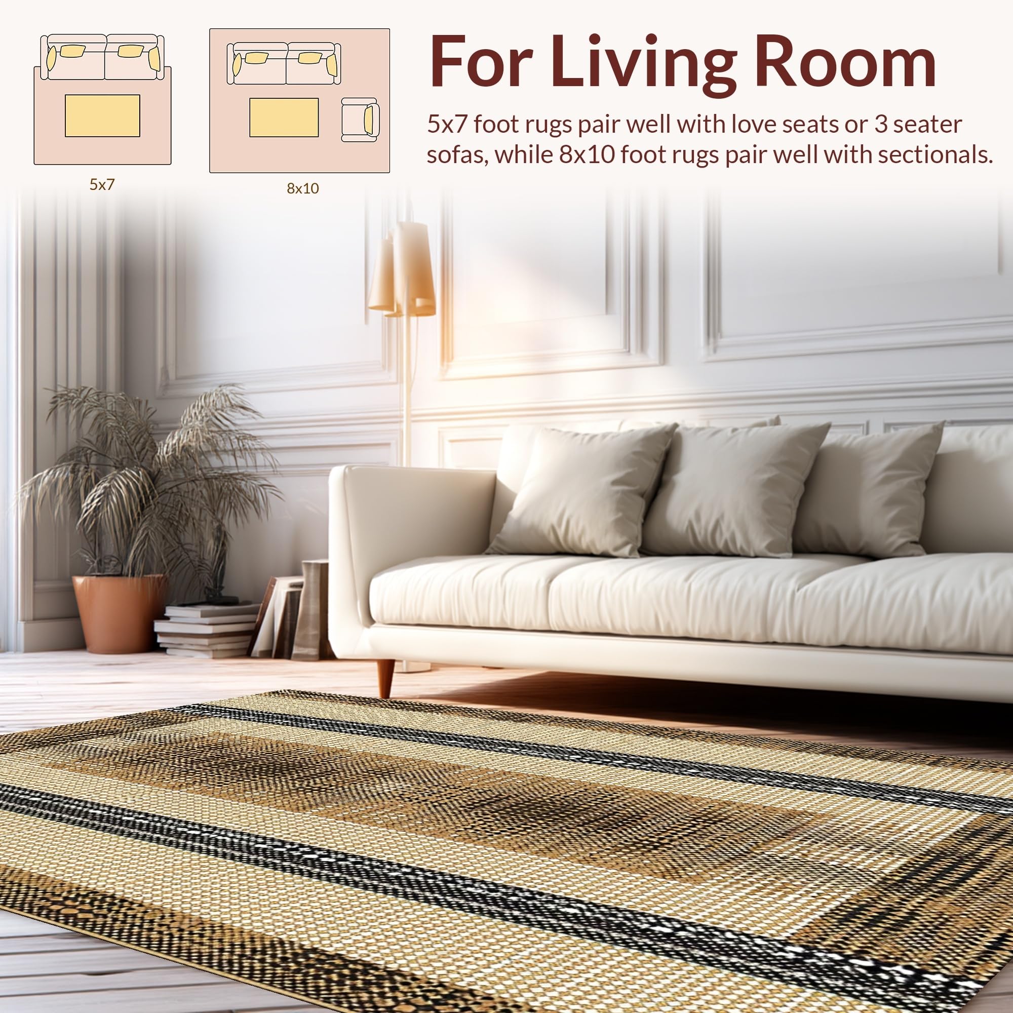 Ultra Soft Area Rug, Non Slip, Stain Resistant, Washable Area Rugs for Living Room, Bedroom, Chic Contemporary Brown and White(Beige) Overview: