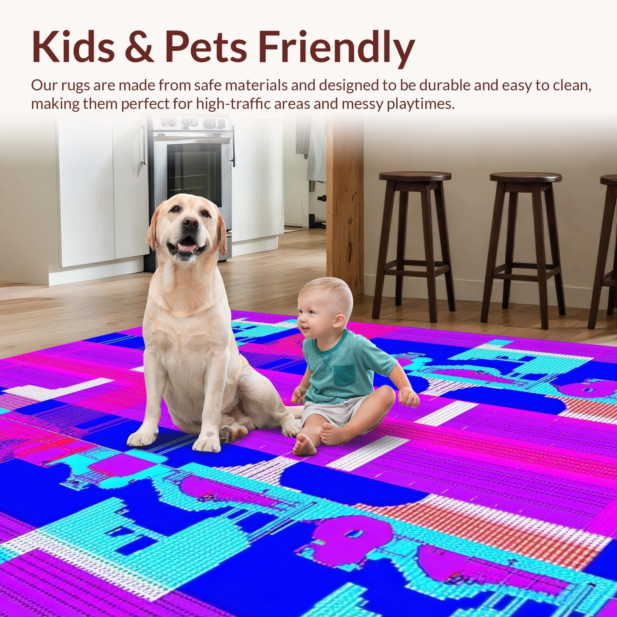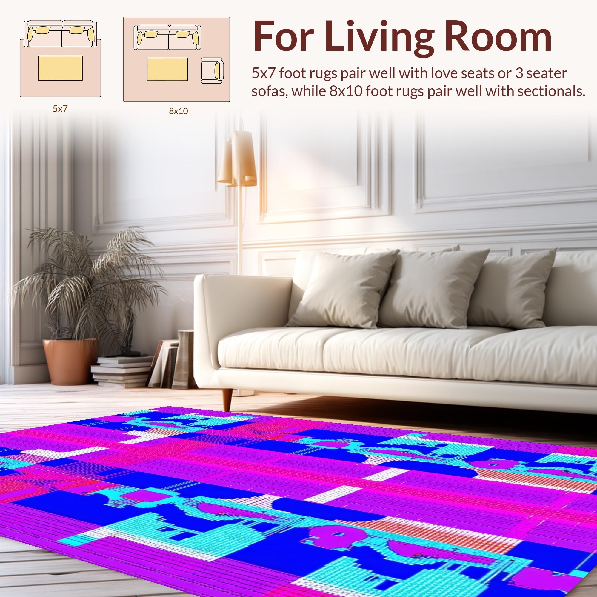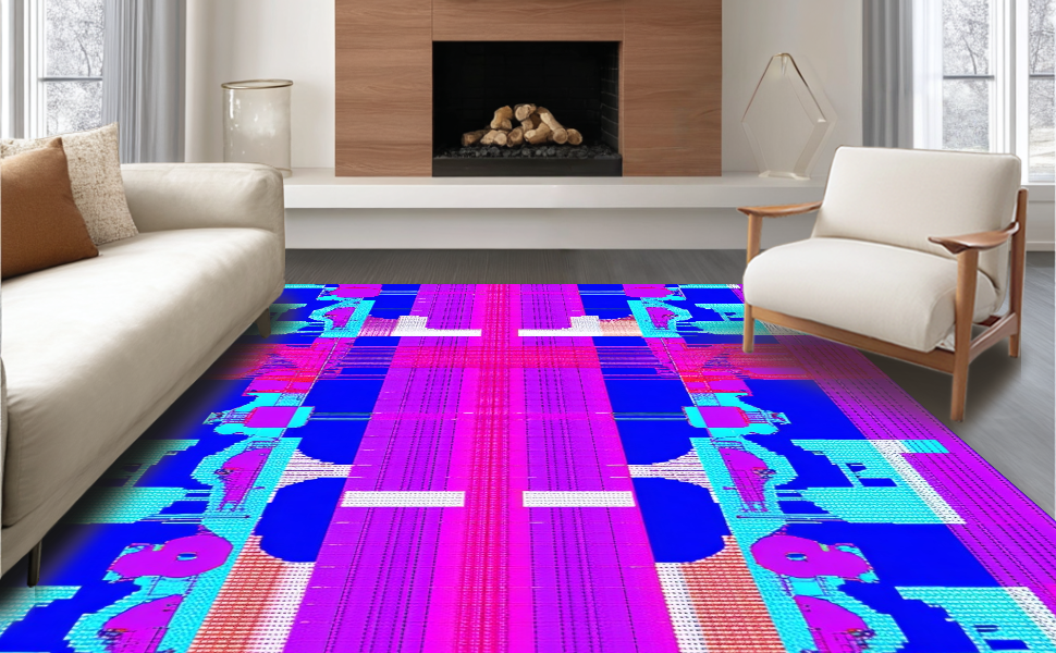 Ultra Soft Area Rug, Non Slip, Stain Resistant, Washable Area Rugs for Living Room, Bedroom, Chic Contemporary Electric Guitar Print(Blue) Overview:
