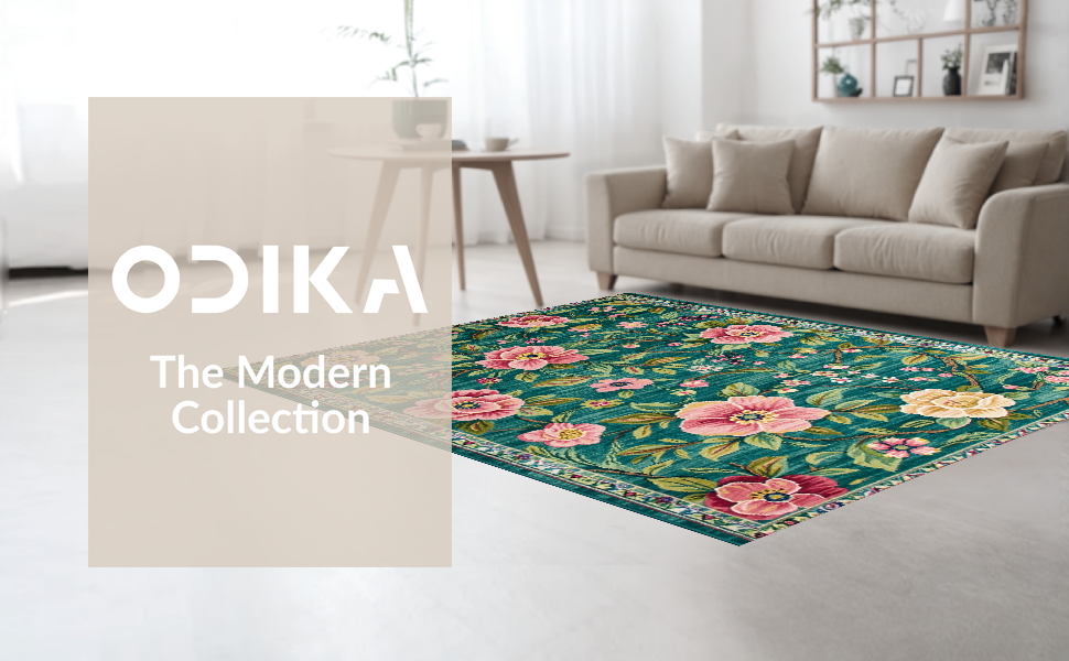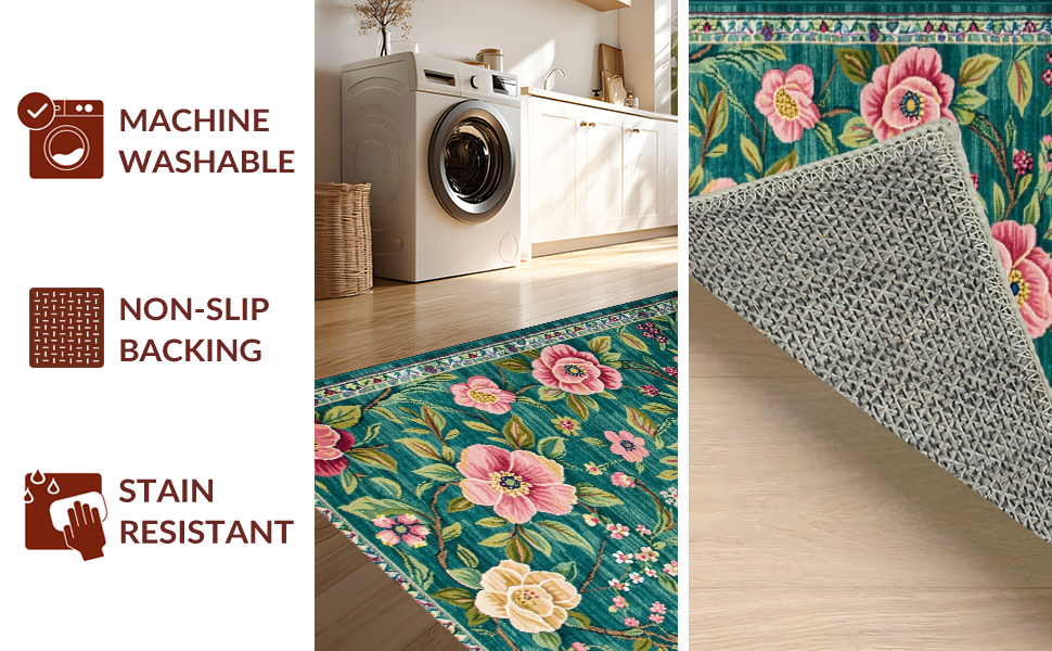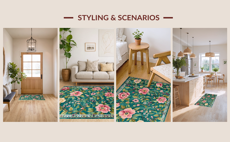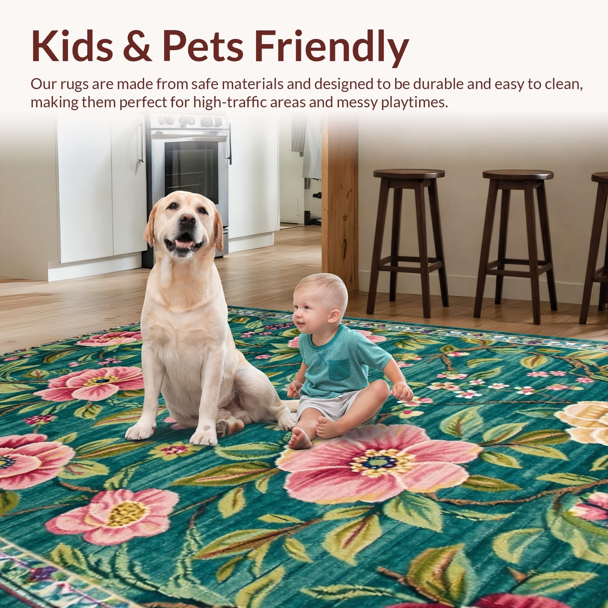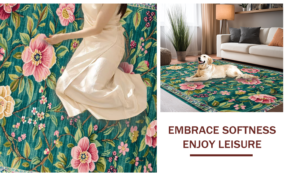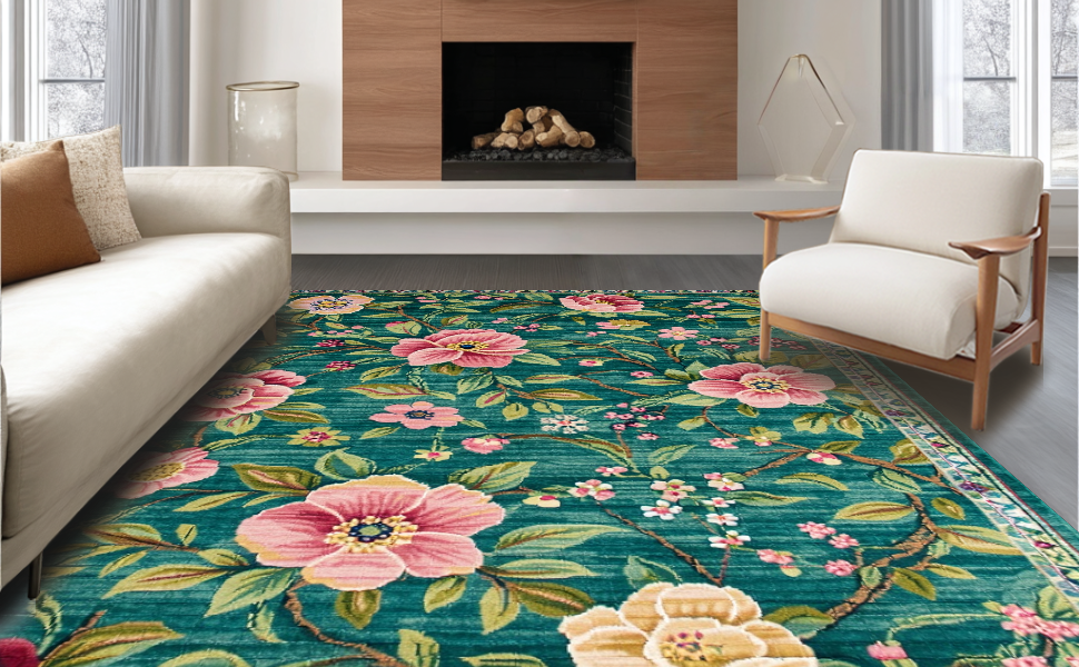 Ultra Soft Area Rug, Non Slip, Stain Resistant, Washable Area Rugs for Living Room, Bedroom, Chic Contemporary Floral Style(Green) Overview: