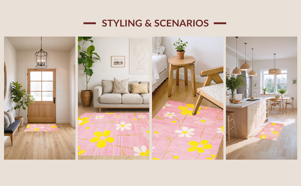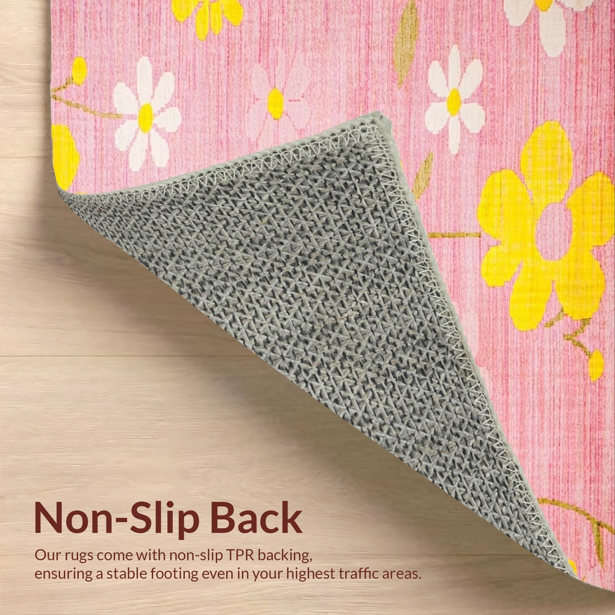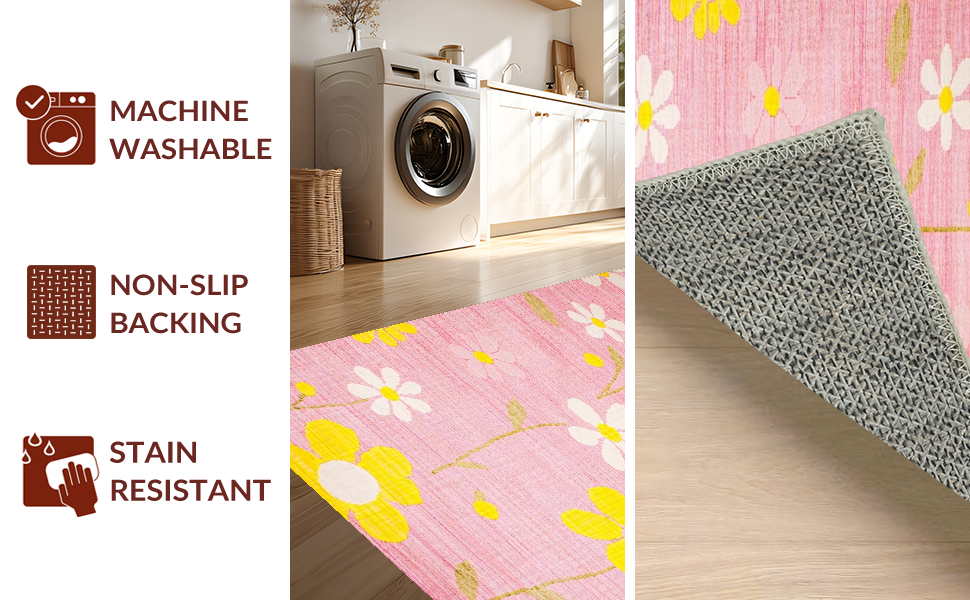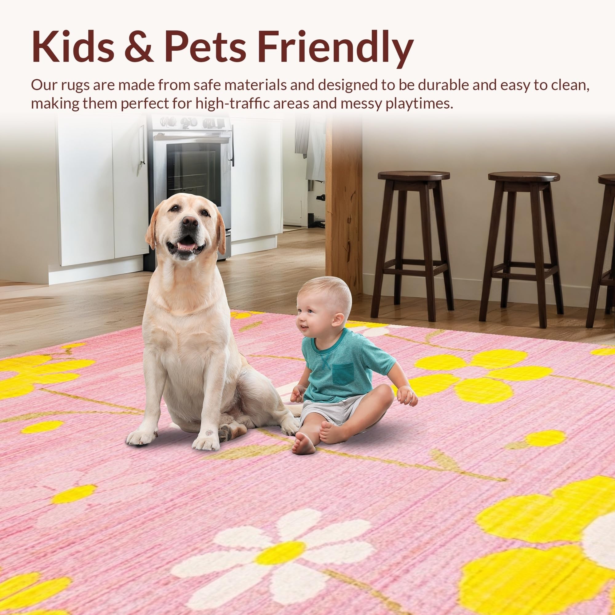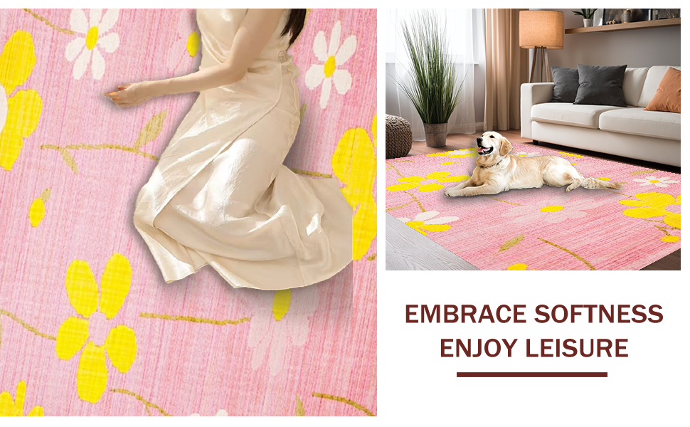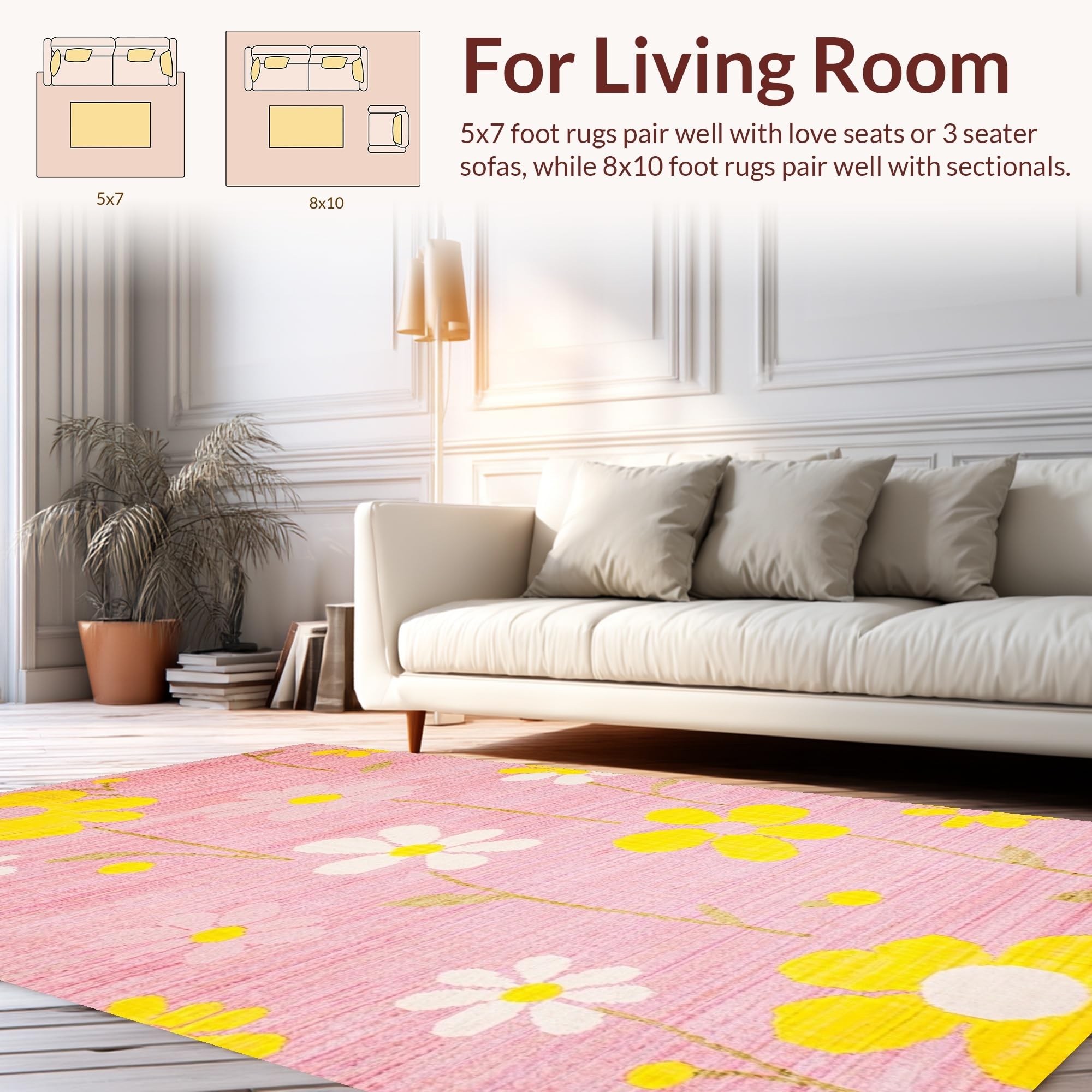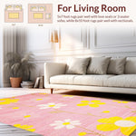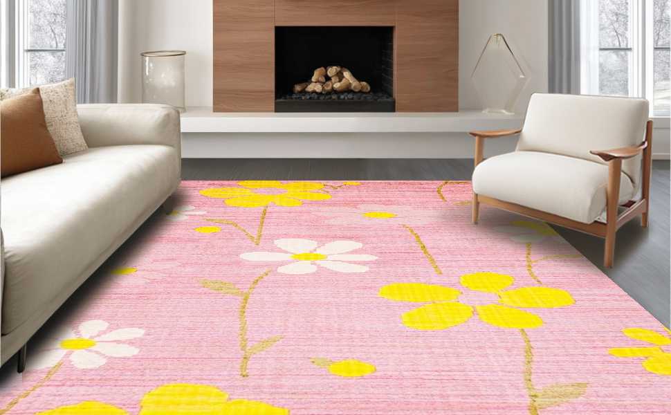 Ultra Soft Area Rug, Non Slip, Stain Resistant, Washable Area Rugs for Living Room, Bedroom, Chic Contemporary Flower Fusion(Pink) Overview: