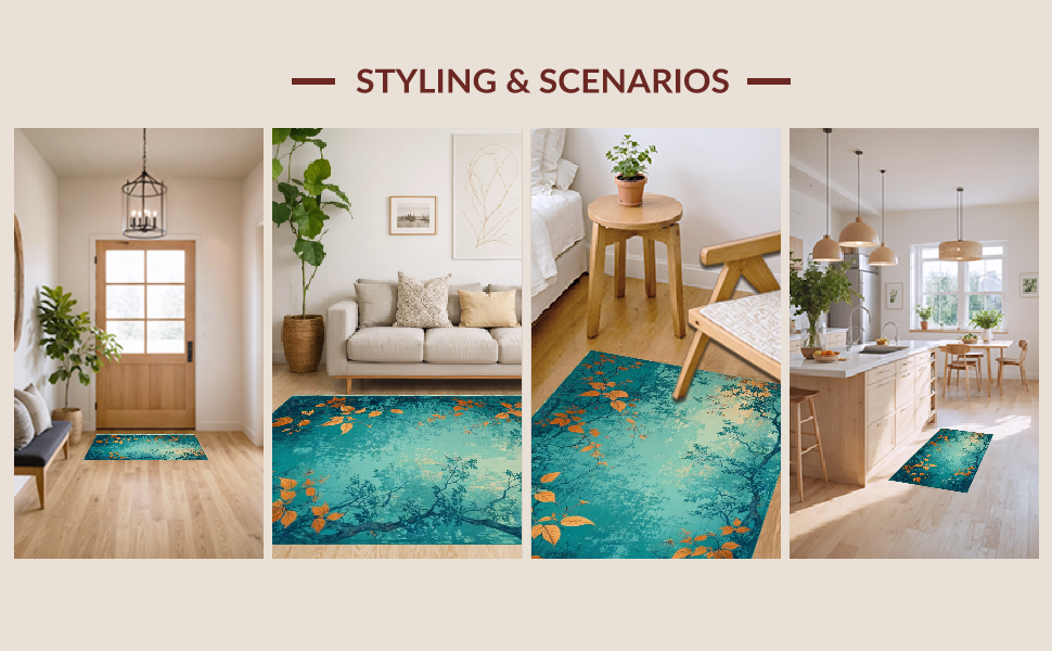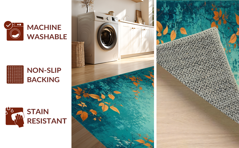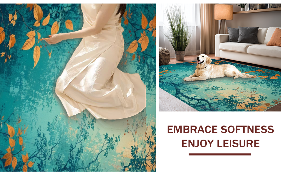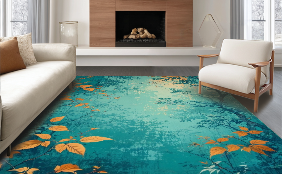 Ultra Soft Area Rug, Non Slip, Stain Resistant, Washable Area Rugs for Living Room, Bedroom, Chic Contemporary Nature Motif(Green) Overview: