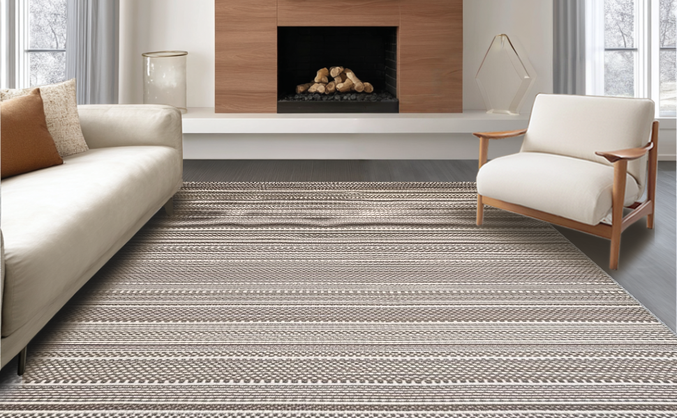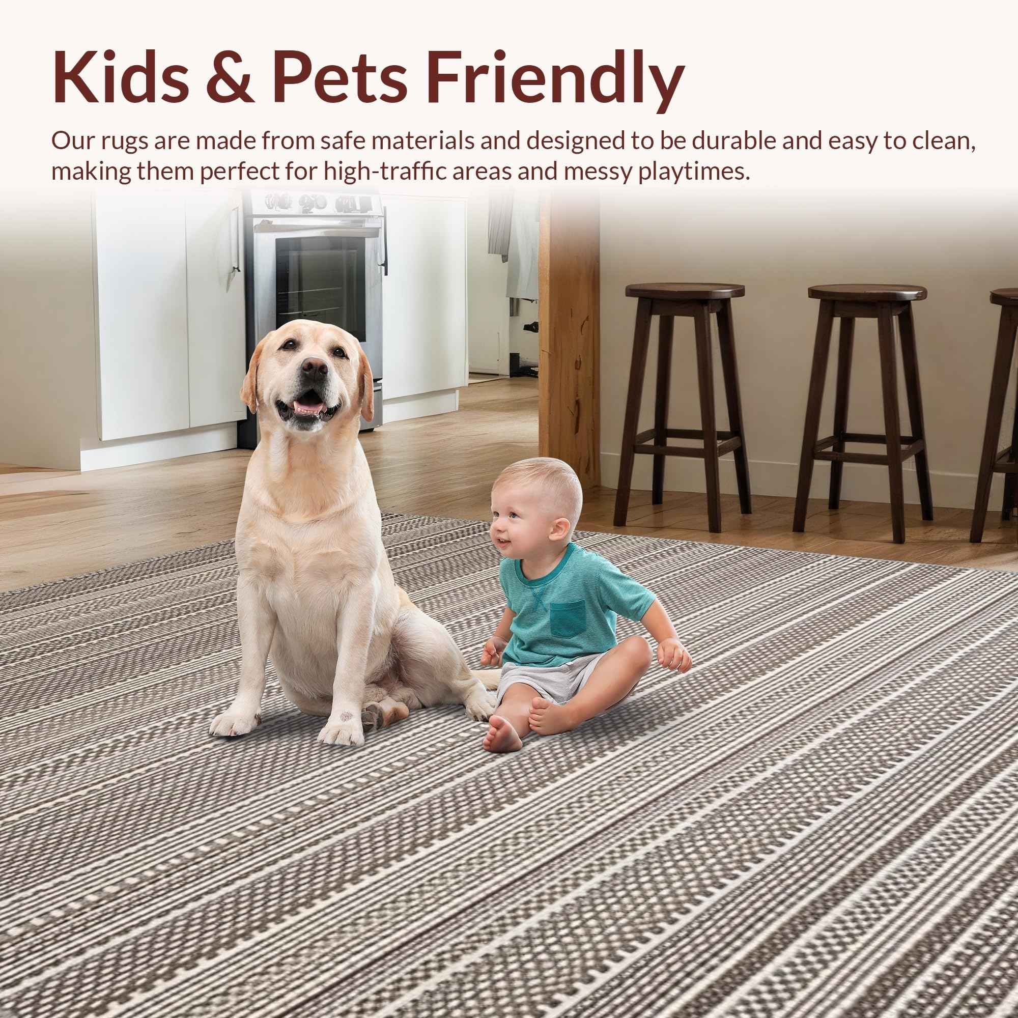 Ultra Soft Area Rug, Non Slip, Stain Resistant, Washable Area Rugs for Living Room, Bedroom, Chic Contemporary Neutral Design(Beige) Overview: